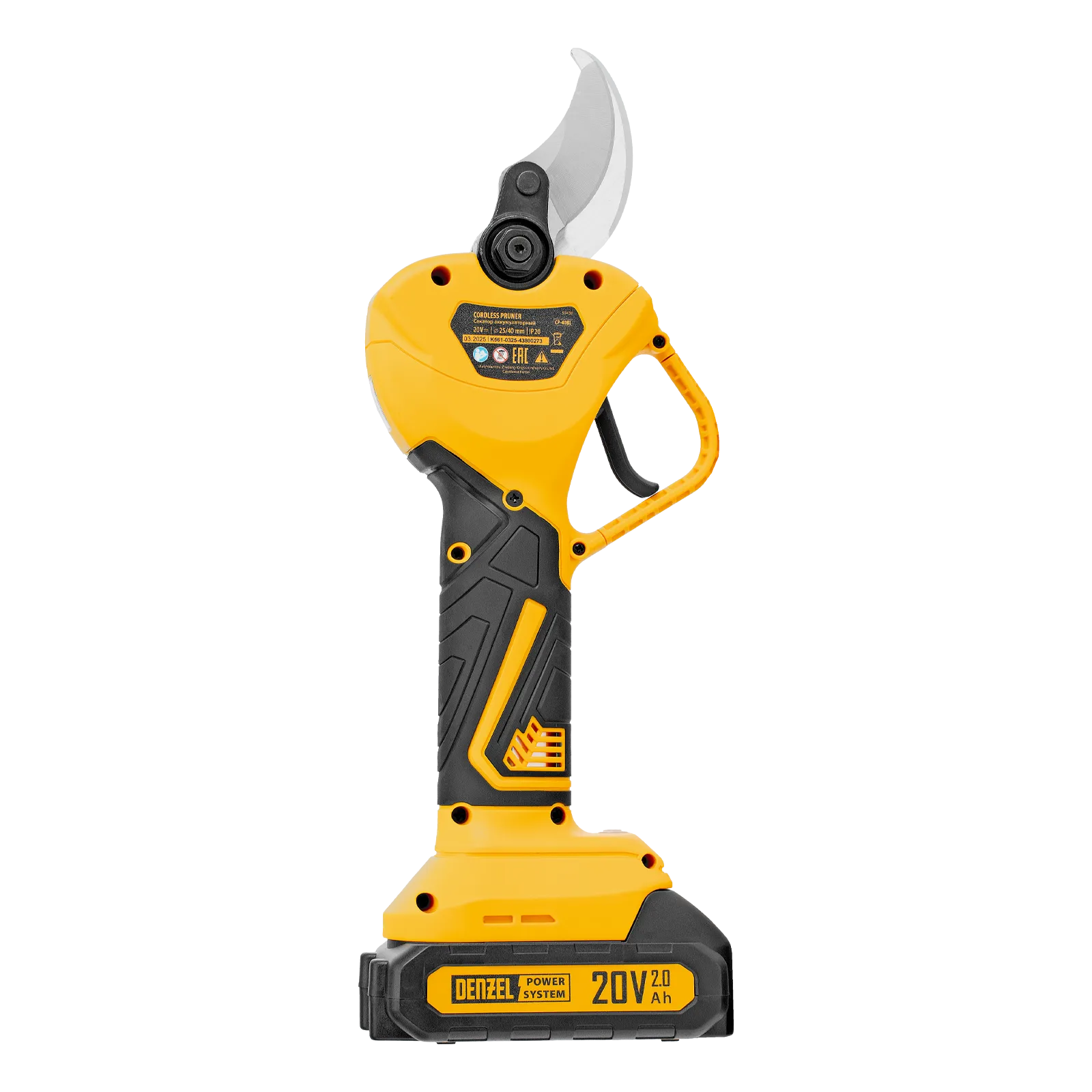 Аккумуляторный секатор Denzel CP-40BL 59438 с бесщеточным двигателем и лезвиями из стали SK5 предназначен для срезания веток. Электронная регулировка толщины реза позволяет устанавливать Бесщеточный двигатель обеспечивает эффективную работу в саду и не требует обслуживания. Благодаря аккумулятору Li-Ion 20 В емкостью 2 А·ч секатор полностью автономен и не требует подключения к электросети. Пригодится владельцам приусадебных участков.