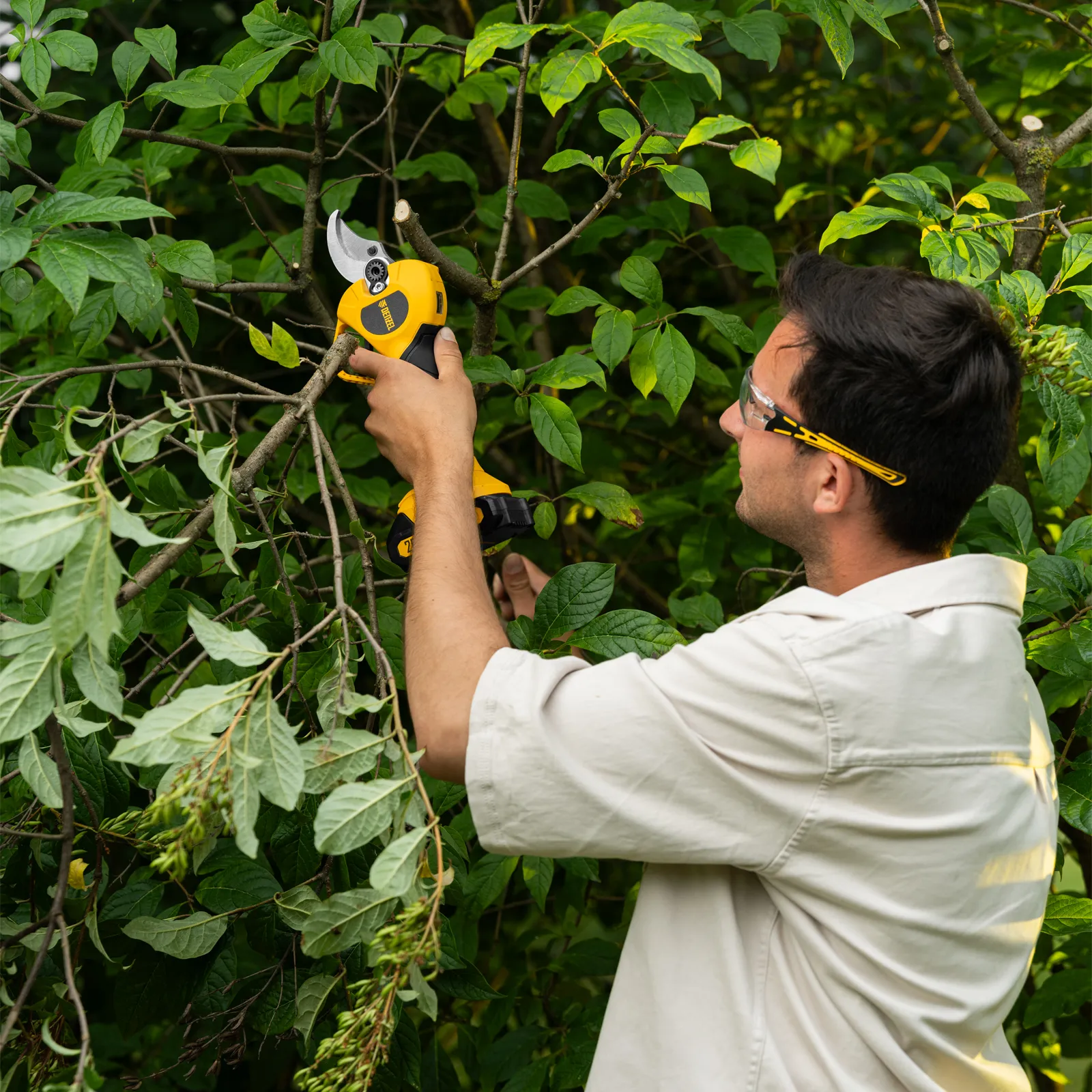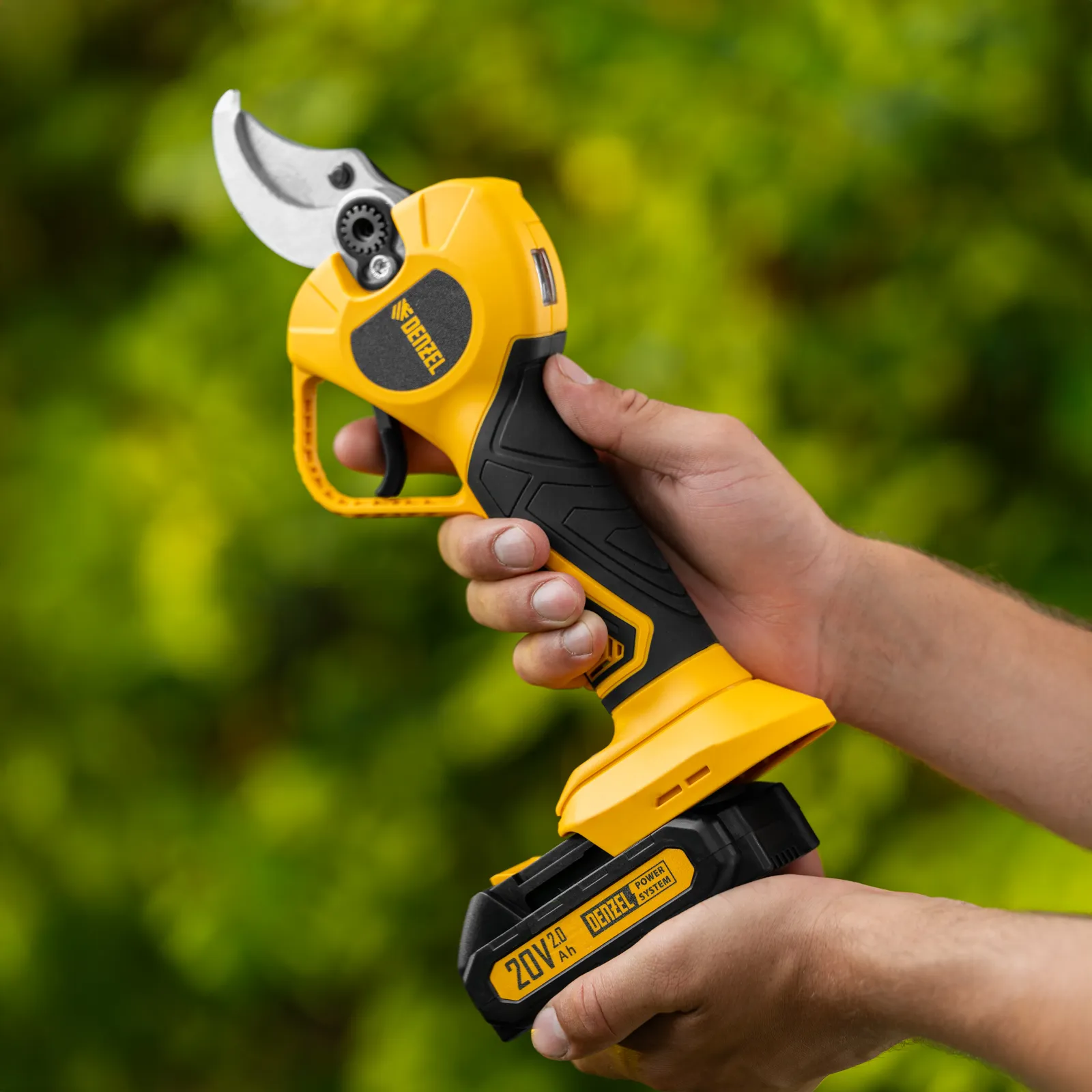 - Эффективная работа — электронная регулировка раскрытия лезвий и двухступенчатый редуктор обеспечивают точность и комфорт при каждом срезе.