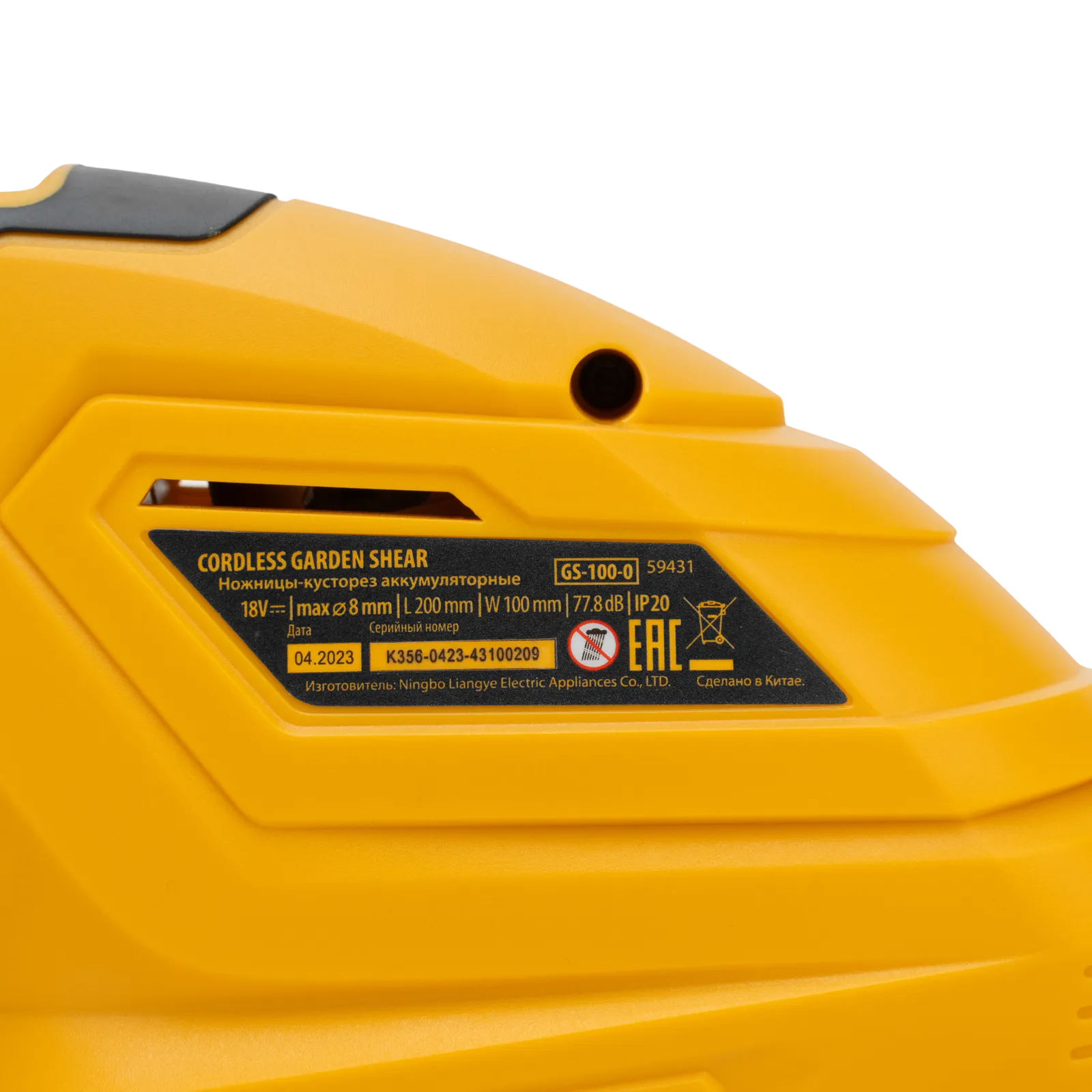 Ножницы-кусторез не зависят от сети электропитания, а значит, использовать их можно в отдаленных участках сада. Инструмент совместим с любым Li-Ion аккумулятором единой платформы Denzel Battery System 18V.