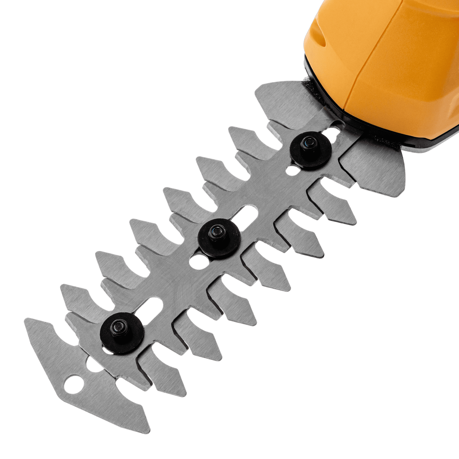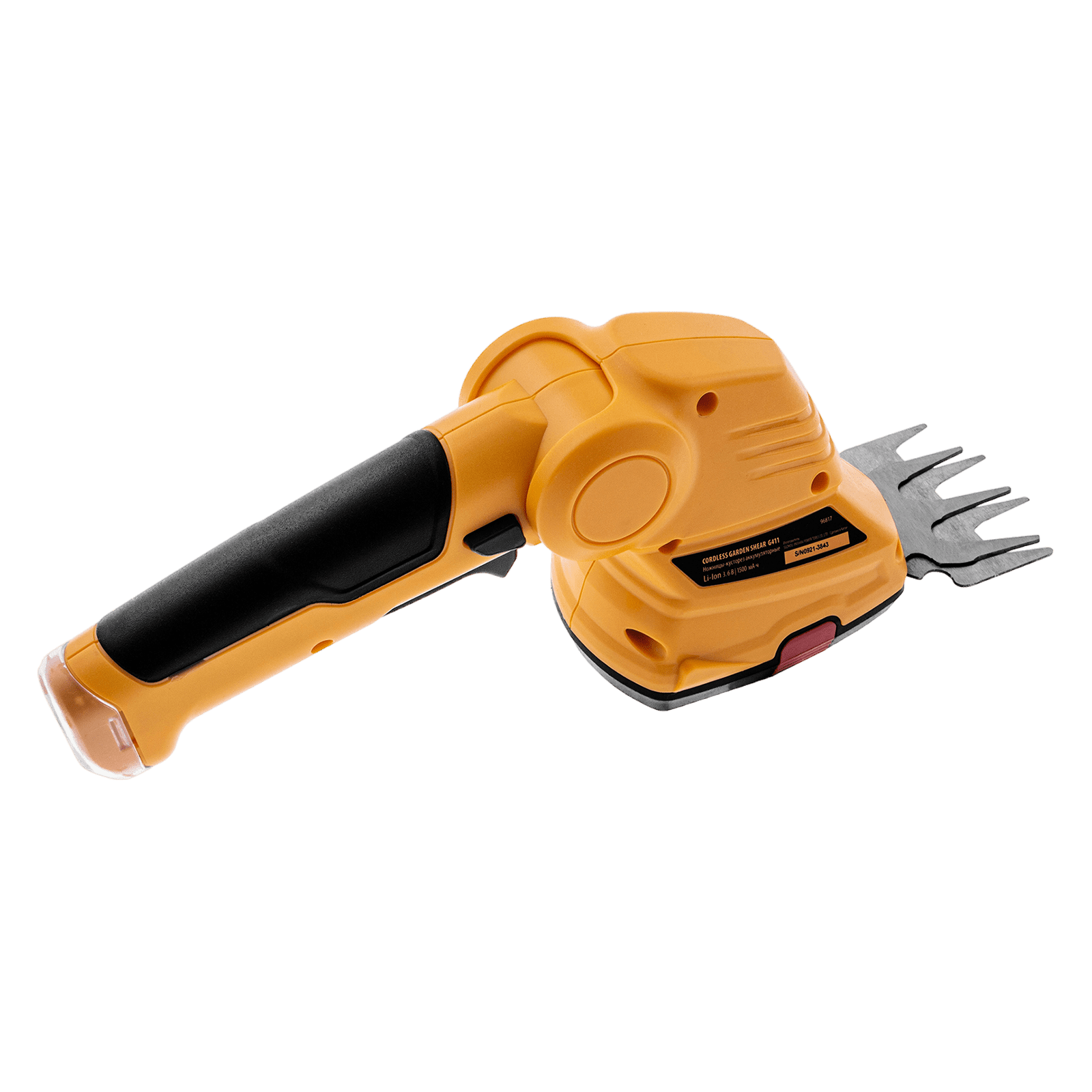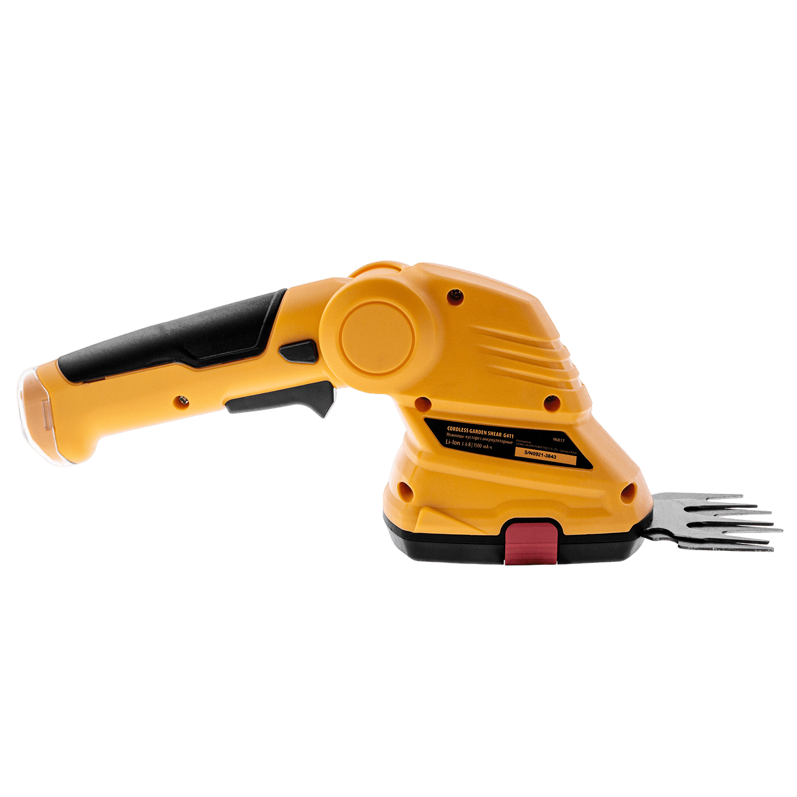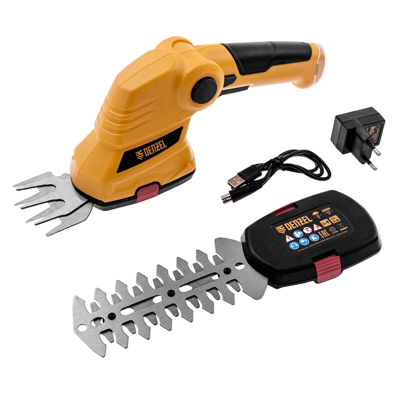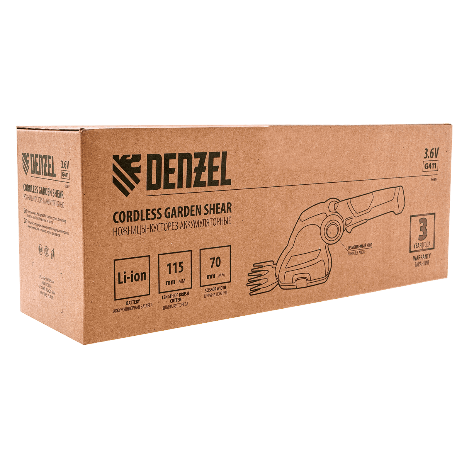 Аккумуляторные ножницы-кусторез Denzel G411 96817 с Li-Ion батареей напряжением 3,6 В и емкостью 1,5 Ач предназначены для поддержания декоративной растительности на дачном участке в аккуратном виде. В комплект входят две оснастки: для подрезания газонной травы и для обрезки кустов и тонких веток деревьев. Благодаря простому управлению и малому весу 0,6 кг с ножницами-кусторезами легко справятся даже пожилые люди.