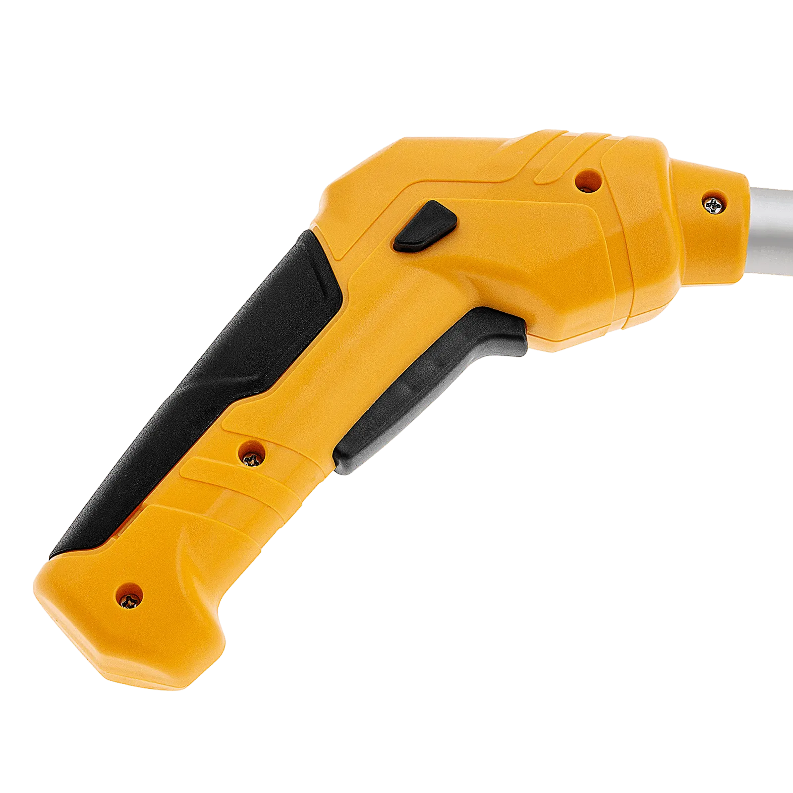 - Удобная эксплуатация — инструмент можно закрепить на телескопической штанге, регулируемой в диапазоне 800-1100 мм, что позволяет выполнять работы в труднодоступных местах.