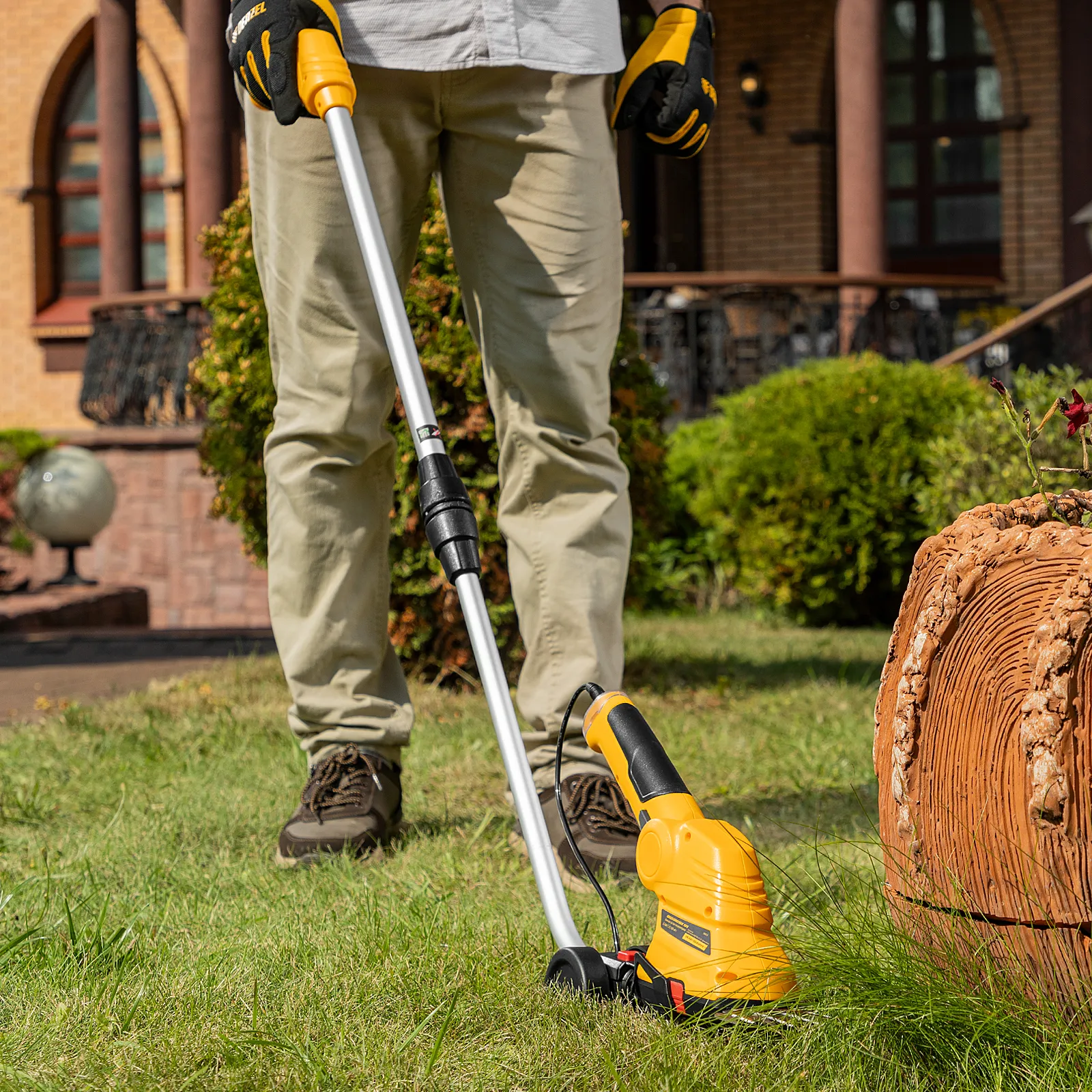 - Долговечность — медная обмотка двигателя устойчива к перегреву и обеспечивает стабильную работу ножниц-кустореза даже при высоких нагрузках.