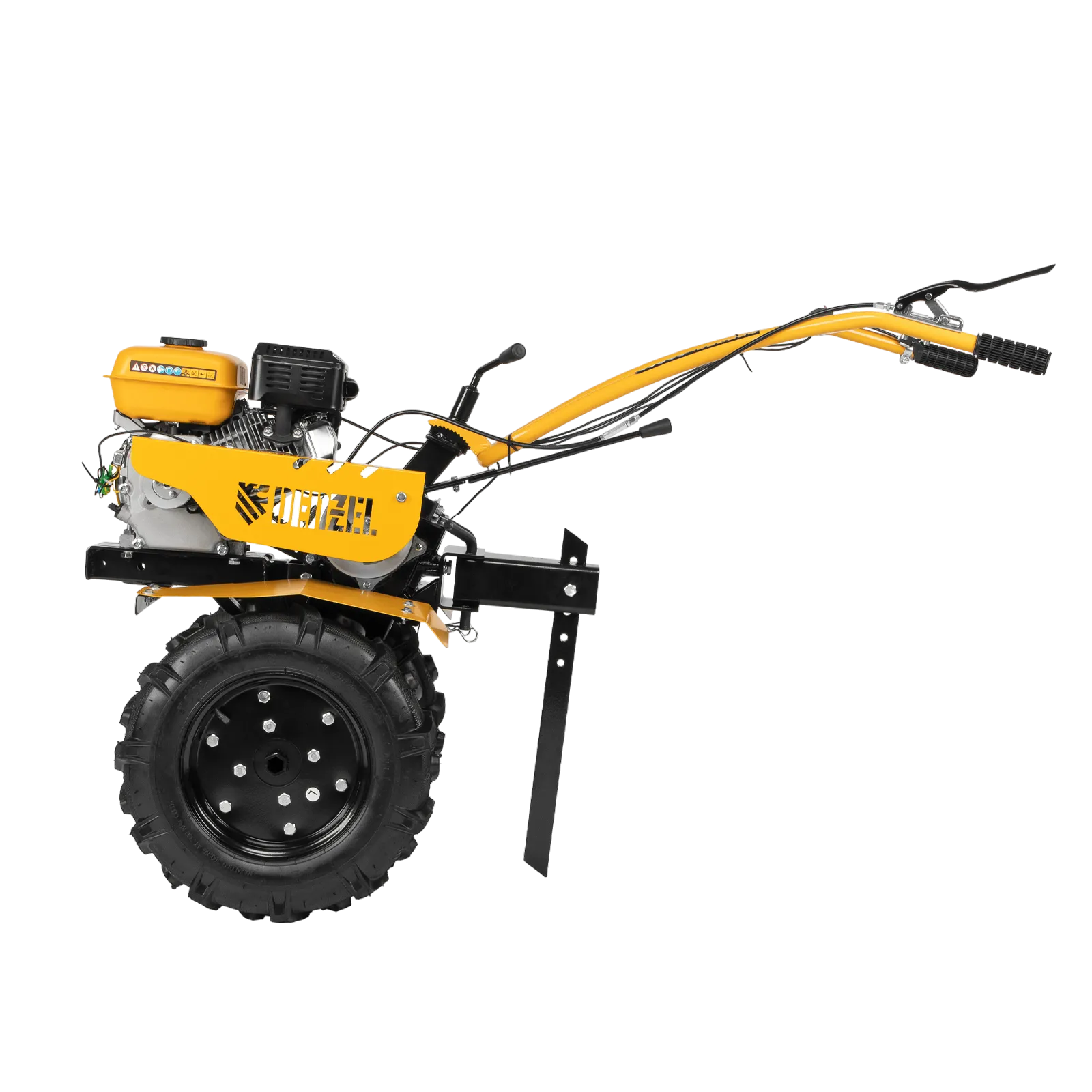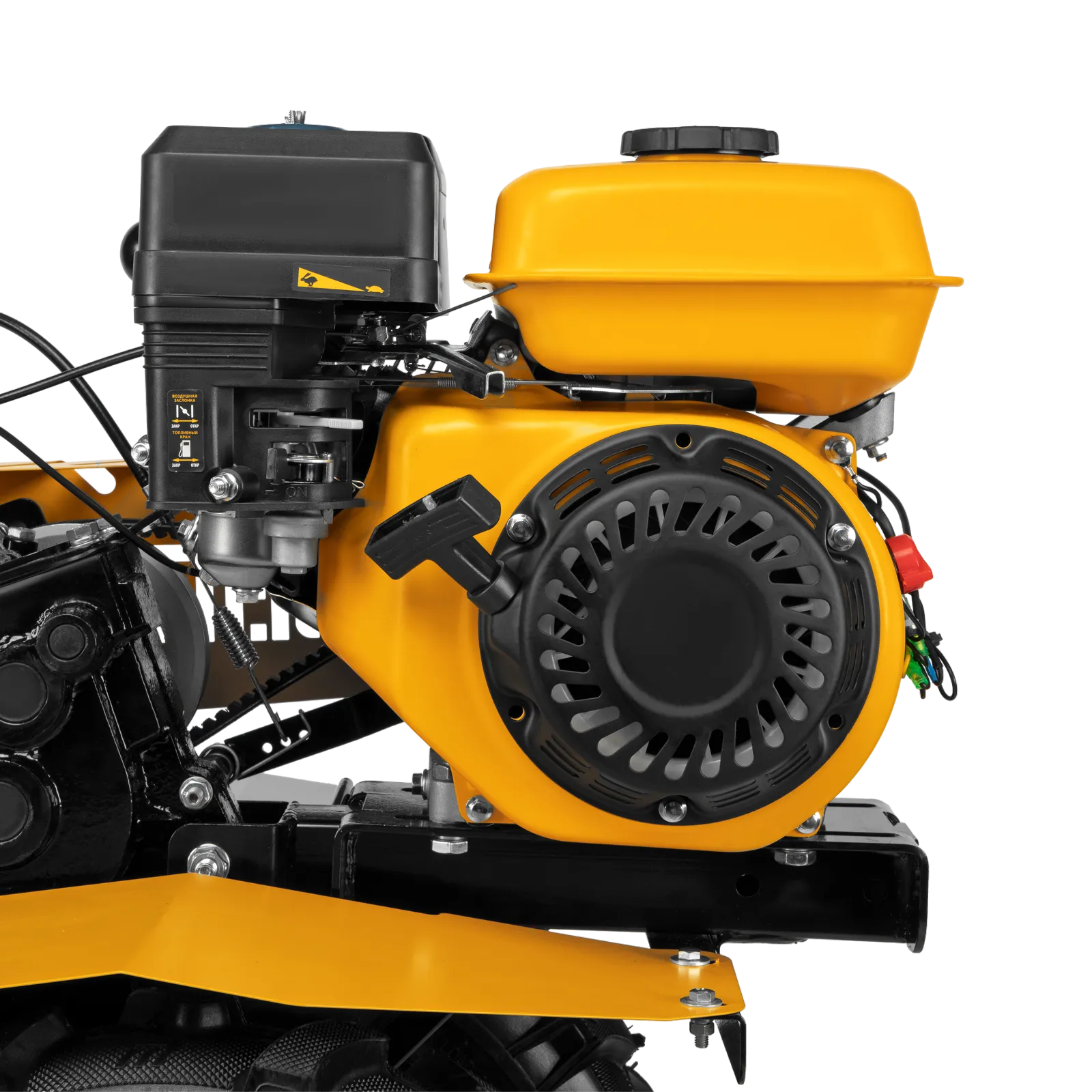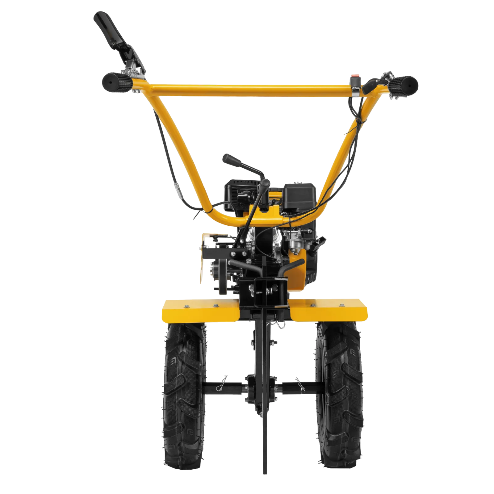 - Легкое управление — регулятор оборотов и выключатель зажигания расположены на рукоятках, это позволяет быстро менять скорость на участках разной сложности.