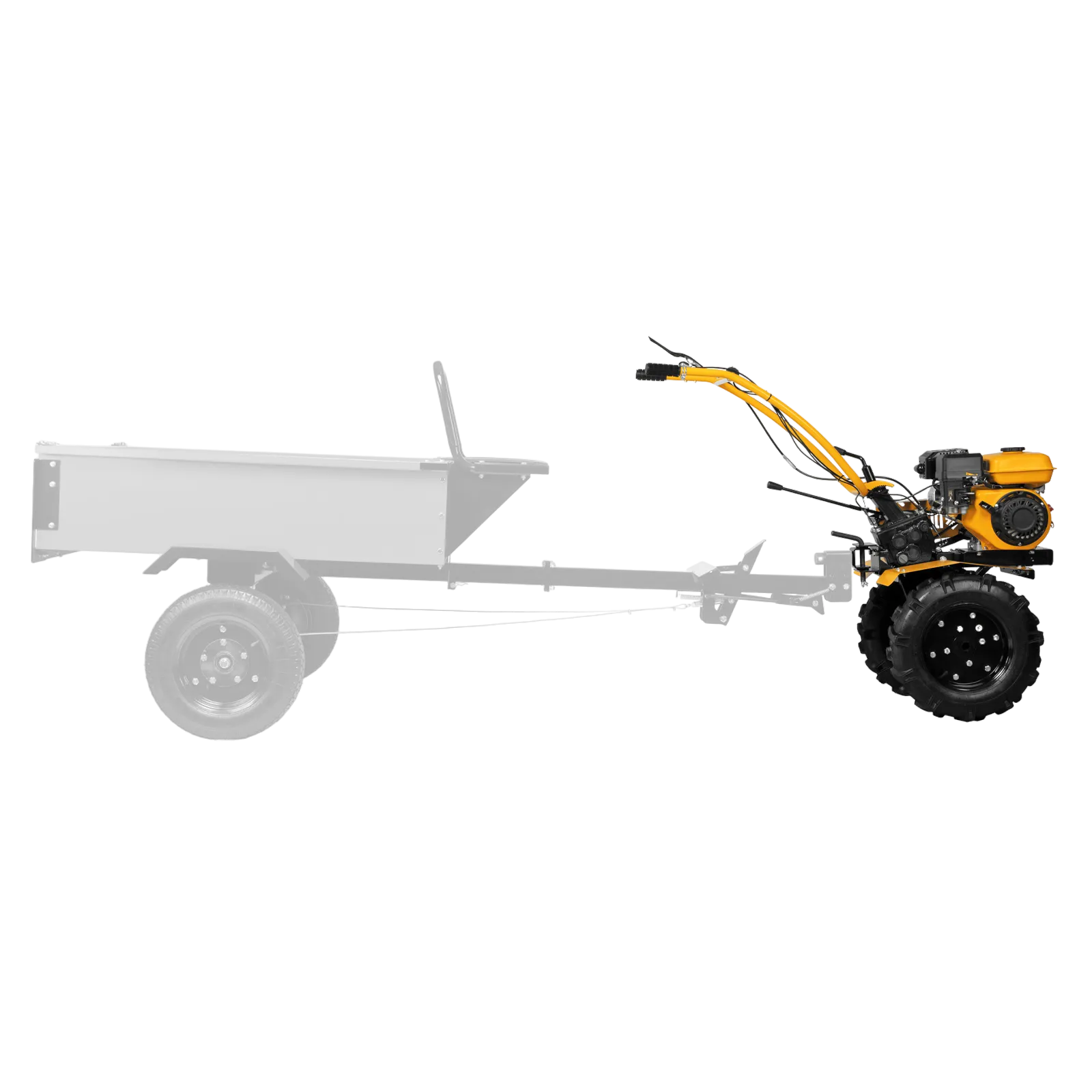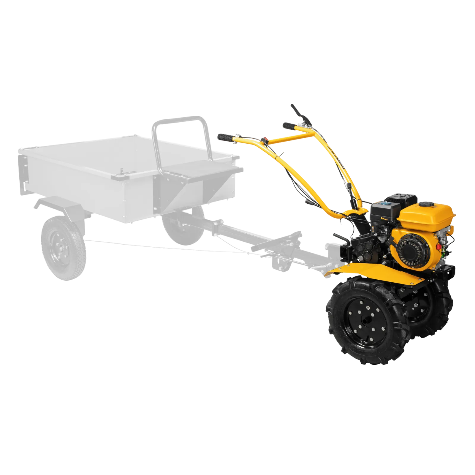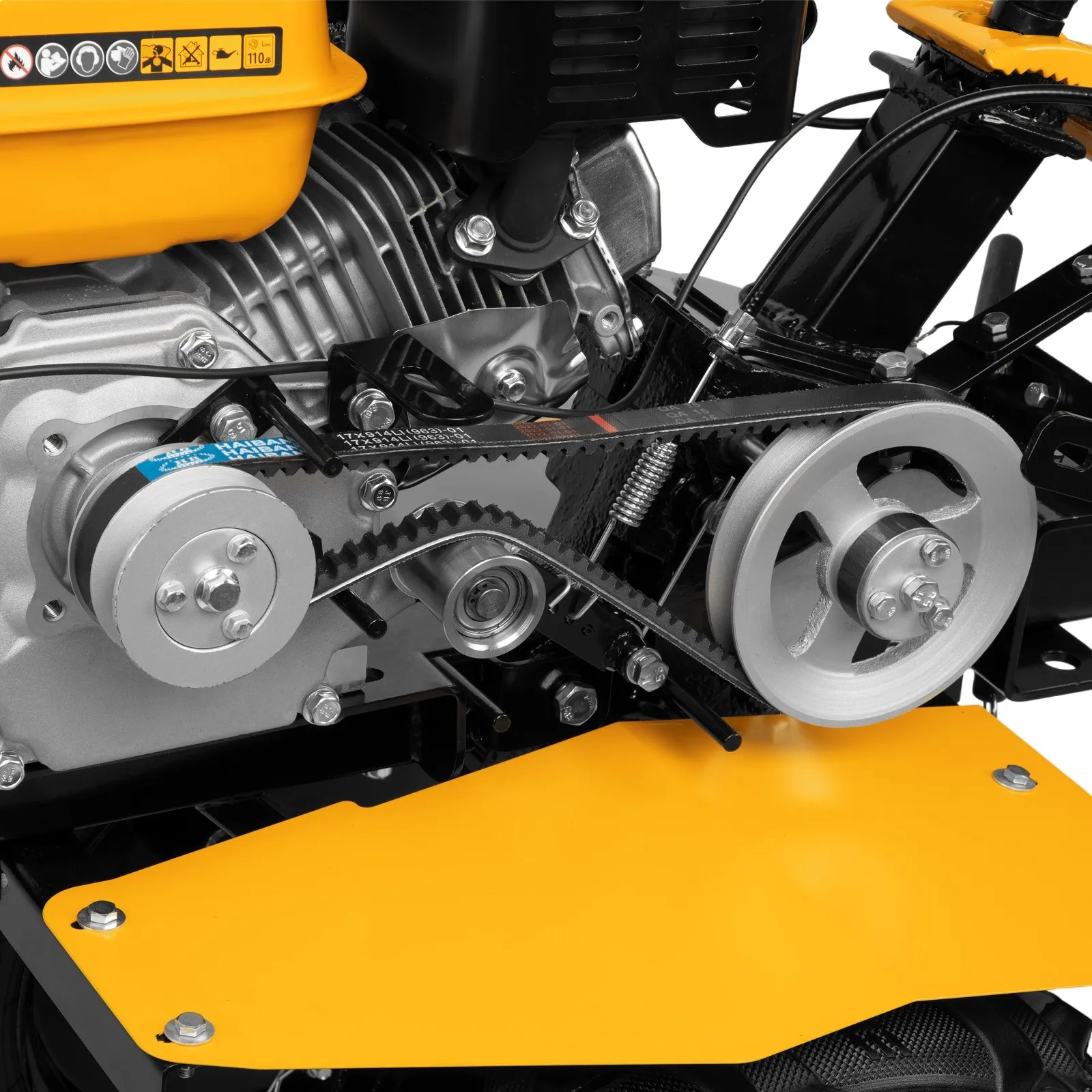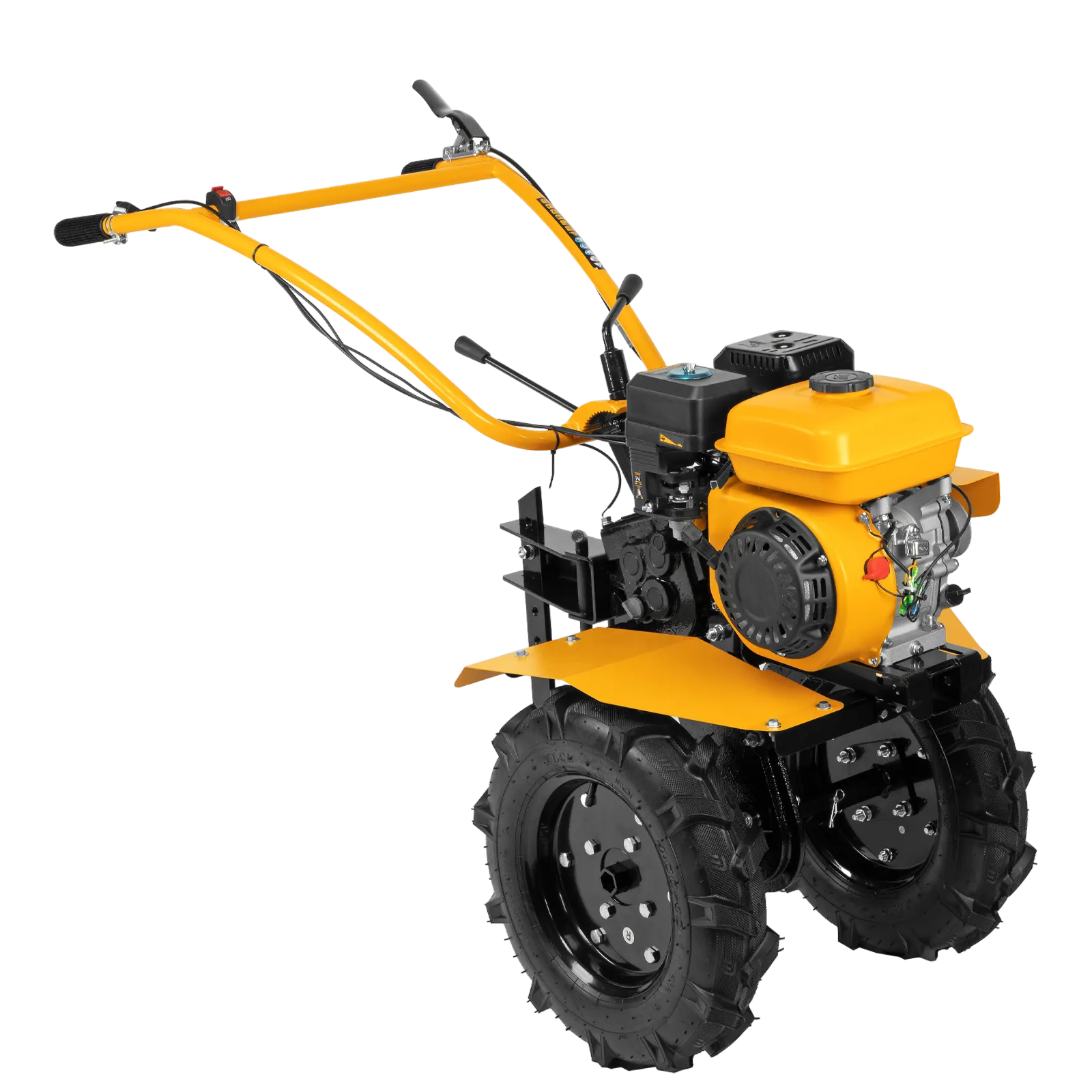 - Легкое управление — регулятор оборотов и выключатель зажигания расположены на рукоятках, это позволяет быстро менять скорость на участках разной сложности.