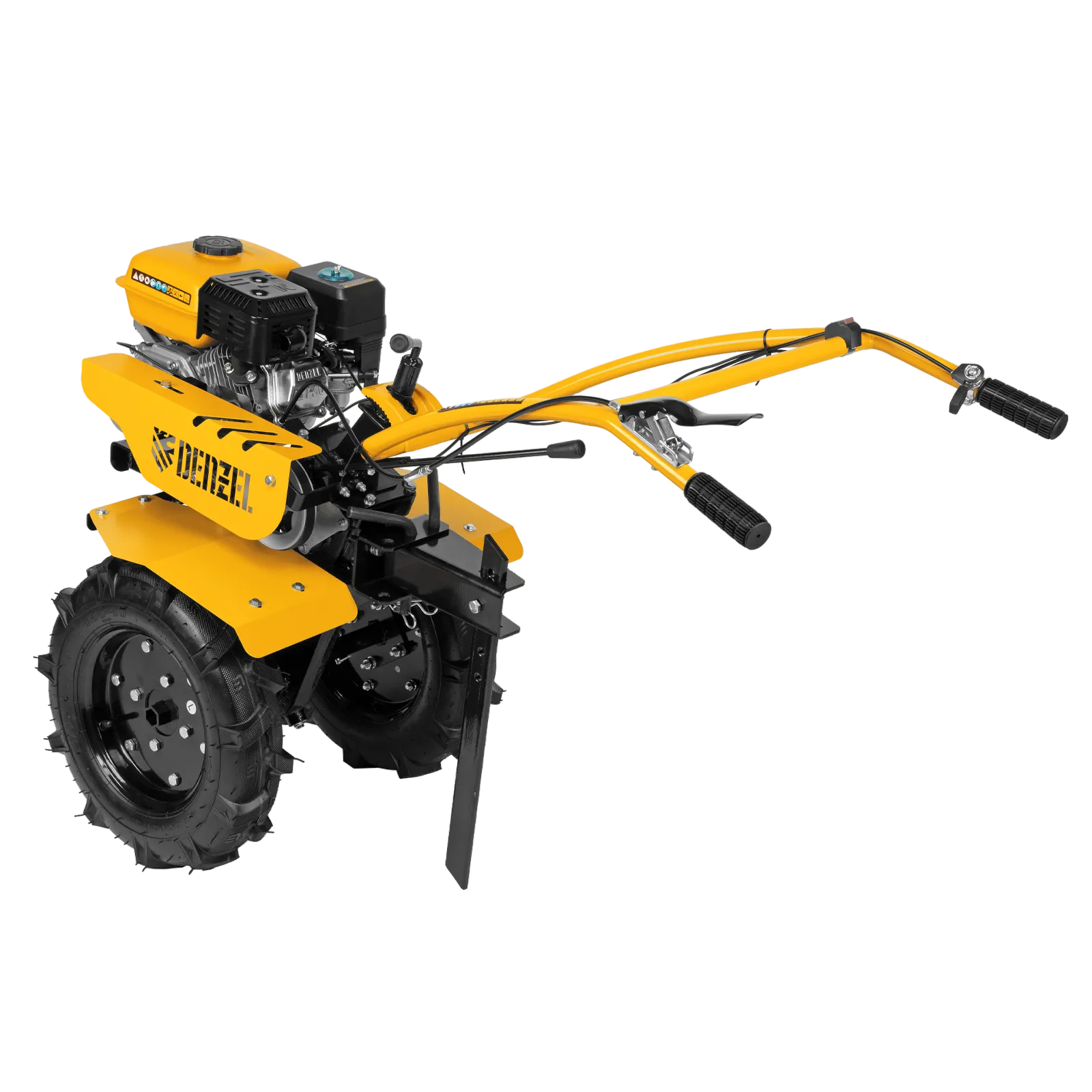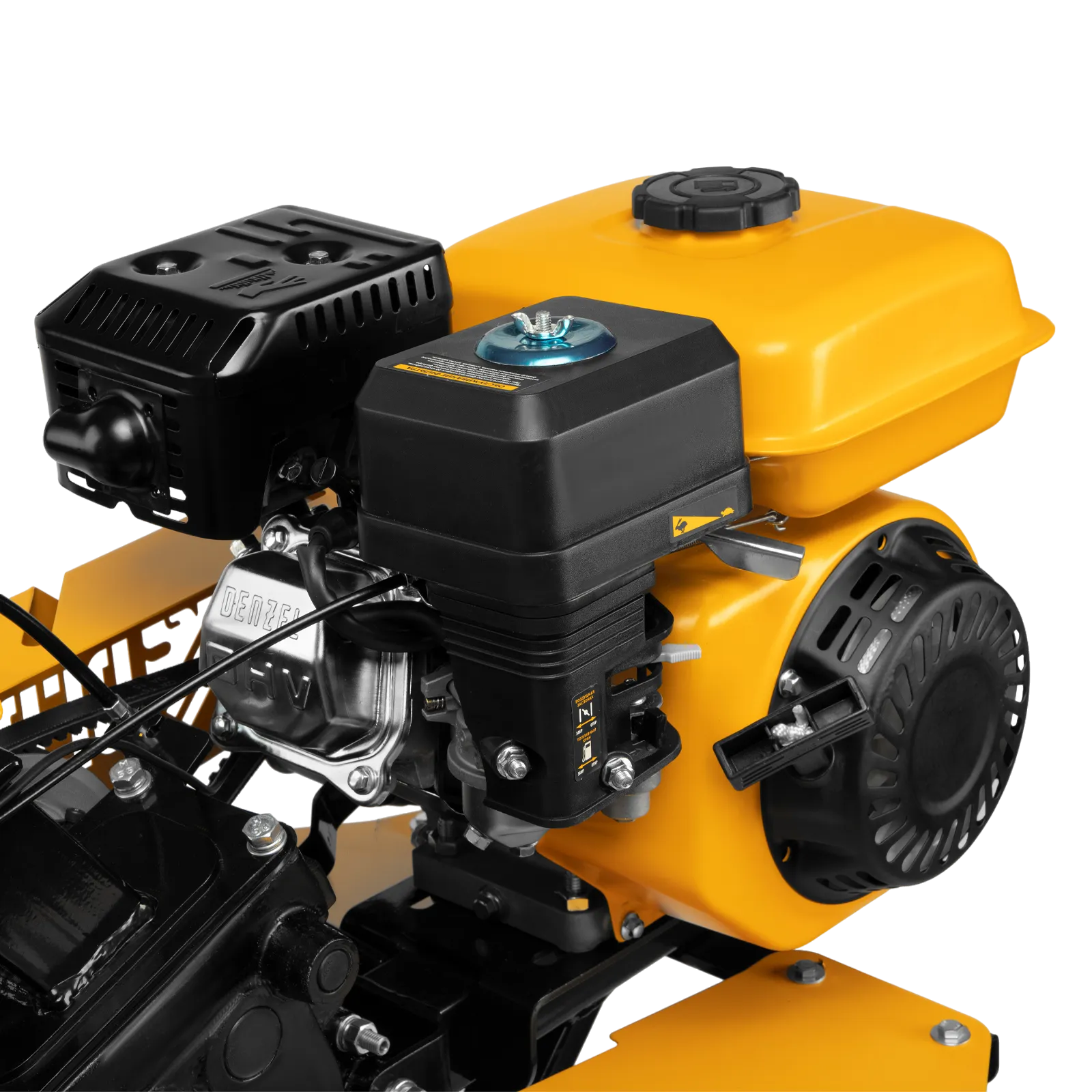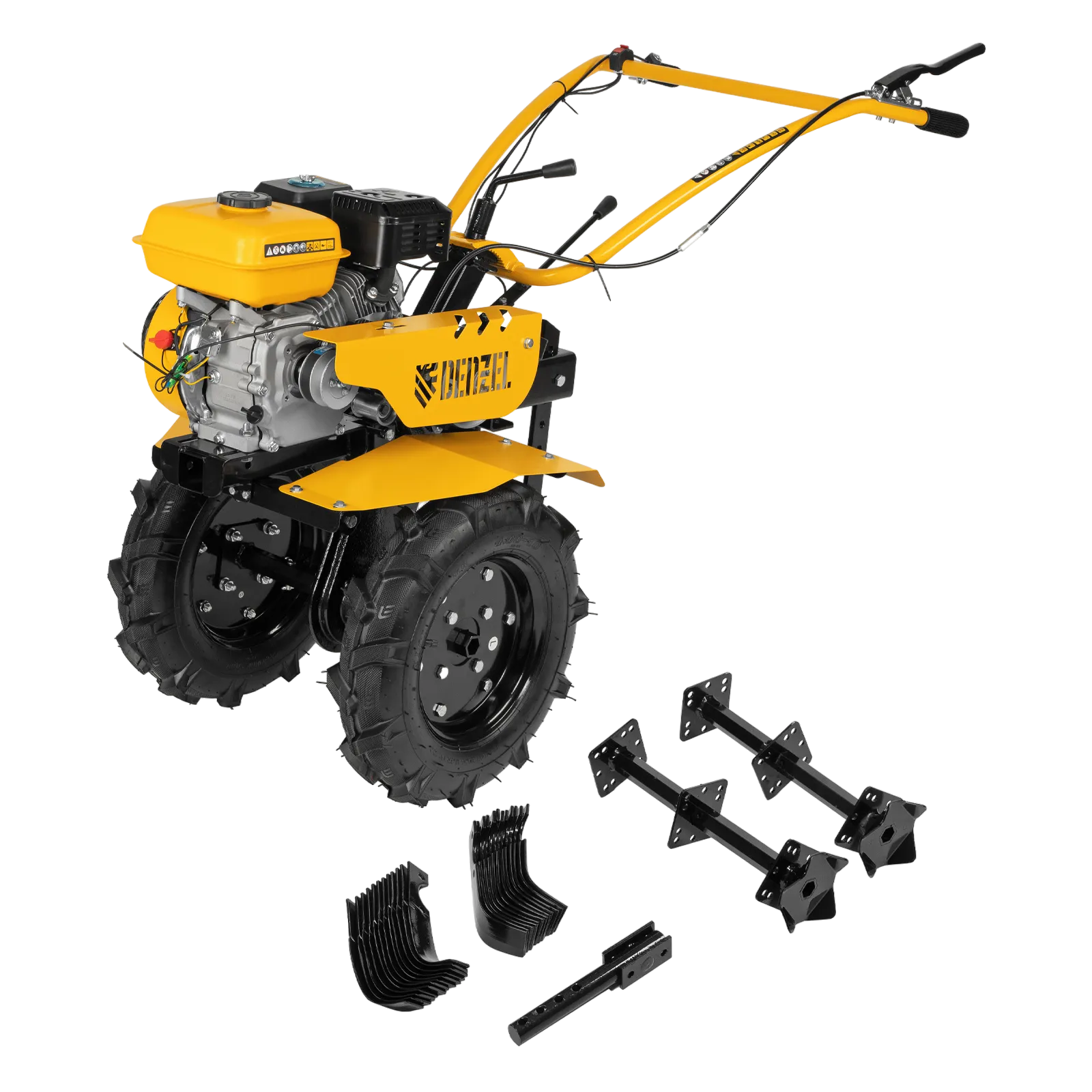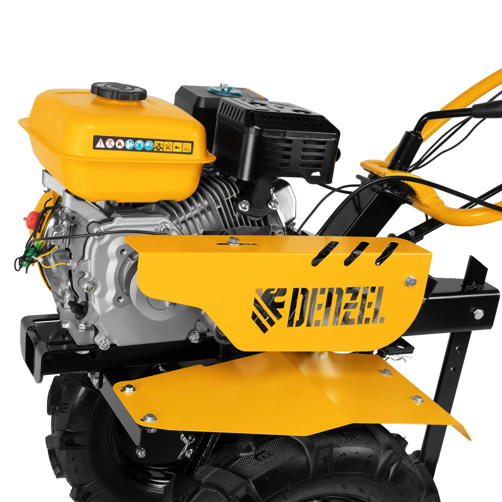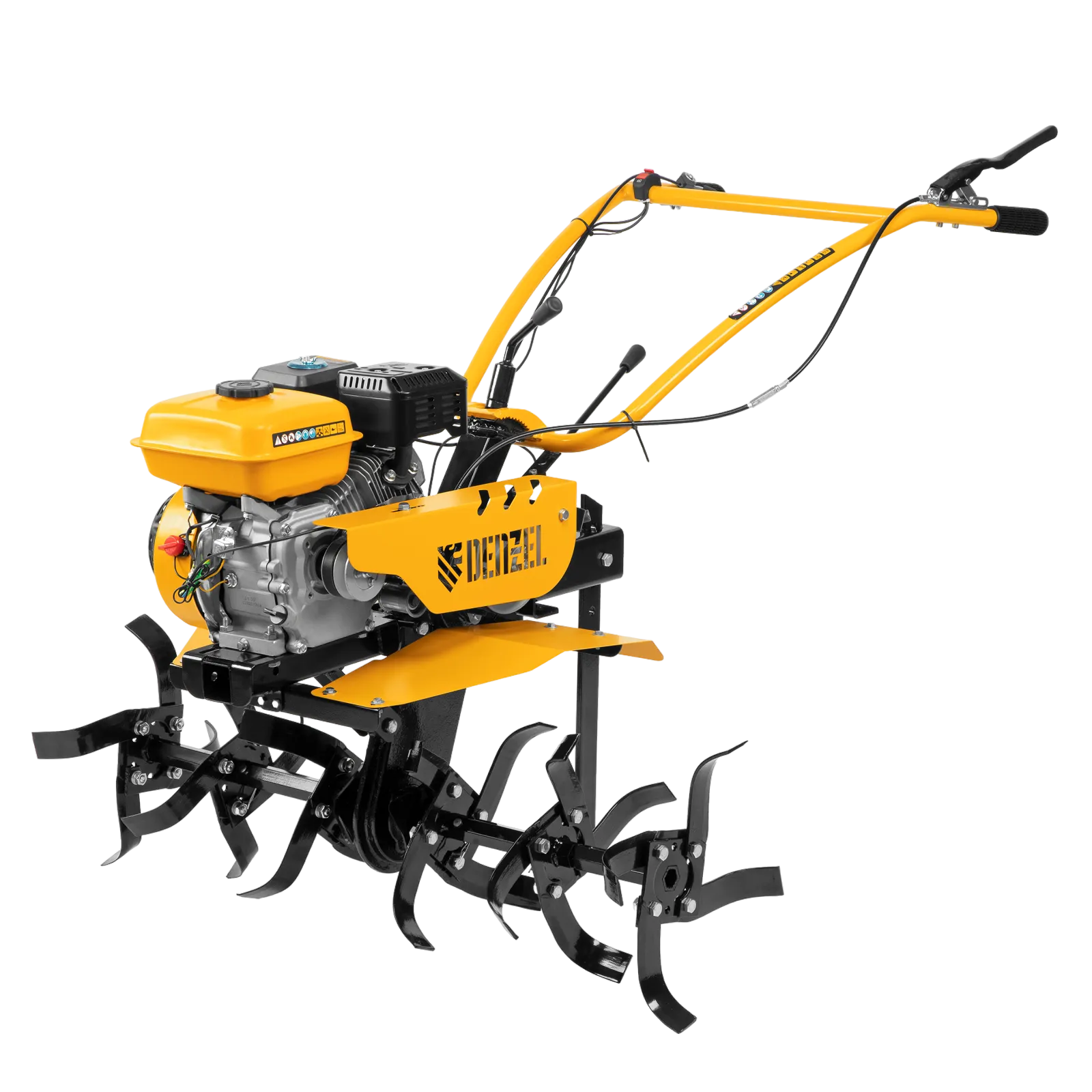 Мотоблок Denzel DPT-270 56402 предназначен для больших территорий площадью от 15 соток. Благодаря мощности 7 л.с. и острым фрезам он без труда вспашет целину, справится с глинистой почвой, обработает даже вязкий грунт. 3 скорости работы обеспечивают легкое переключение в процессе культивирования, а вес более 60 кг позволяет достигать глубины обработки до 35 см.;Модель отличается универсальным сцеплением, что делает возможным присоединение практически любого навесного оборудования, представленного на рынке: для уборки территории, скашивания травы, посадки и сбора урожая и т.д. Для крепления активного навесного оборудования предусмотрен шкив отбора мощности.