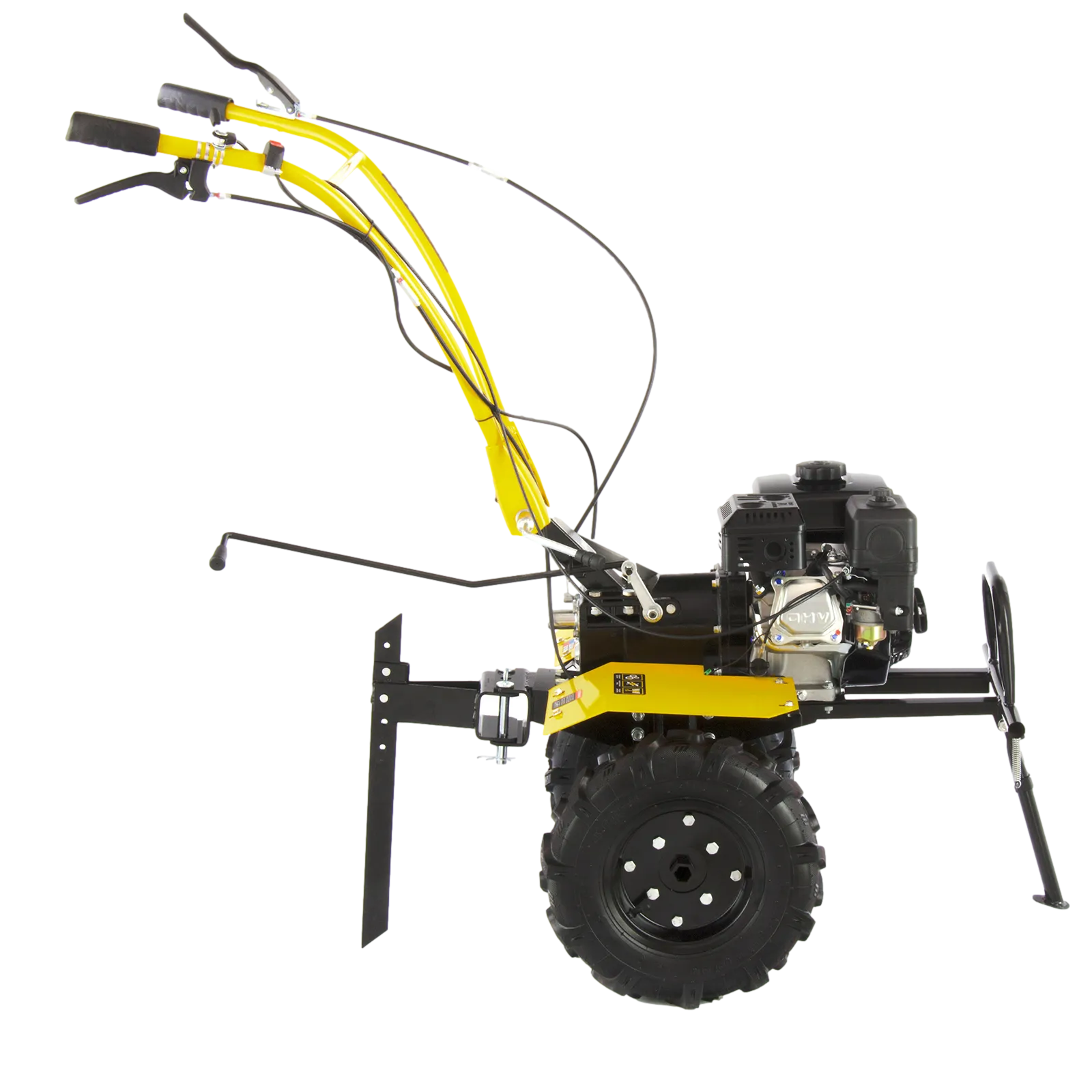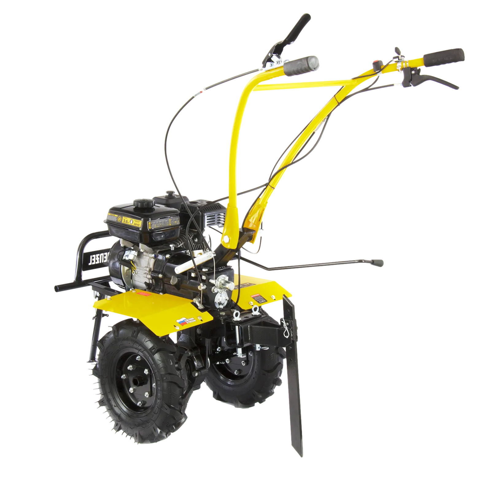 - Комфортное управление — регулятор оборотов двигателя и кнопка пуска выведены на рукоятку перед оператором, поэтому можно оперативно менять режим вспашки, не наклоняясь.