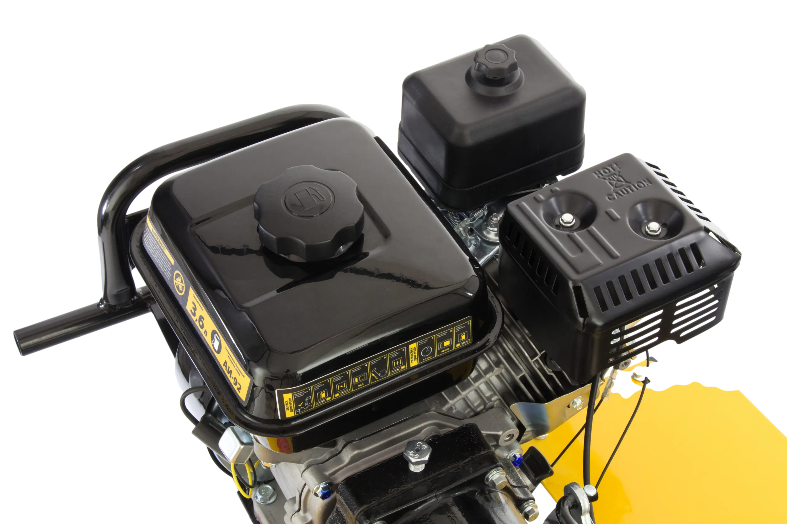 - Легкая заправка — широкая заливная горловина сокращает время заполнения топливного бака и предотвращает разбрызгивание бензина.