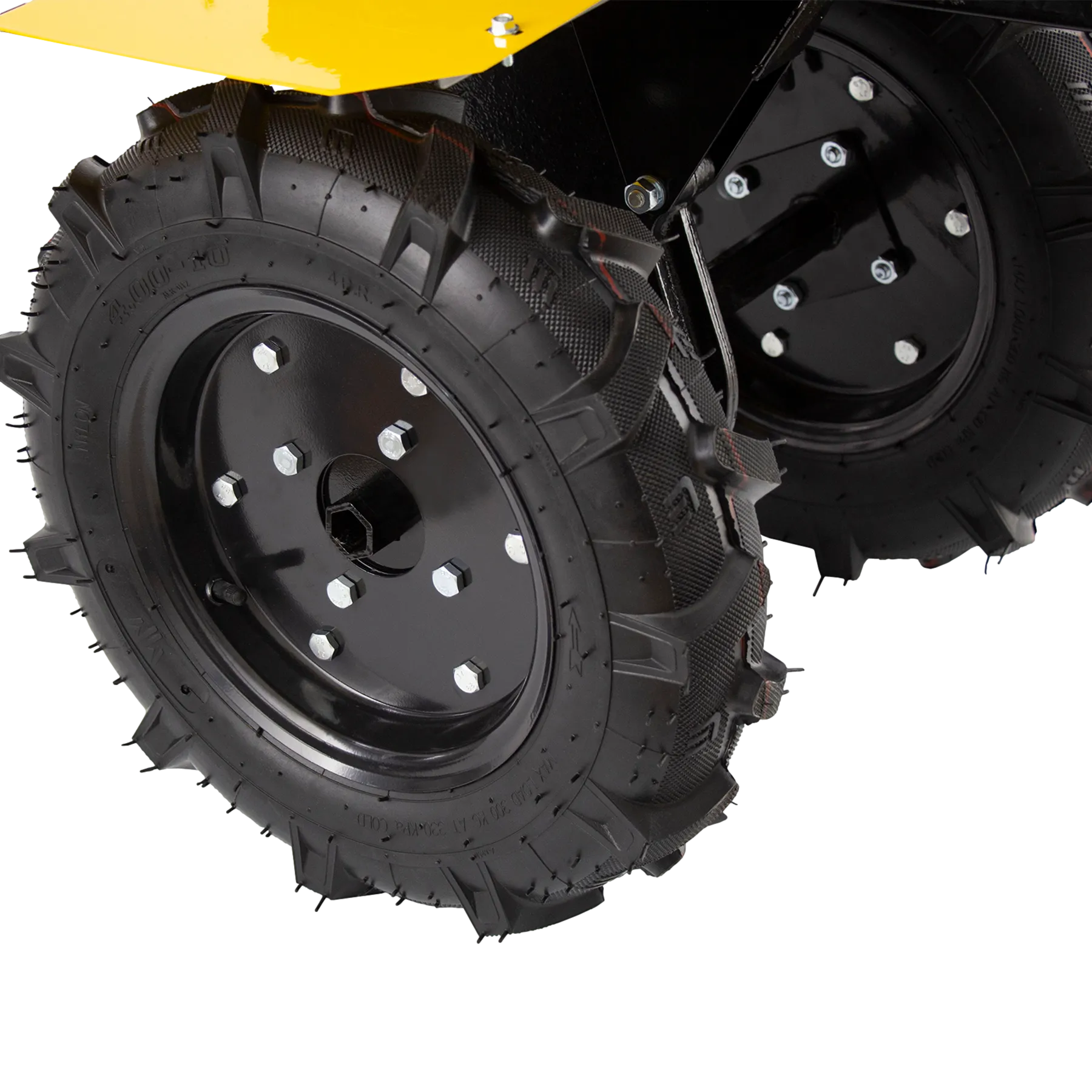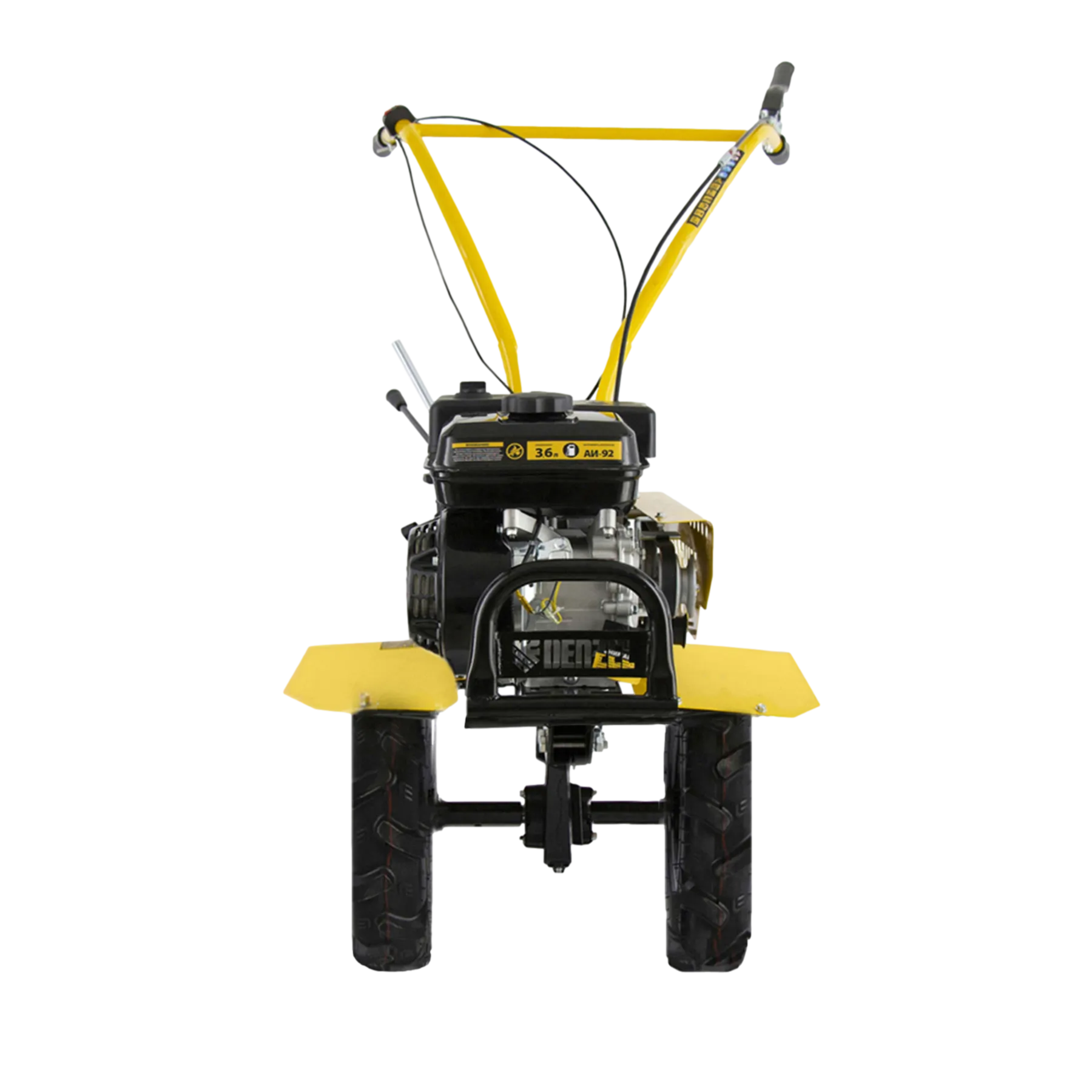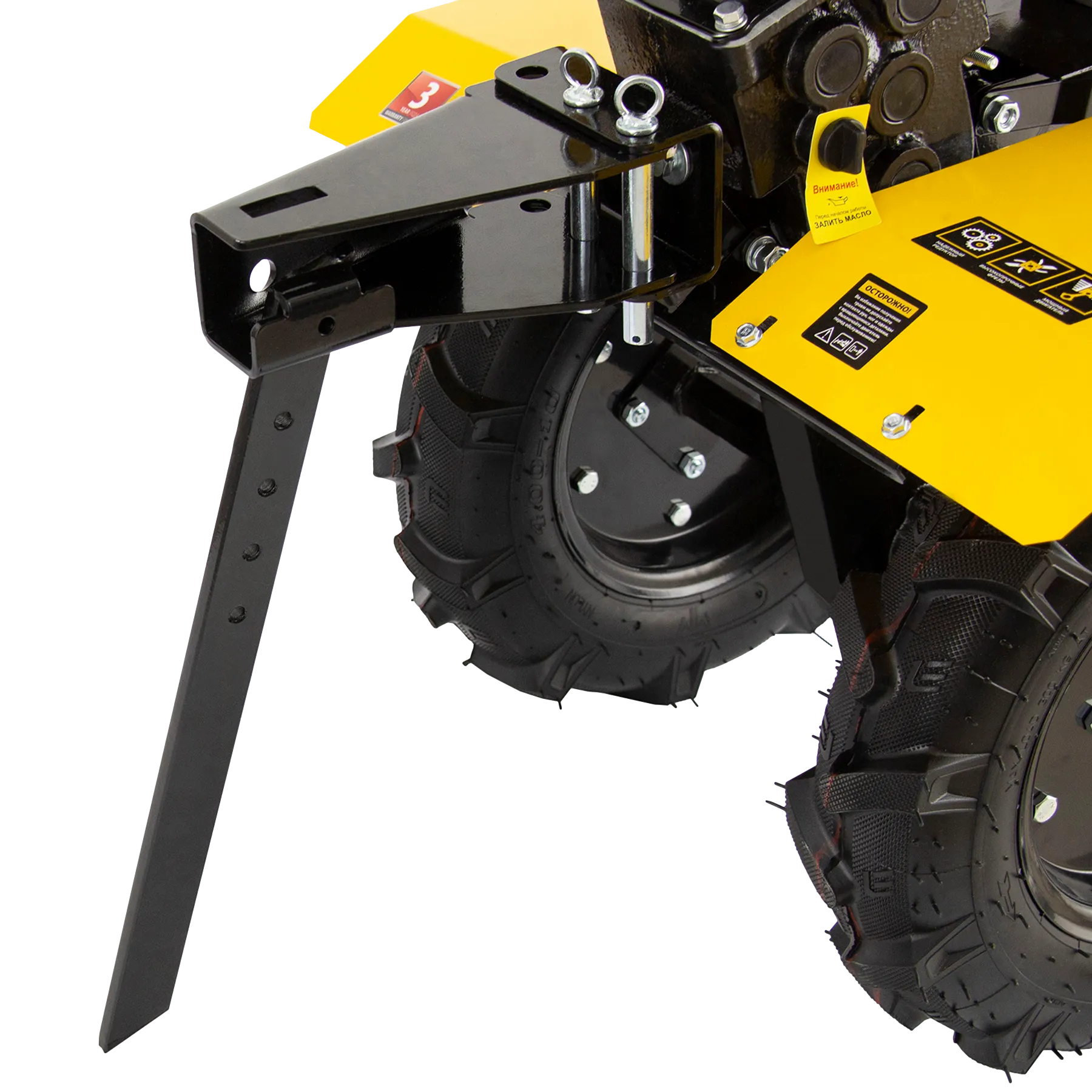 - Комфортная транспортировка — усиленная рукоятка-бампер и большие колеса с глубоким протектором позволяют с легкостью перемещать мотоблок до нужного места.