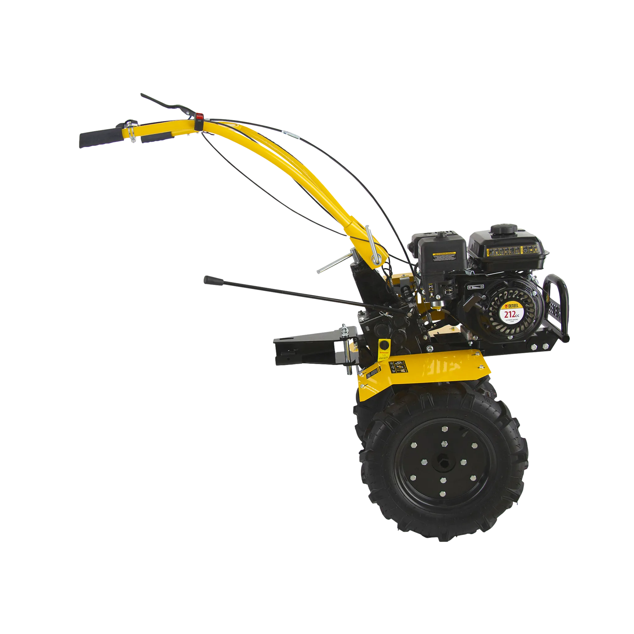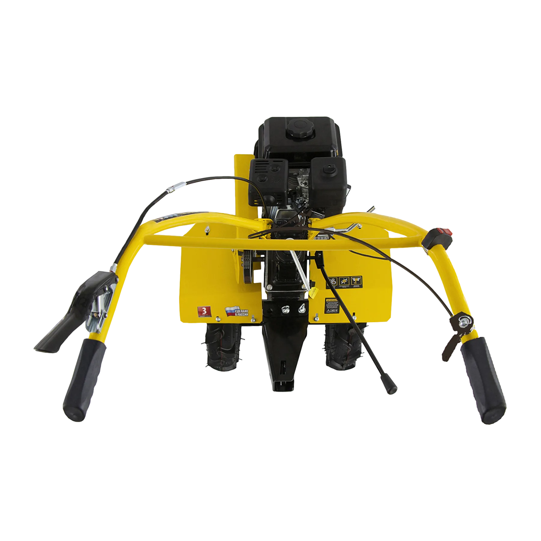 - Легкое управление — регулятор оборотов двигателя, выключатель зажигания и рычаг сцепления находятся на рукоятке перед пользователем.