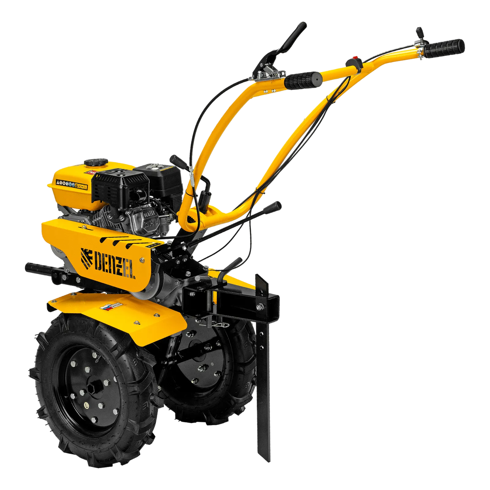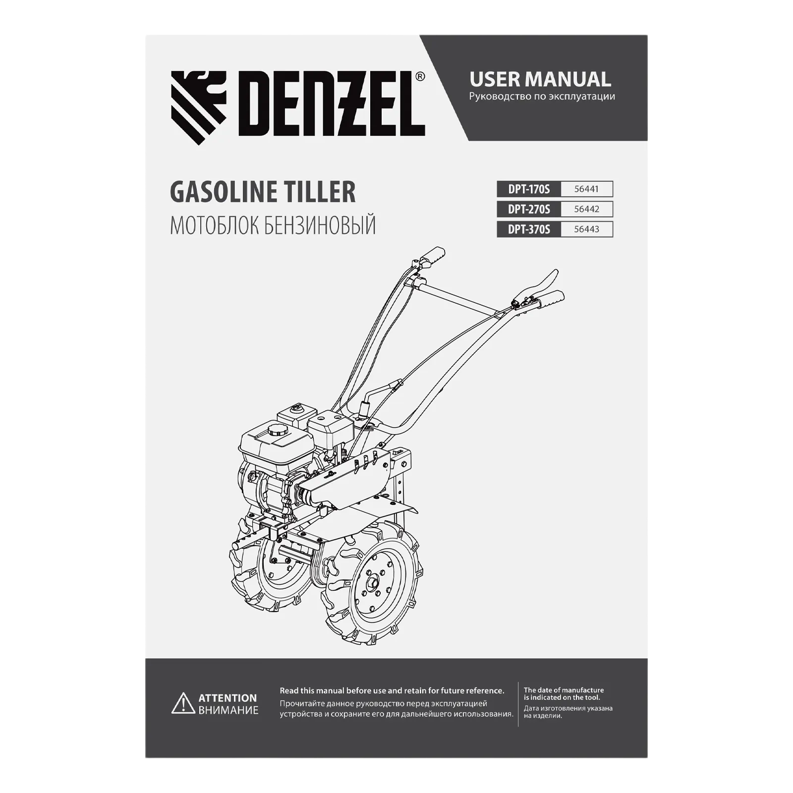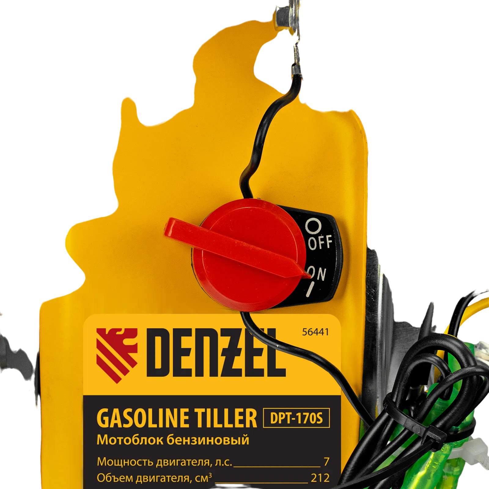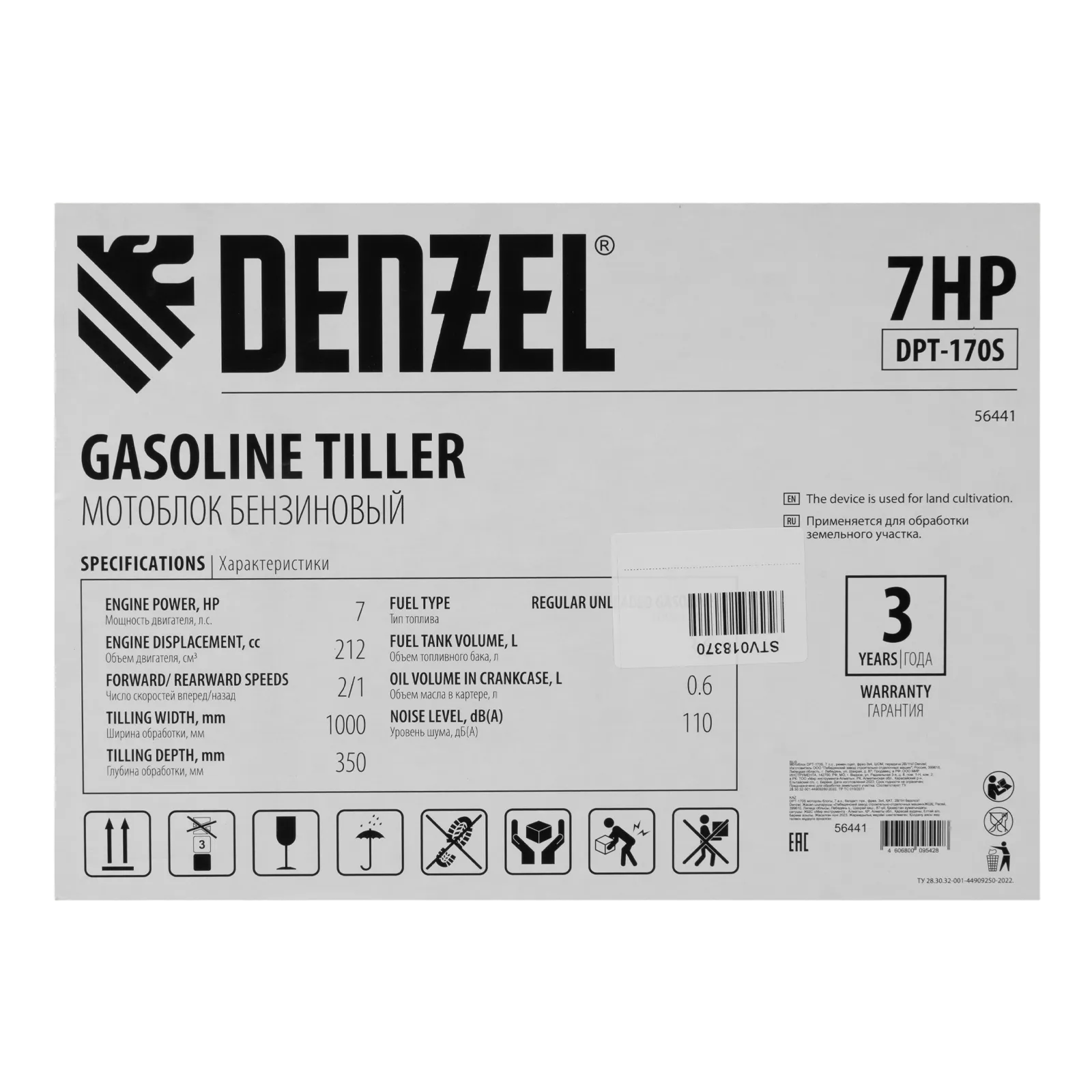 Мотоблок Denzel DPT-170S 56441 с двигателем мощностью 7 л. с., ременным механизмом сцепления, фрезами 3 х 4, шкивом отбора мощности (ШОМ) и коробкой передач 2В/1Н предназначен для проведения сельскохозяйственных работ. Максимальная ширина обработки составляет 1000 мм, глубина — 350 мм. Фрезы собираются из двух двойных и двух одинарных секций, что позволяет регулировать ширину вспашки. ;Шкив отбора мощности и универсальный кронштейн диаметром 30 мм позволяют установить любое навесное оборудование Denzel, например. плуг, окучник, картофелевыкапыватель. Такое решение значительно расширяет возможности мотоблока и позволяет минимизировать расходы на закупку сельскохозяйственной техники.