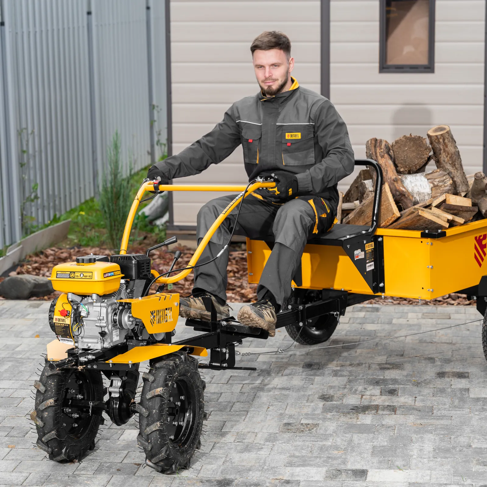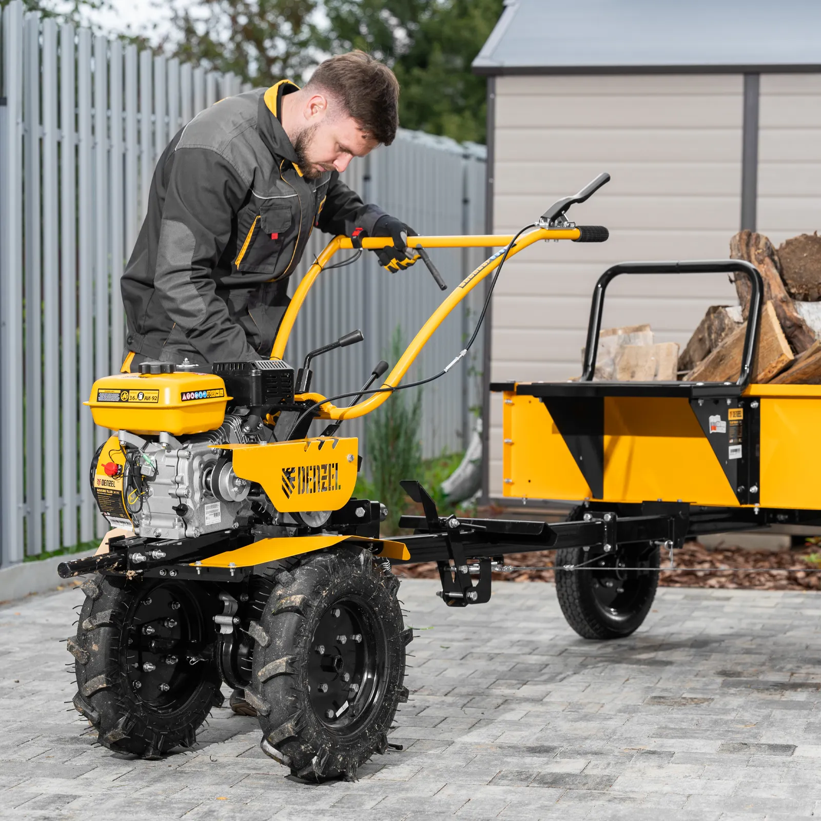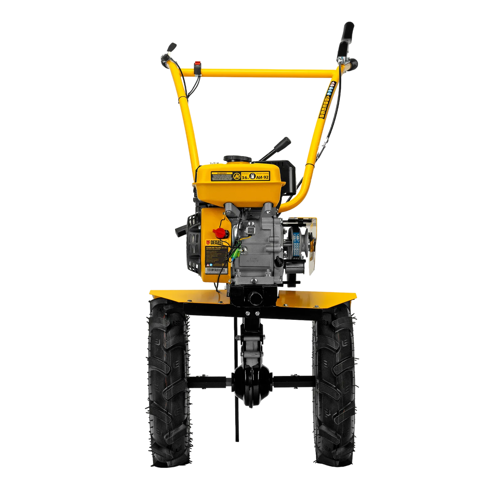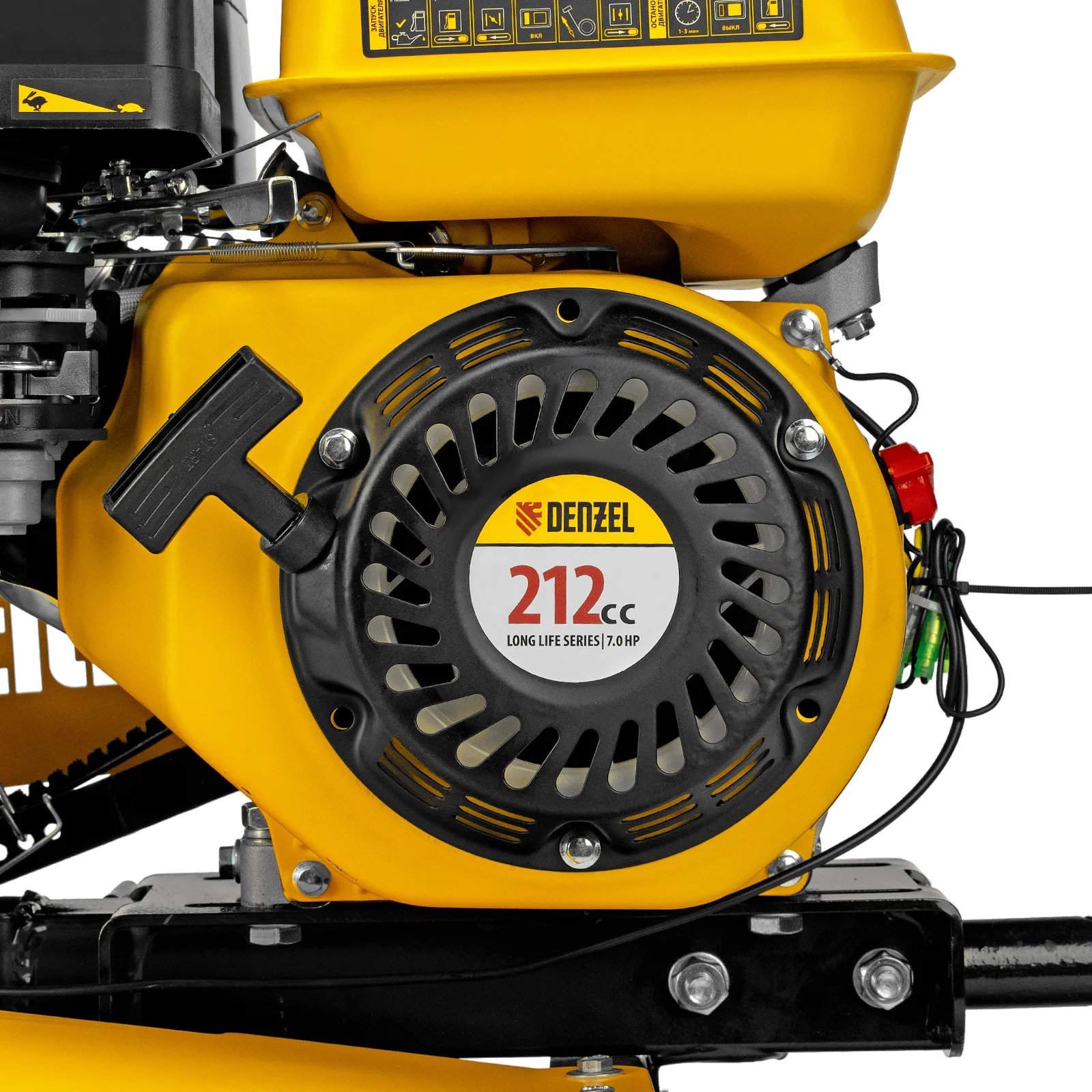 Мотоблок Denzel DPT-170S 56441 с двигателем мощностью 7 л. с., ременным механизмом сцепления, фрезами 3 х 4, шкивом отбора мощности (ШОМ) и коробкой передач 2В/1Н предназначен для проведения сельскохозяйственных работ. Максимальная ширина обработки составляет 1000 мм, глубина — 350 мм. Фрезы собираются из двух двойных и двух одинарных секций, что позволяет регулировать ширину вспашки. ;Шкив отбора мощности и универсальный кронштейн диаметром 30 мм позволяют установить любое навесное оборудование Denzel, например. плуг, окучник, картофелевыкапыватель. Такое решение значительно расширяет возможности мотоблока и позволяет минимизировать расходы на закупку сельскохозяйственной техники.