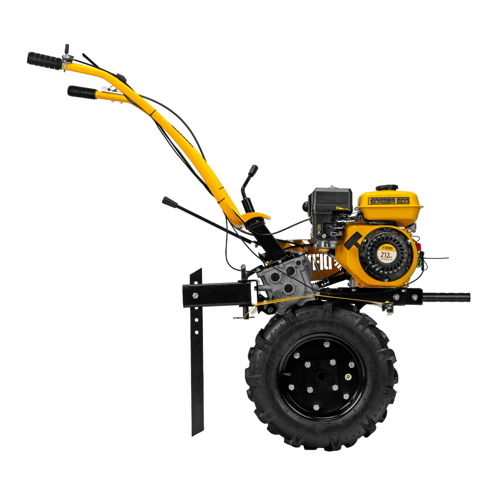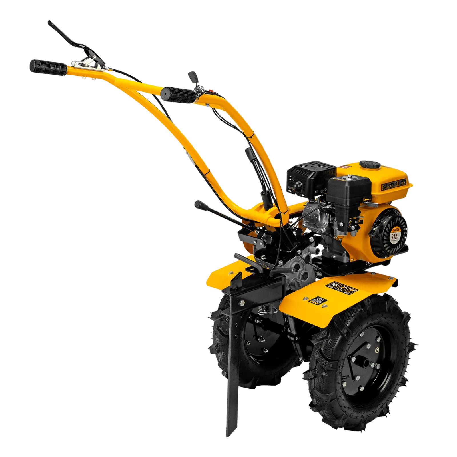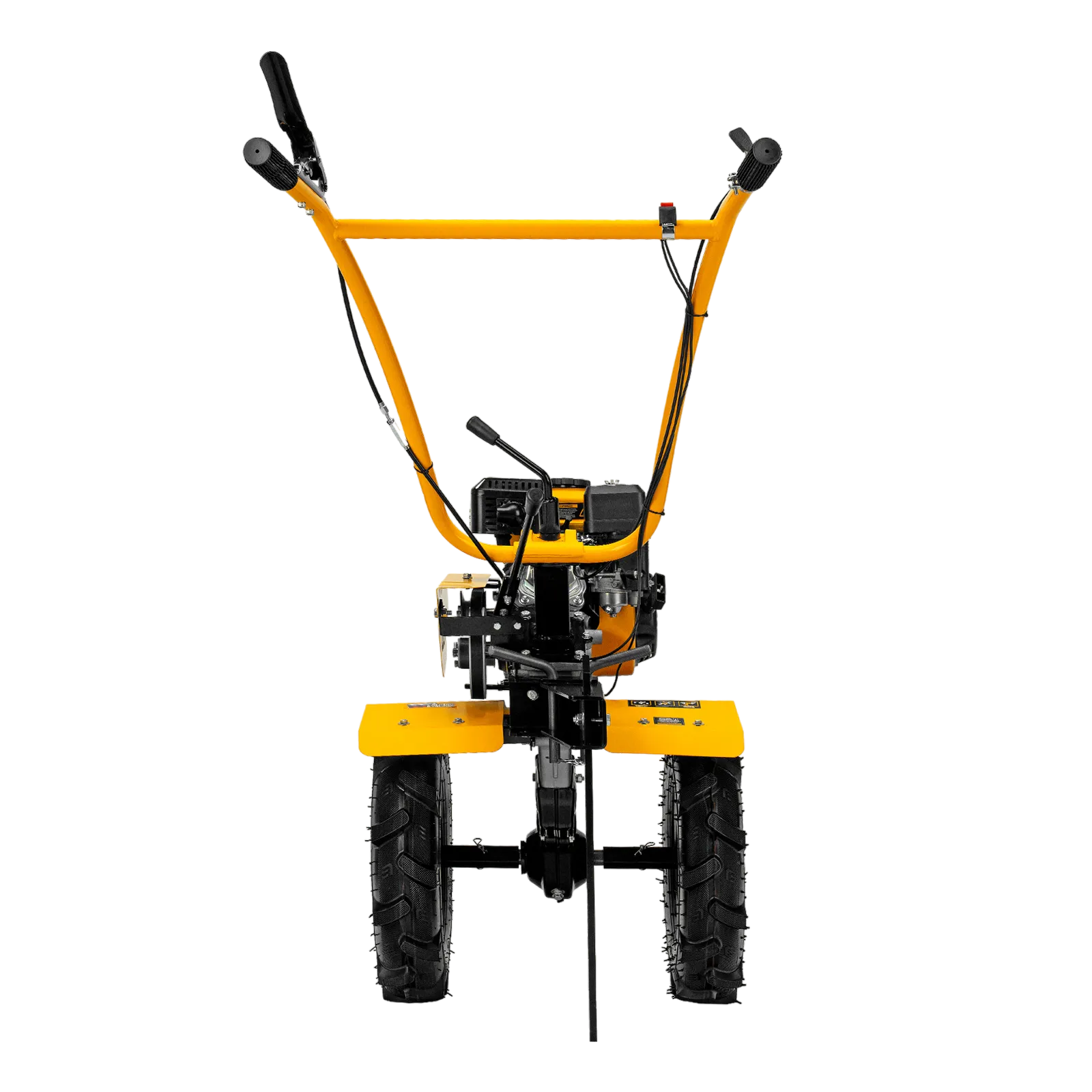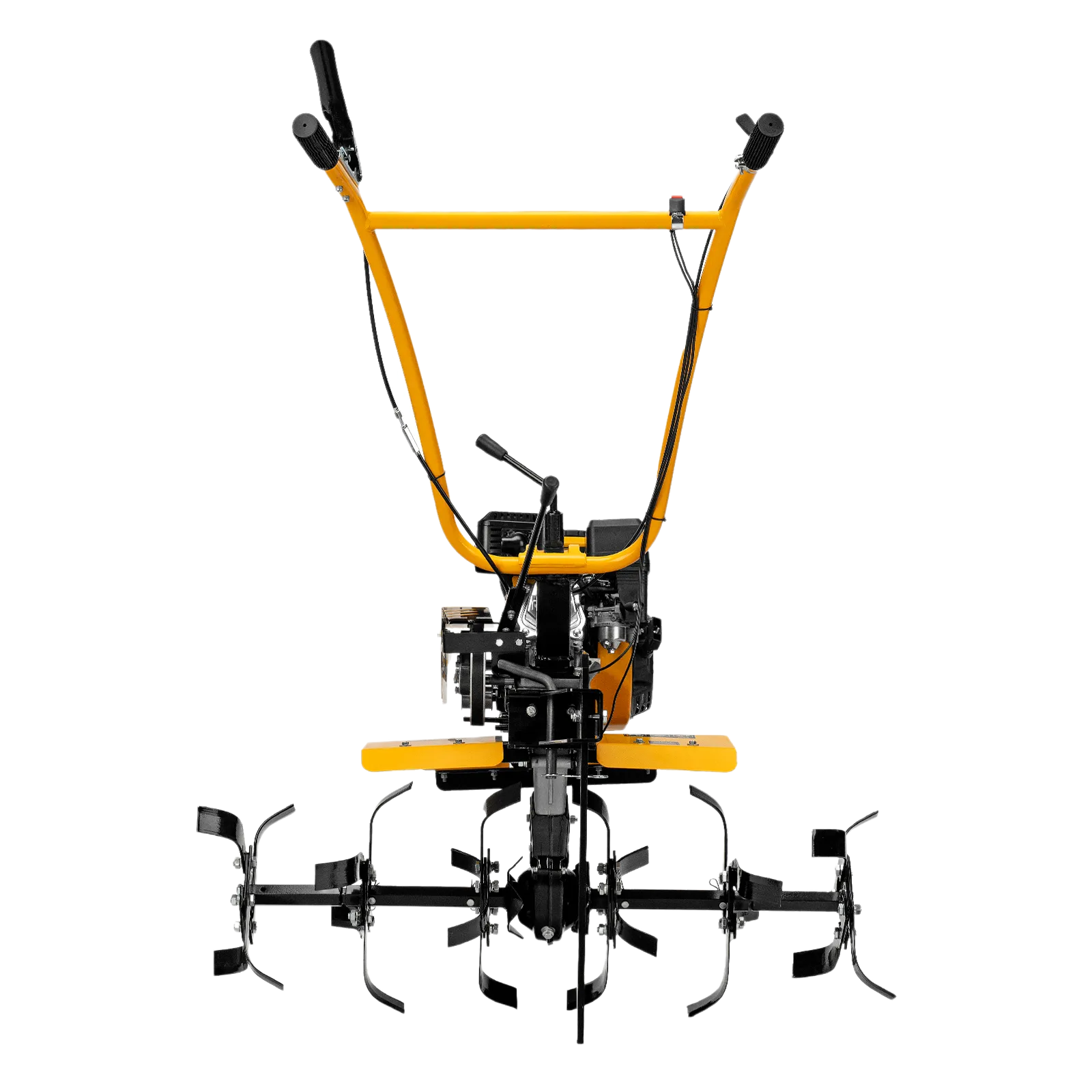 - Удобная работа — основные элементы управления расположены на рукоятках, для включения сцепления и регулировки оборотов двигателя не нужно наклоняться.