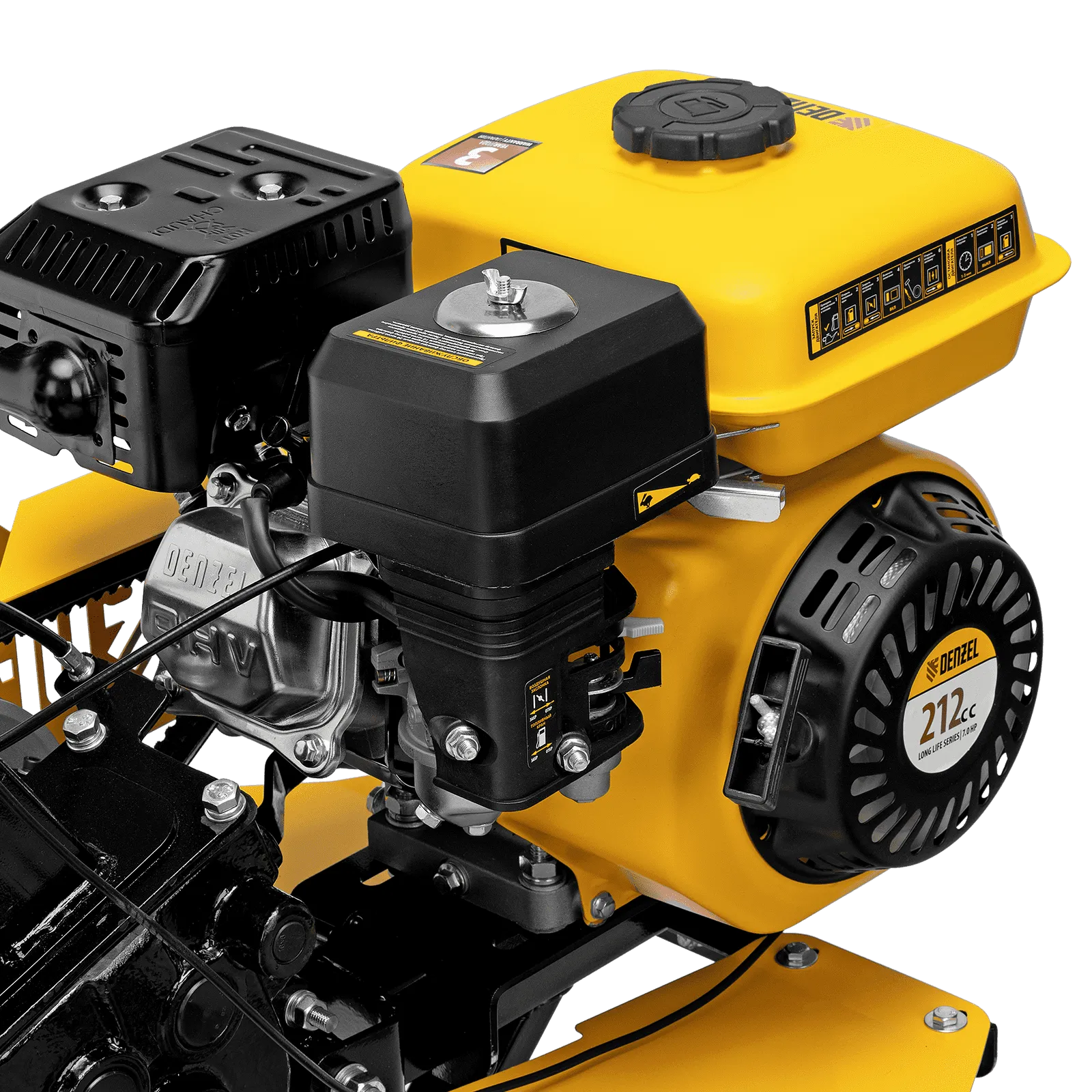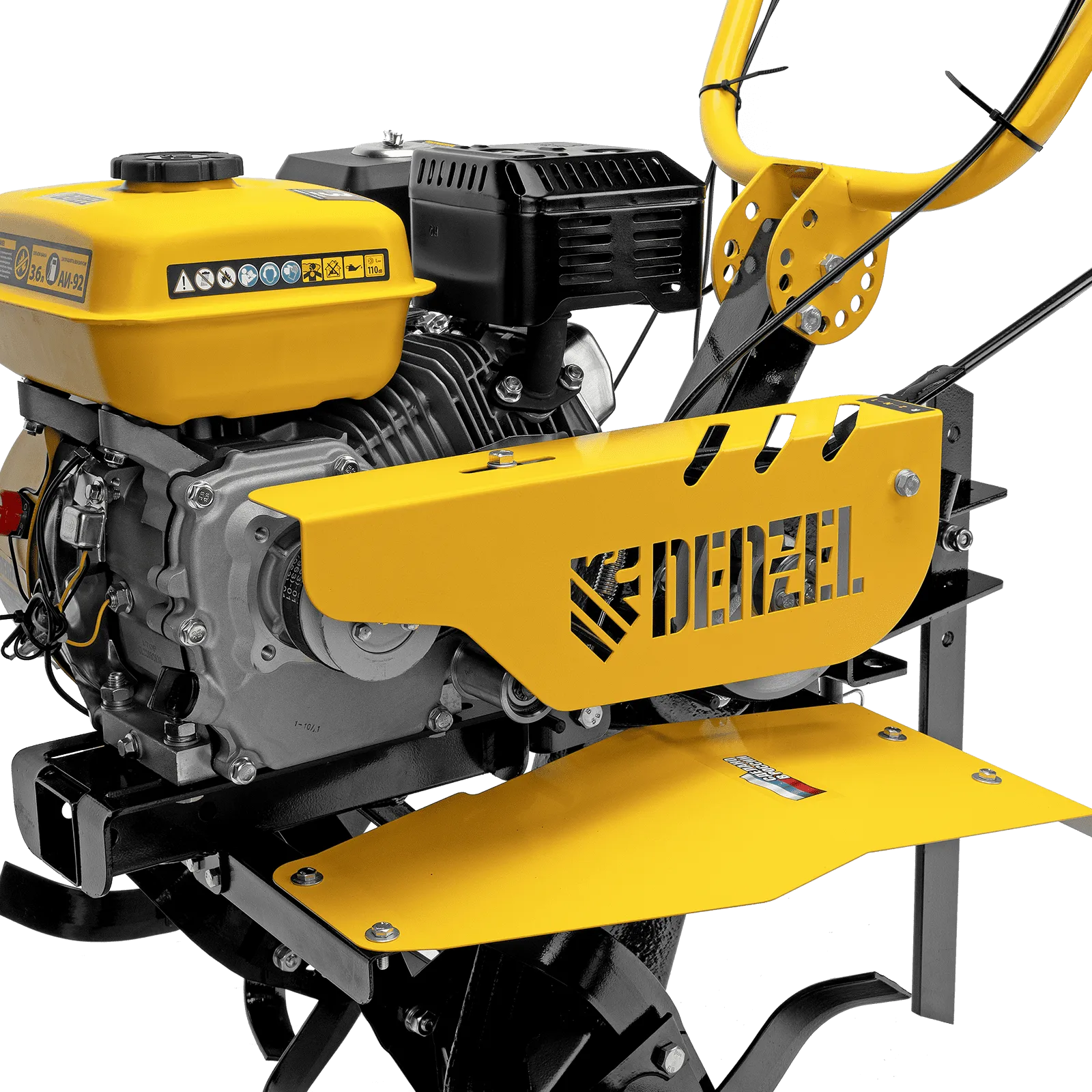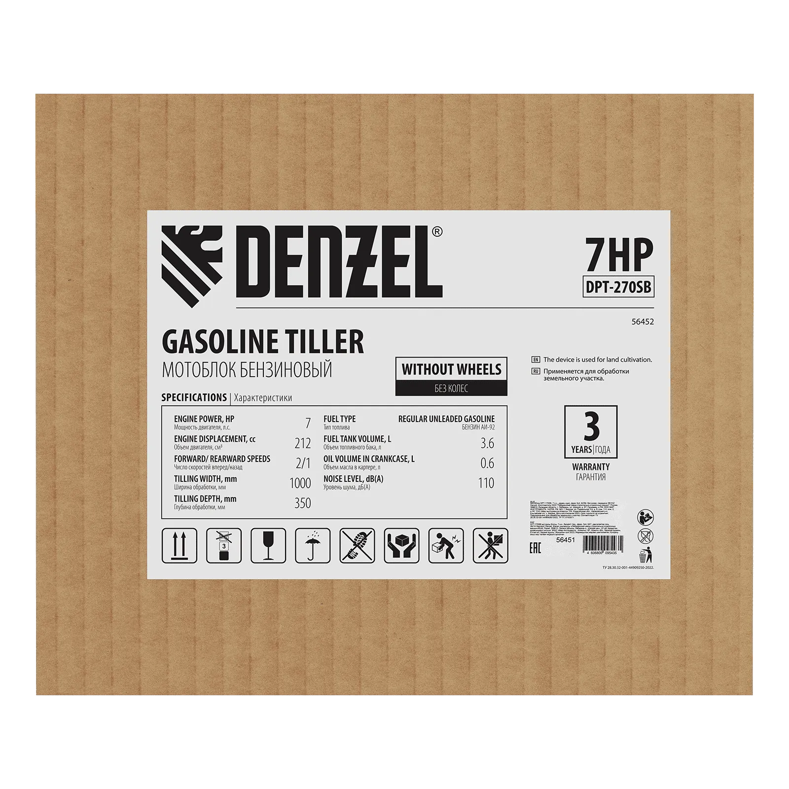 Мотоблок Denzel DPT-270SB 56452 мощностью 7 л.с., с ременным механизмом сцепления, оснащен фрезами 3 х 4, шкивом отбора мощности (ШОМ) и коробкой передач 2В/1Н. Предназначен для выполнения земляных работ: рыхления, вспахивания, прополки и т. д. Успешно справляется даже с плотной, глинистой почвой. Разборные фрезы с дополнительными секциями позволяют регулировать ширину обработки до 1 м.;Чугунный шестеренчато-цепной редуктор позволяет работать длительное время с большими нагрузками, шкив отбора мощности и кронштейн диаметром 30 мм позволяют подключать активное навесное оборудование. При помощи универсальной сцепки мотоблок агрегатируется с различным навесным оборудованием Denzel: плугом, окучником, картофелевыкапывателем (совместимые артикулы 59905, 59911, 59906, 59907, 59912, 59908, 59913). Тем самым можно сократить расходы на приобретение сельскохозяйственной техники. Повысить проходимость можно при помощи грунтозацепов 59901, 59914, 59915, 59916, 59917. Установка прицепа Denzel 59950 позволяет использовать мотоблок для перемещения по участку и транспортировки грузов.