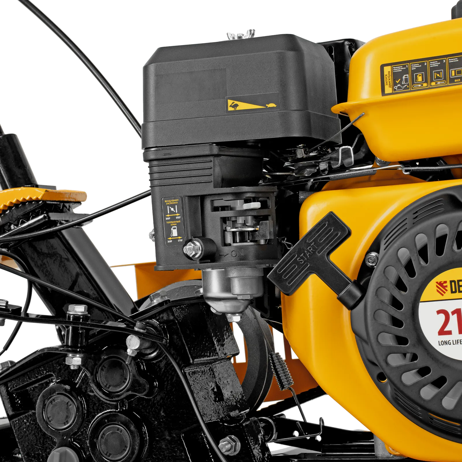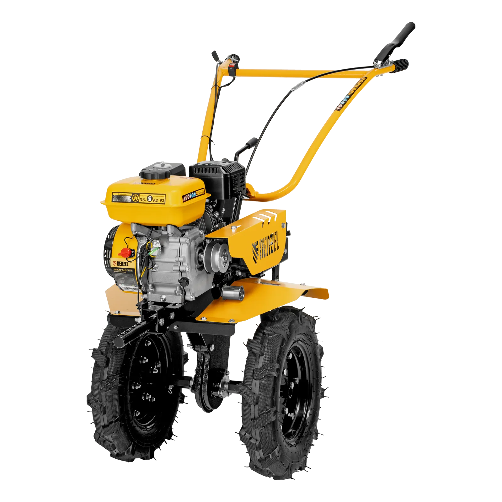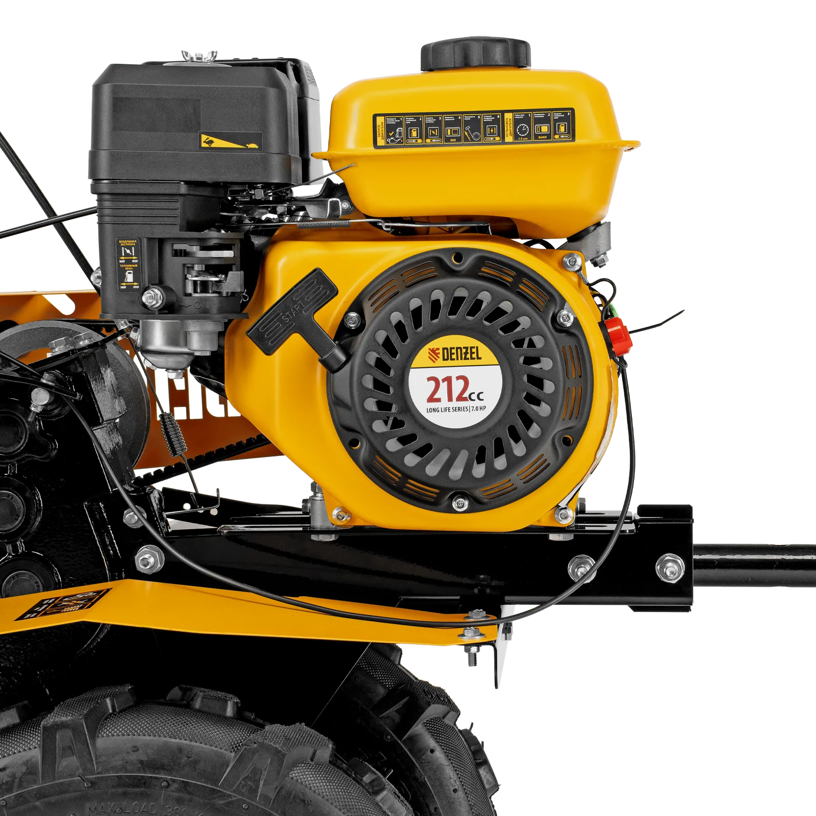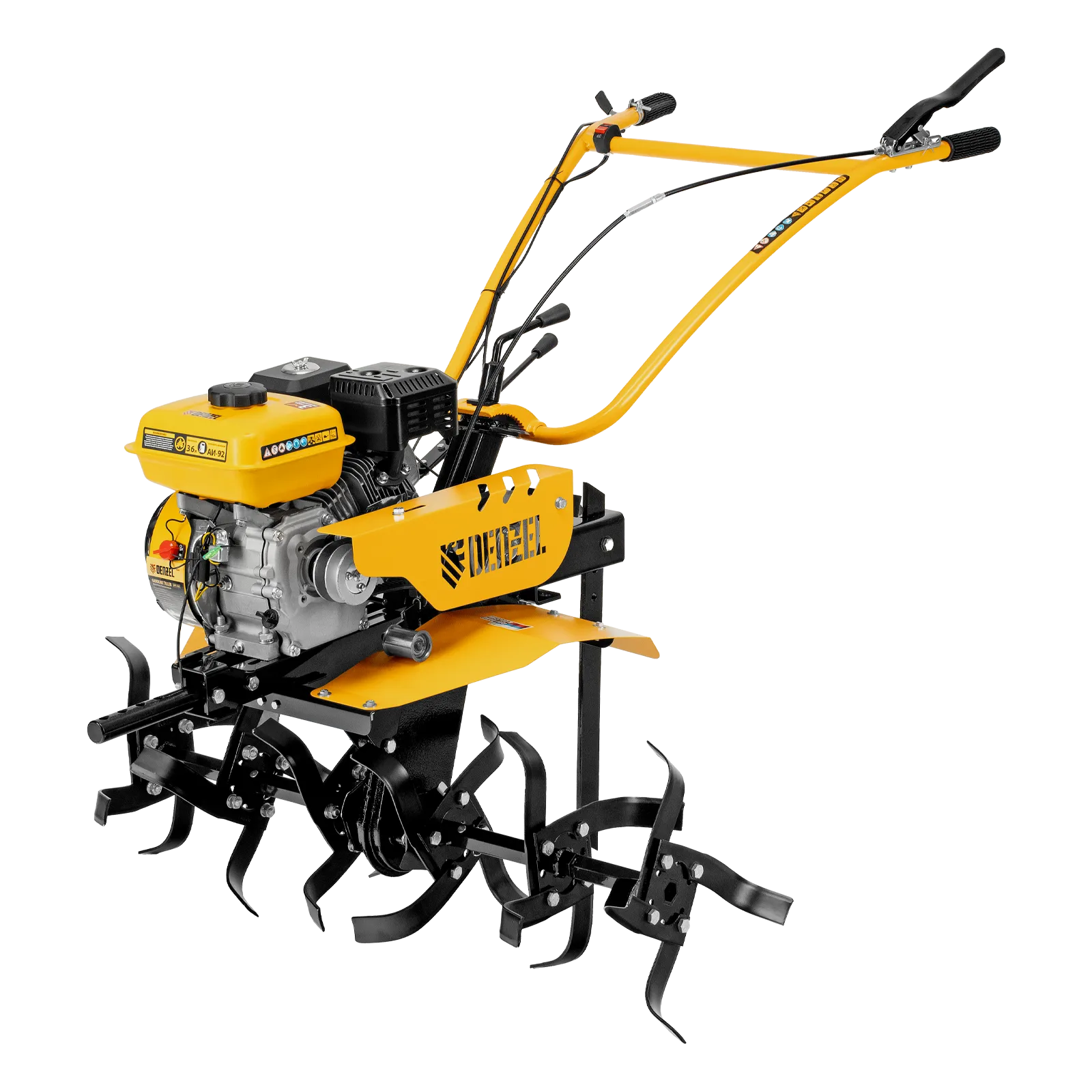 - Эффективная работа на любых типах грунта — мотоблок оснащен мощным и экономичным OHV-двигателем Denzel Long Life и стальными закаленными фрезами, не требующими заточки в течение всего срока эксплуатации.