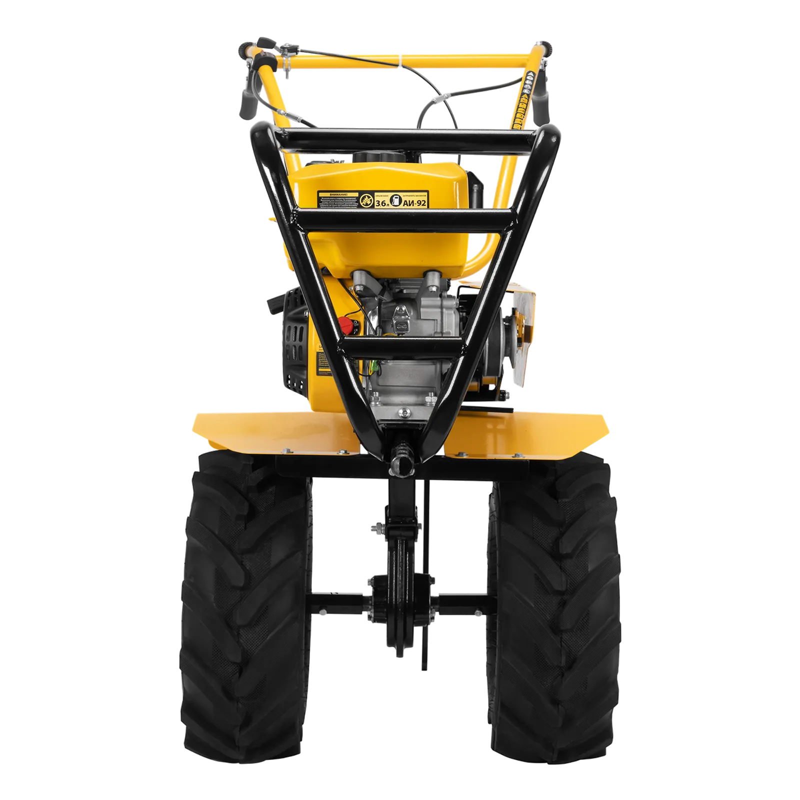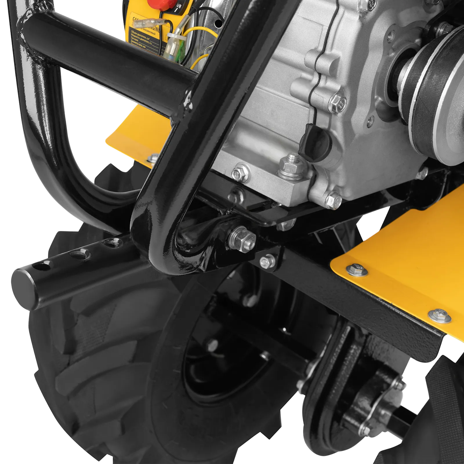 - Усиленная рама — ключевые узлы надежно защищены, мотоблок удобно транспортировать.