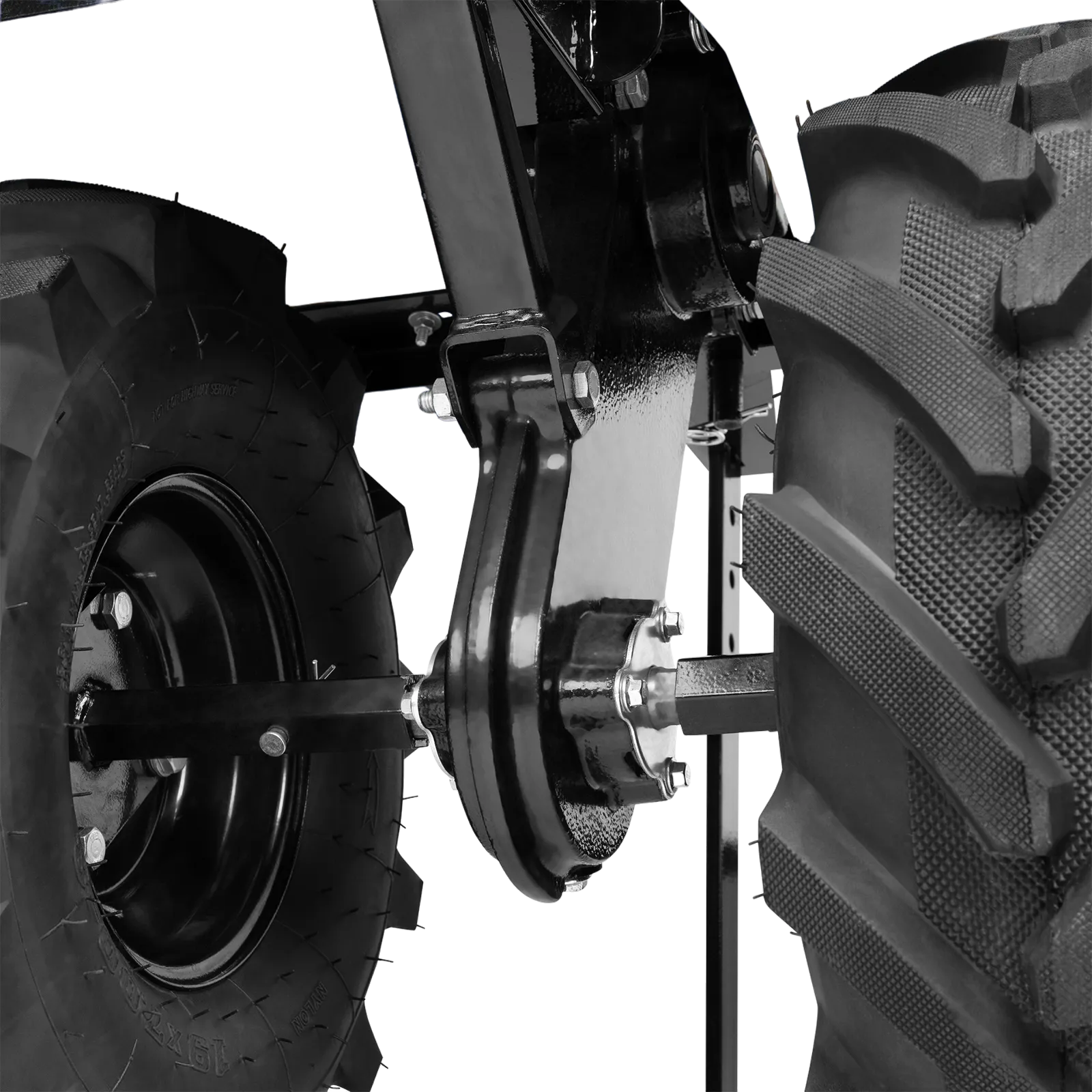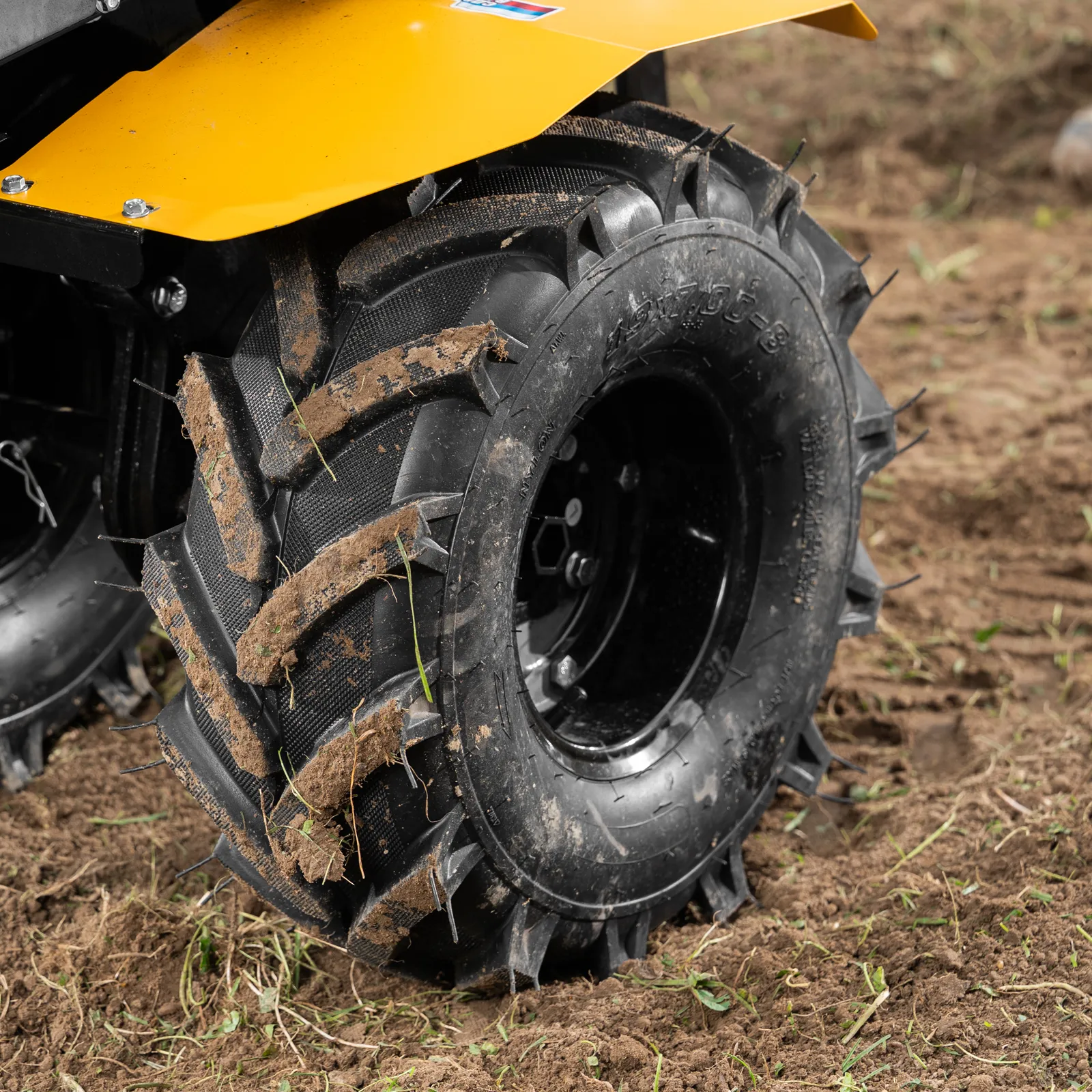 - Повышенная проходимость — мотоблок оснащен тракторными пневматическими колесами.