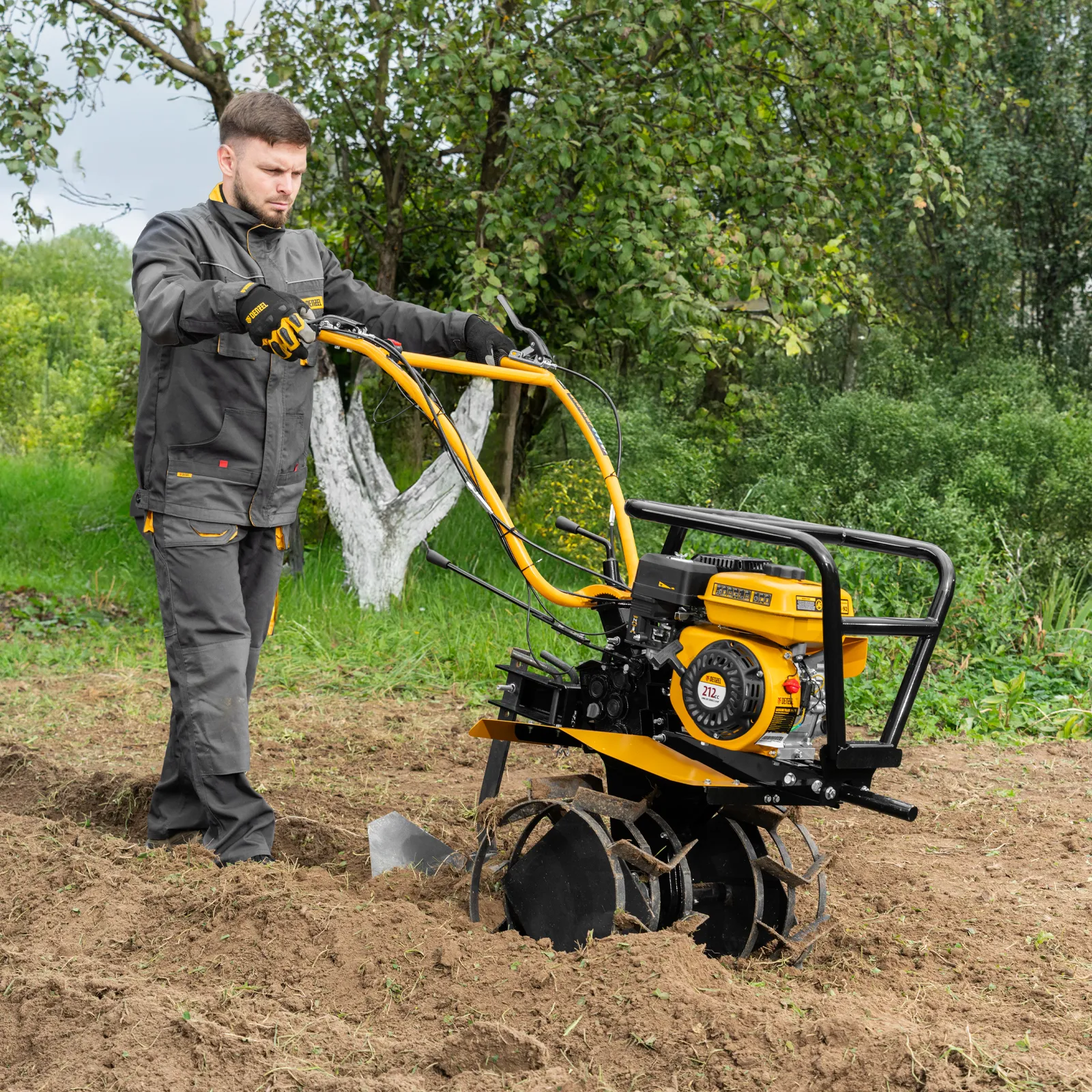 - Безопасная эксплуатация — широкие защитные крылья предотвращают вылет комьев земли и других предметов в сторону пользователя.