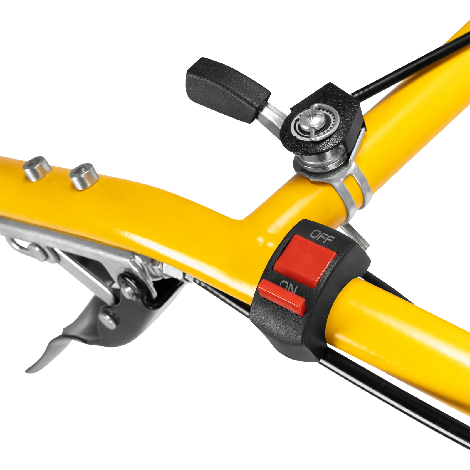 - Удобное управление — регулятор оборотов двигателя и рычаги сцепления расположены на руле, руль регулируется в двух плоскостях.