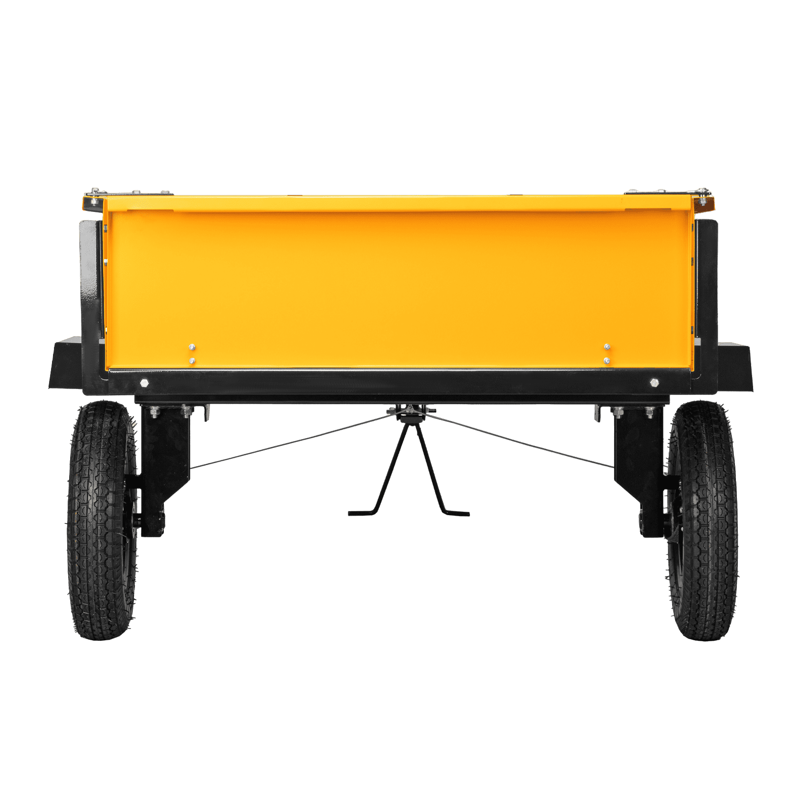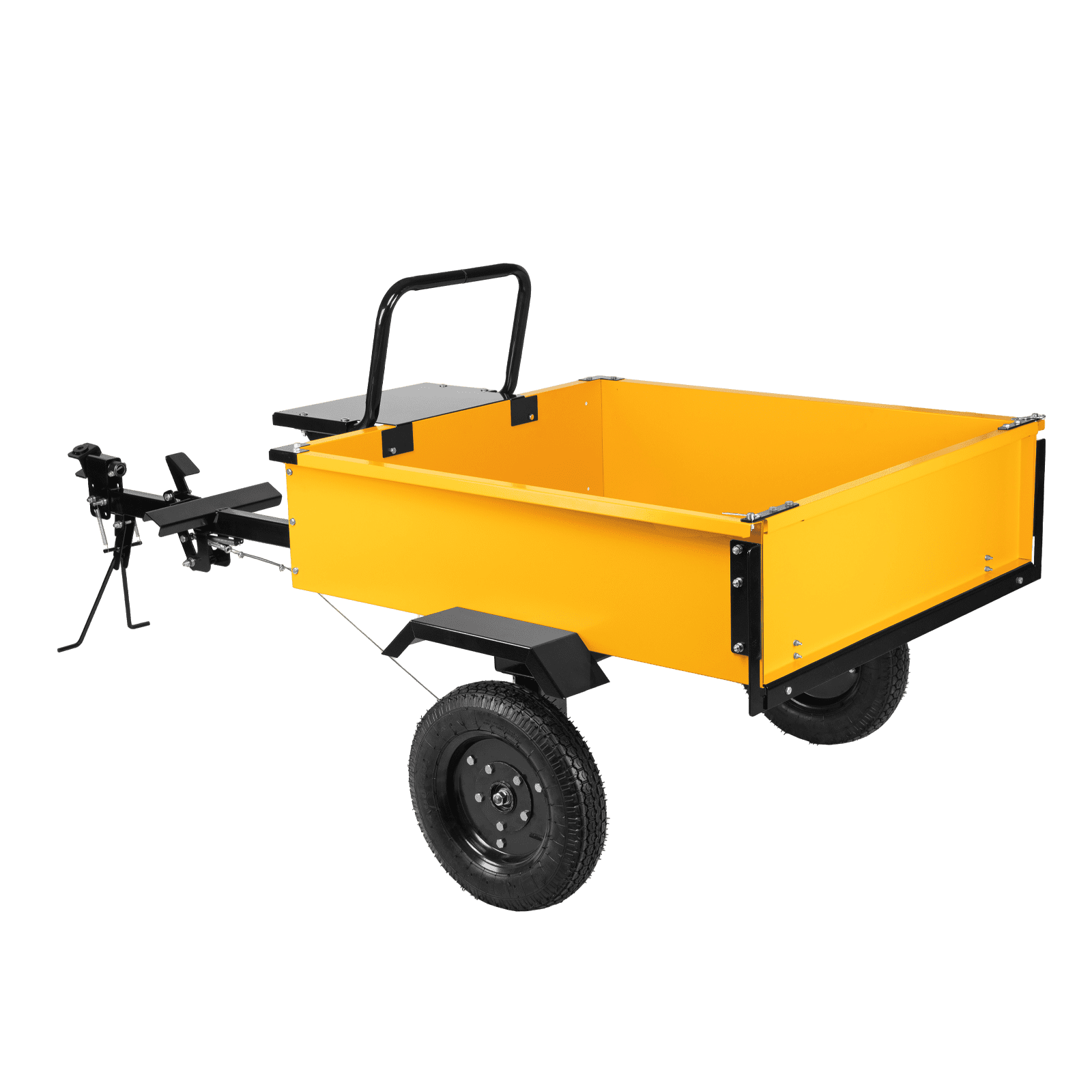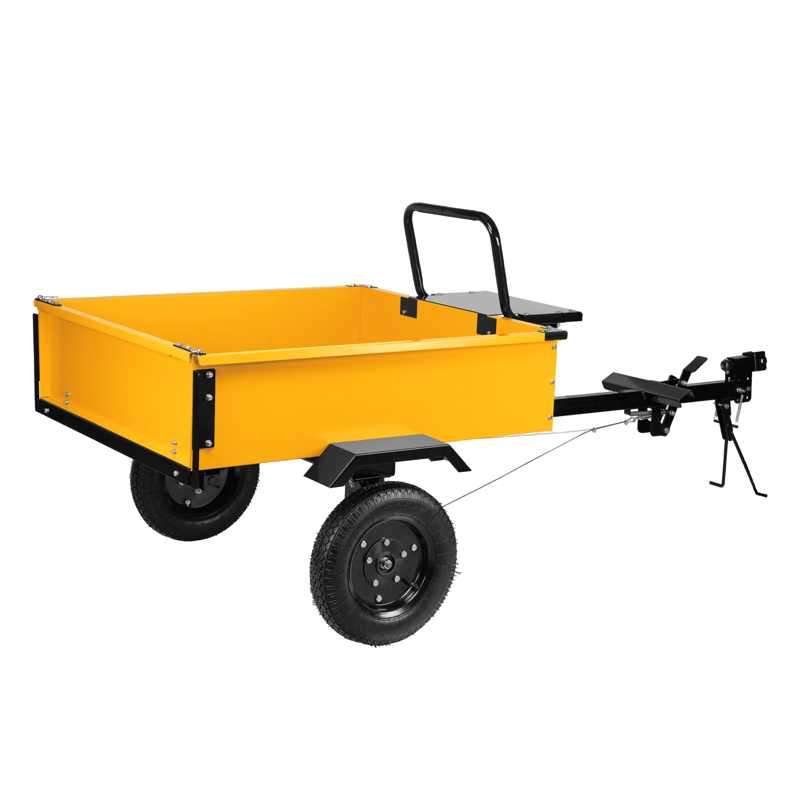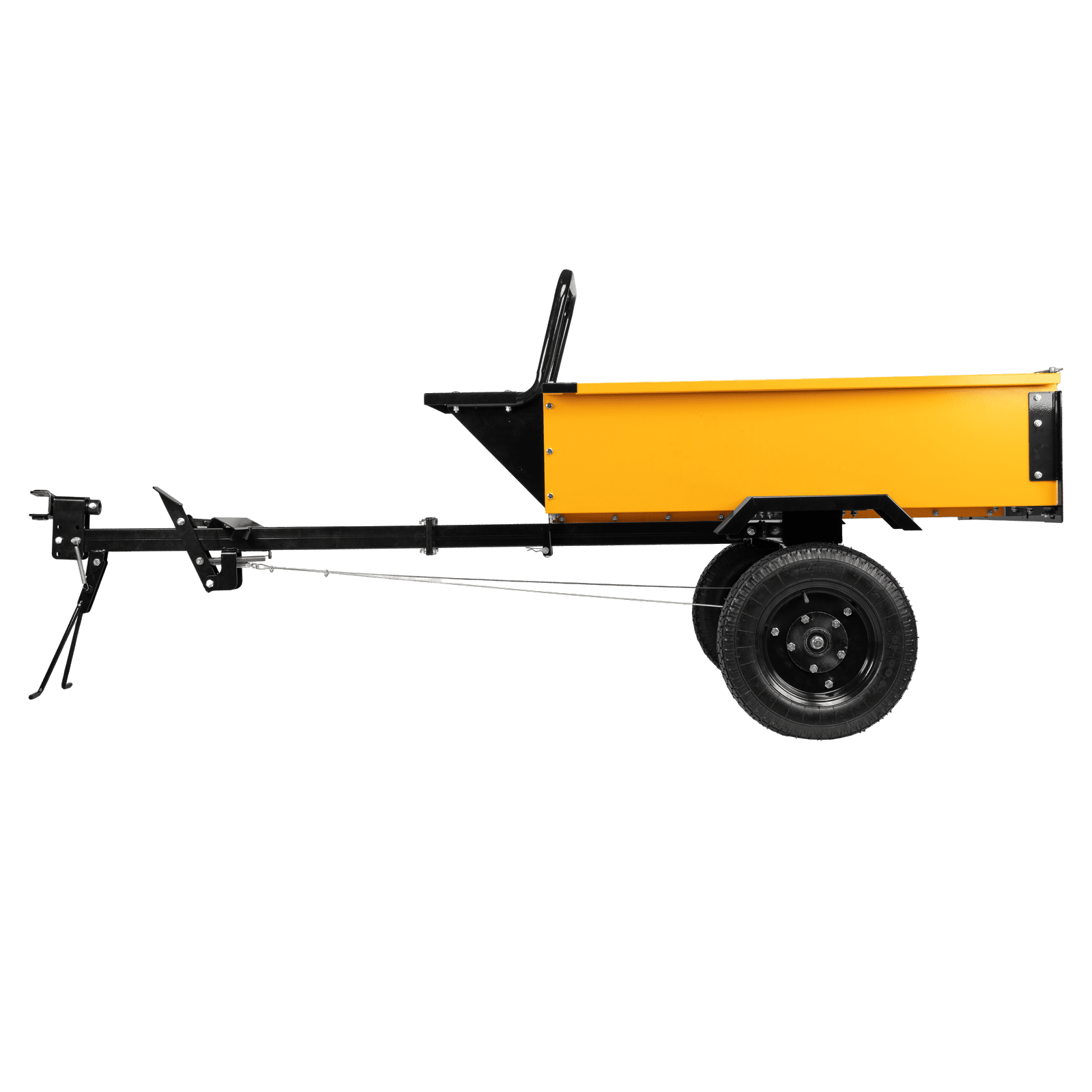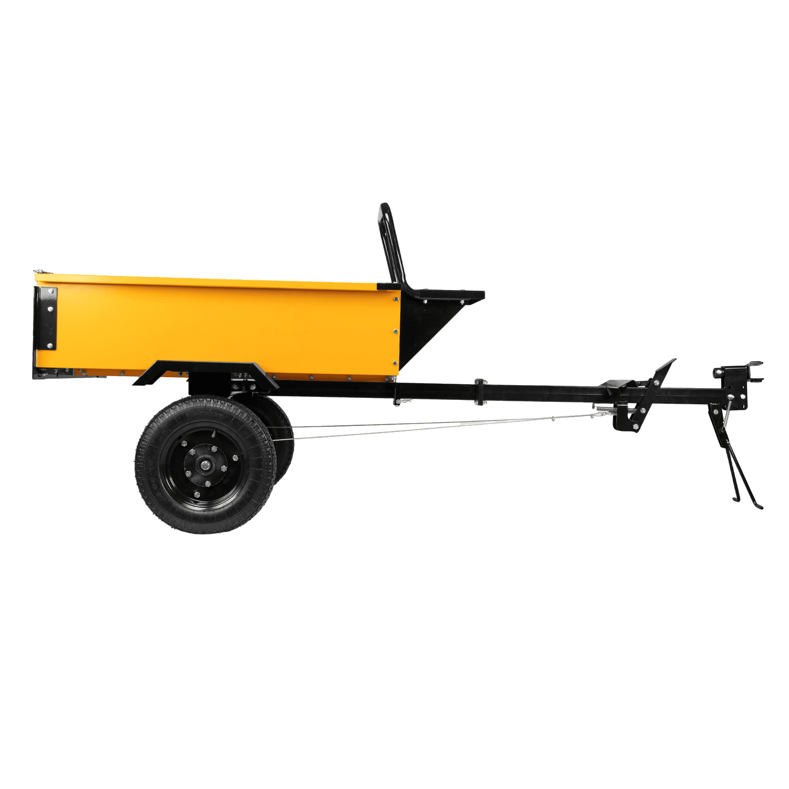 Прицеп Denzel TT-500 59950 с оцинкованным кузовом и регулируемой сцепкой, с колесами размером 4.00-10, в упаковке, имеет общую грузоподъемность 500 кг. Позволяет использовать мотоблок в качестве транспортного средства, а также перевозить различные грузы. Прицеп самосвального типа с функцией опрокидывания удобен для выгрузки. Приспособление пригодится в сельском хозяйстве и коммунальной сфере.