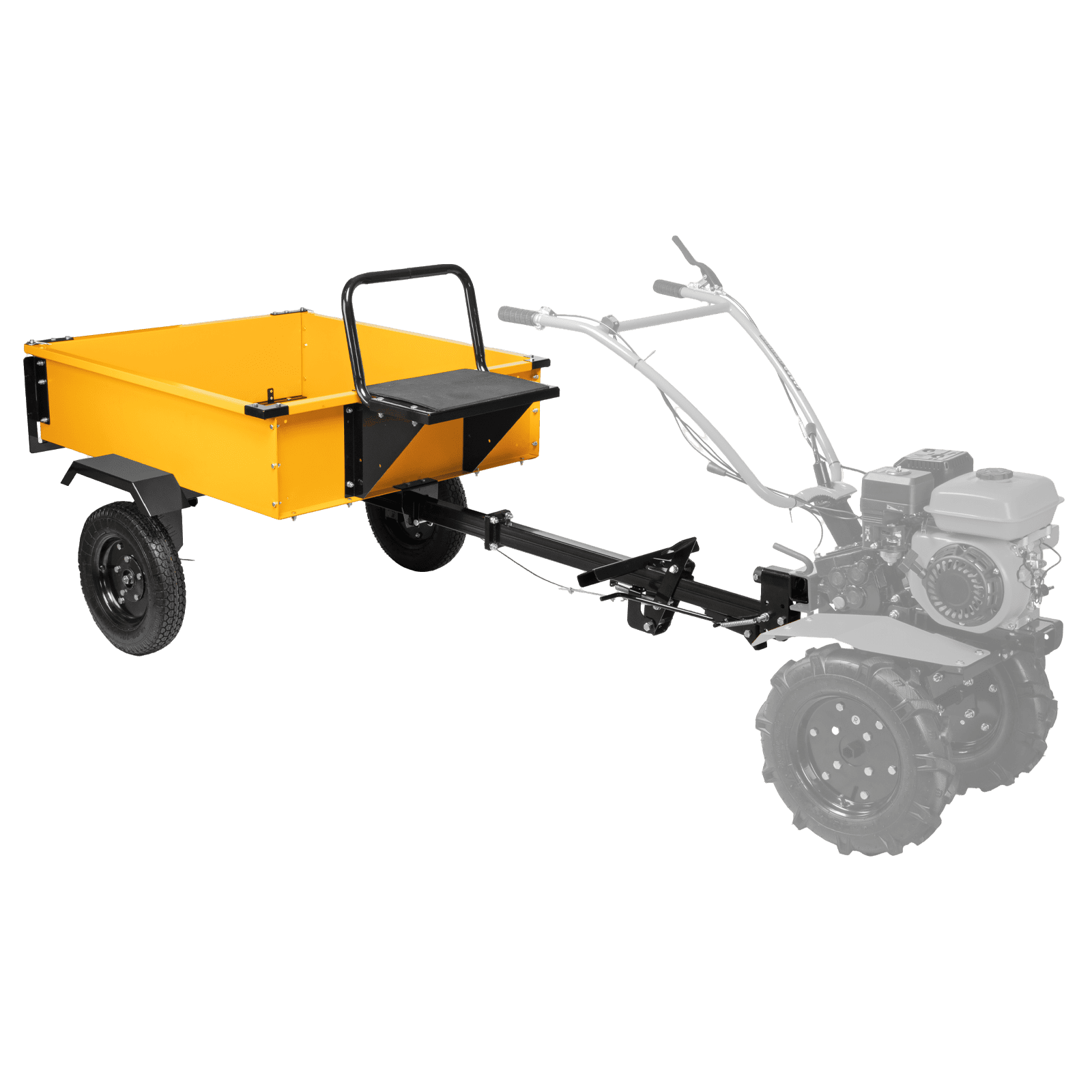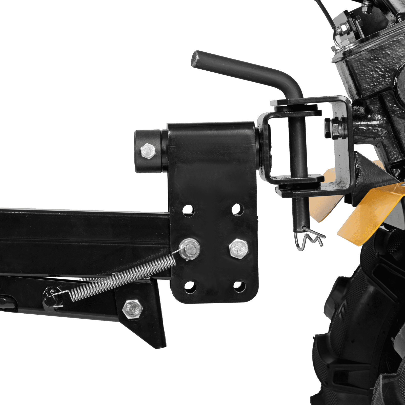 - Совместимость со всеми мотоблоками — прицеп поставляется с универсальной регулируемой сцепкой.