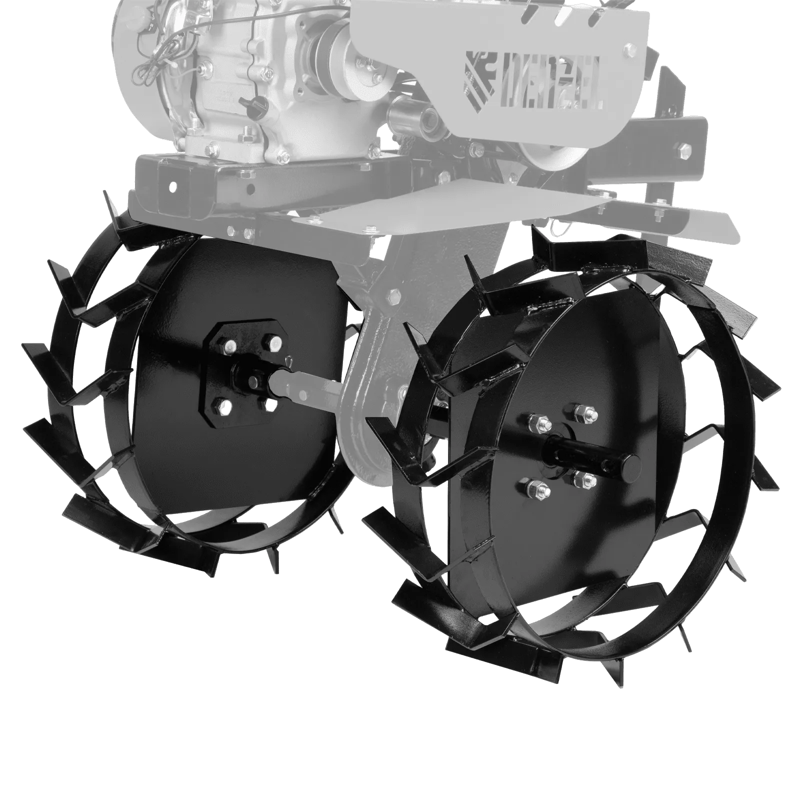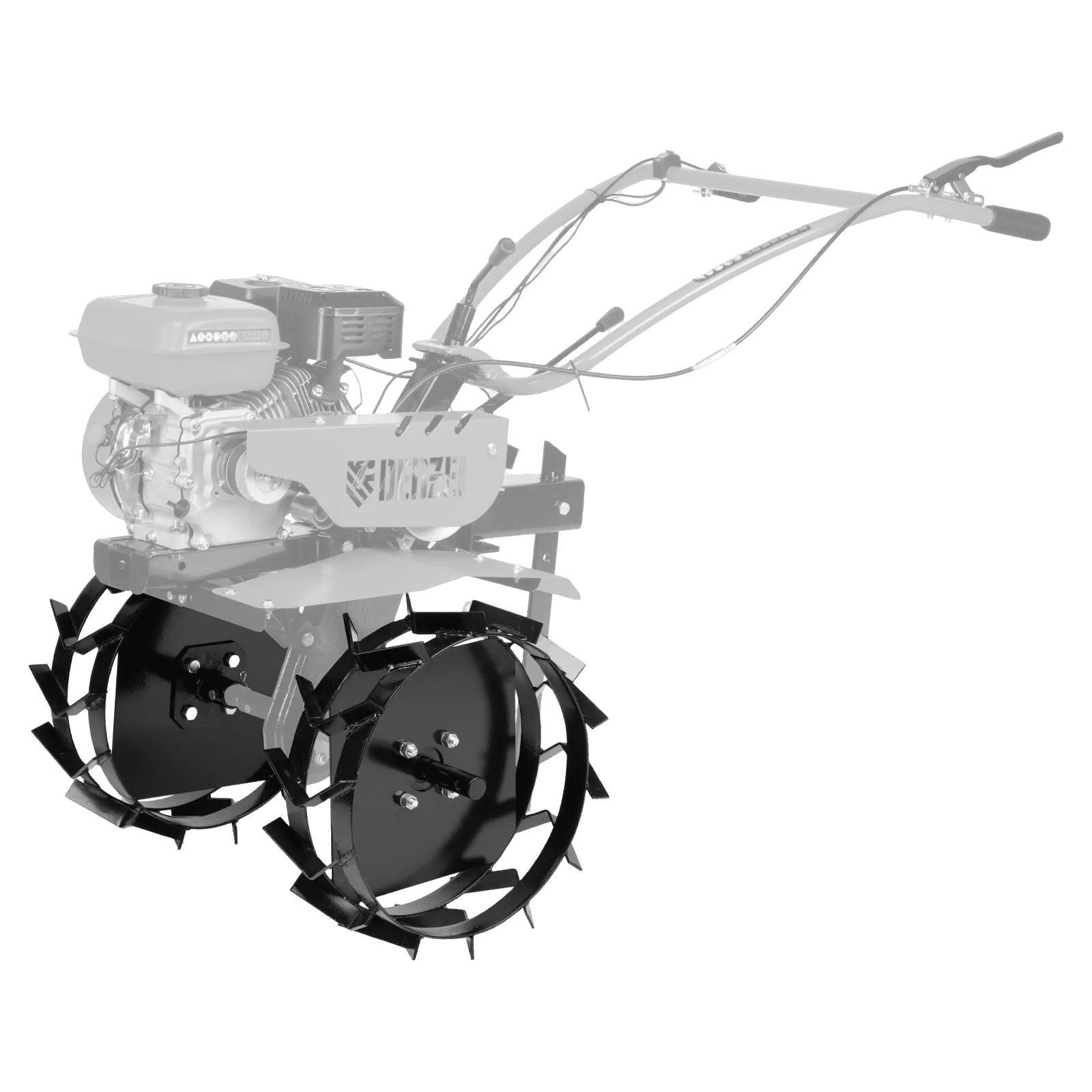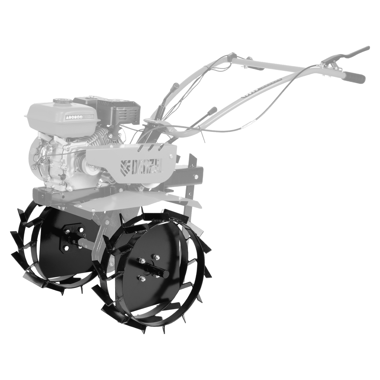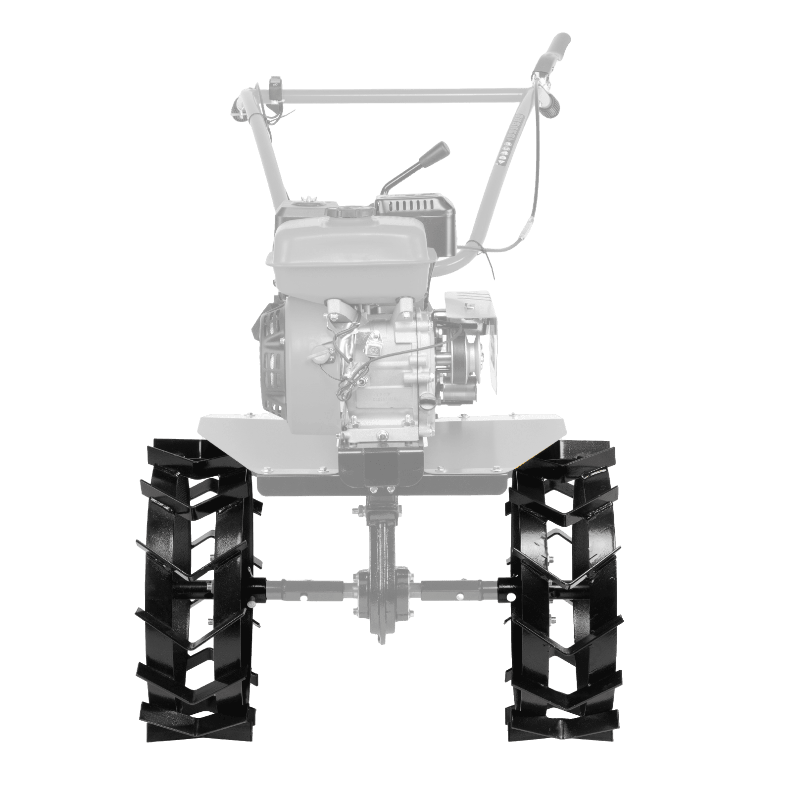 Грунтозацепы Denzel 59915 диаметром 460 мм и шириной 160 мм, с посадочным кругом 30 мм, 2 шт. в комплекте, устанавливаются на мотоблок и облегчают выполнение тяжелых работ: окучивание, вспахивание, рыхление. Обеспечивают хорошее сцепление с почвой, устойчивость на рыхлом грунте, а также улучшают проходимость. Изделия используются для ухода за дачным участком и проведения сельскохозяйственных работ.