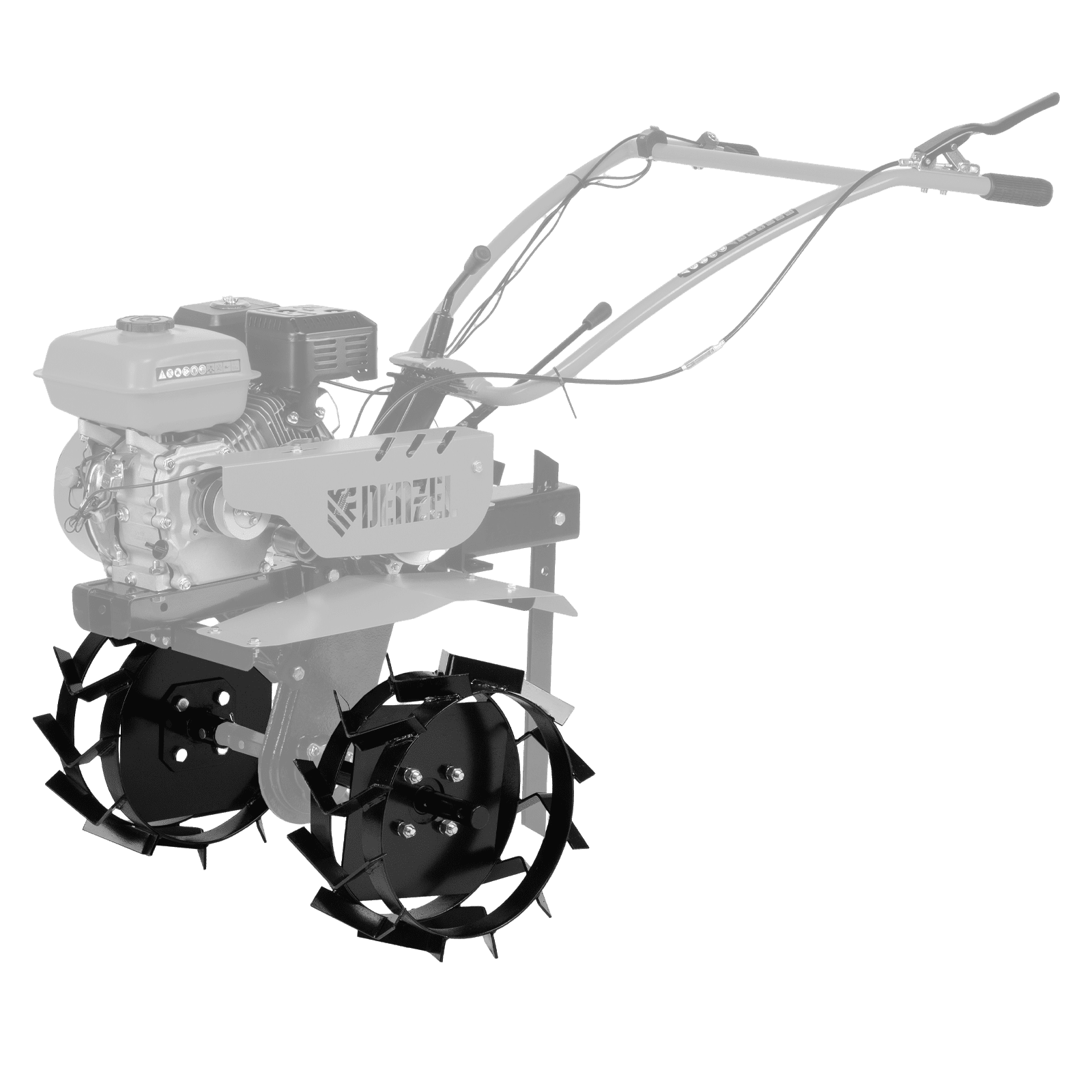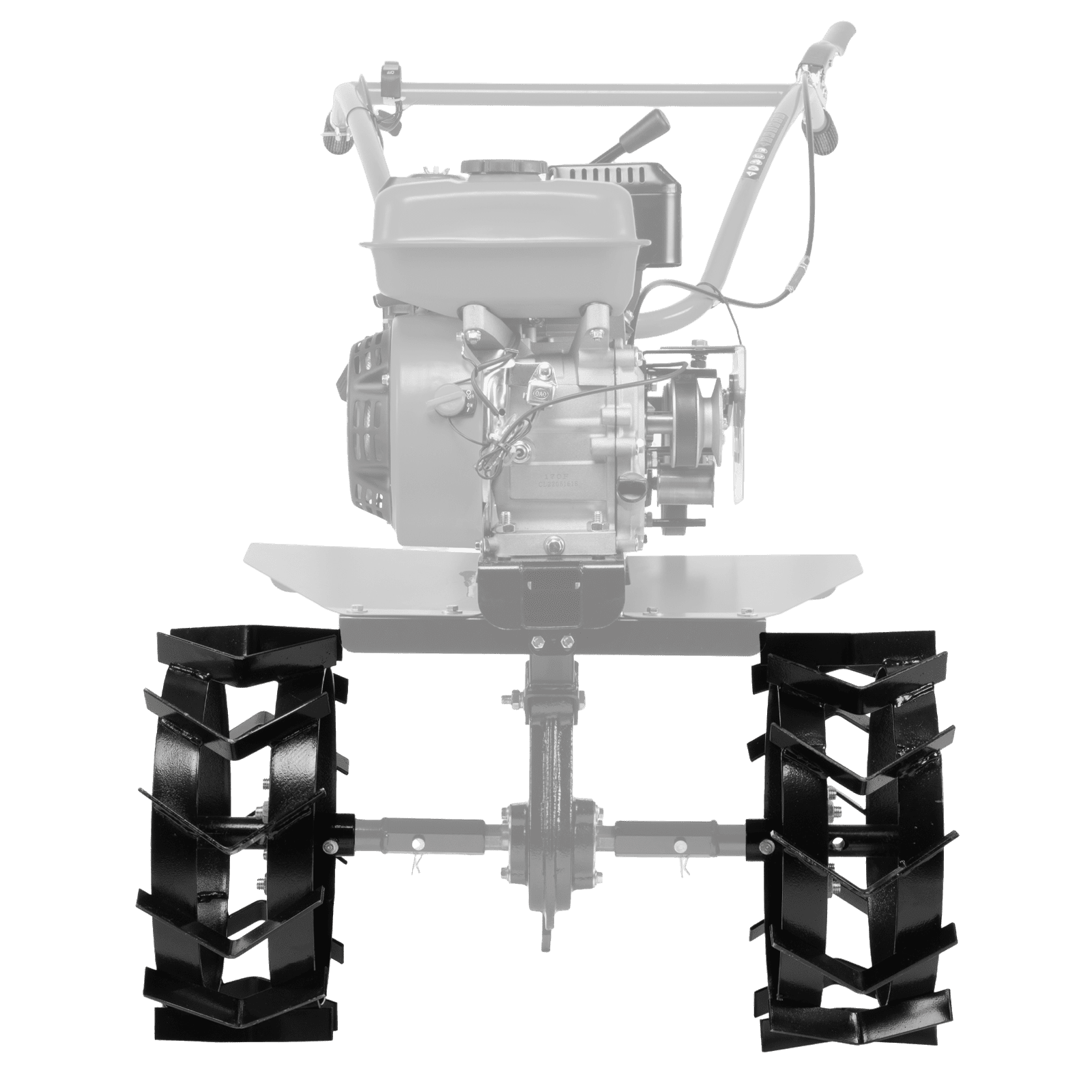 Грунтозацепы Denzel 59917 диаметром 380 мм и шириной 160 мм, с посадочным кругом 30 мм, 2 шт. в комплекте, устанавливаются на мотоблок и облегчают выполнение тяжелых работ: окучивание, вспахивание, рыхление. Обеспечивают хорошее сцепление с почвой, устойчивость на рыхлом грунте, а также улучшают проходимость. Изделия используются для ухода за дачным участком и проведения сельскохозяйственных работ.
