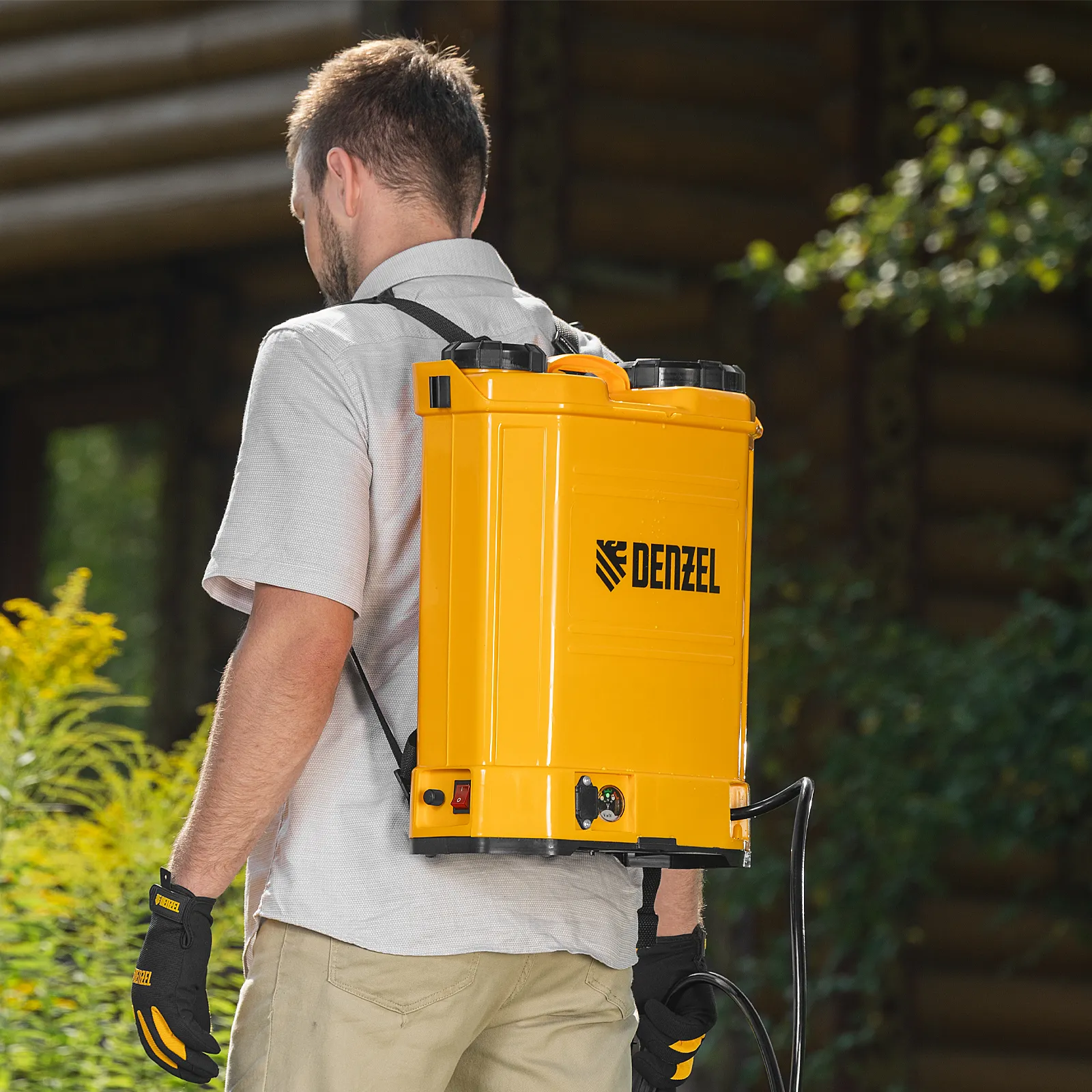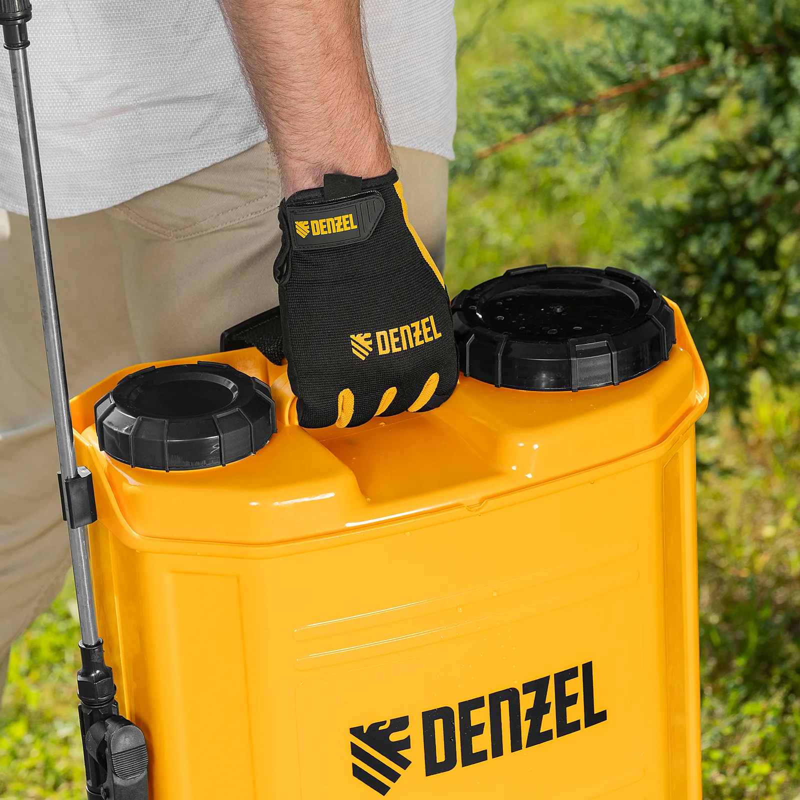 - Удобное перемещение — плечевые ремни с мягкими накладками равномерно распределяют вес опрыскивателя, снижая нагрузку на спину.