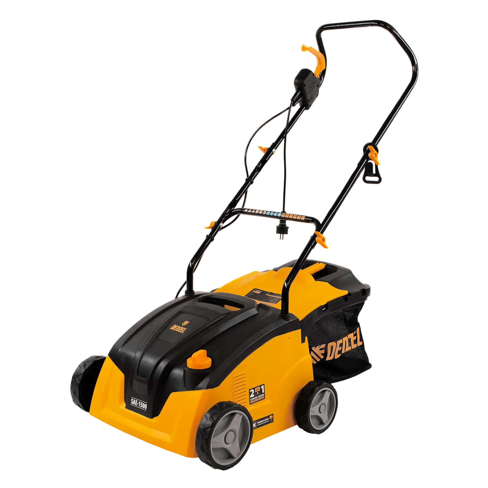 Электрический скарификатор-аэратор Denzel SAE-1500 57701 мощностью 1500 Вт обеспечивает ширину обработки 32 см, глубину -11/+5 мм и предназначен для ухода за газоном: удаления сухой травы, мха и мусора, а также прорезания дерна и обеспечения притока воздуха к корневой системе растений. Скорость вращения вала составляет 4000 об/мин, этого достаточно для эффективной обработки придомовой территории.