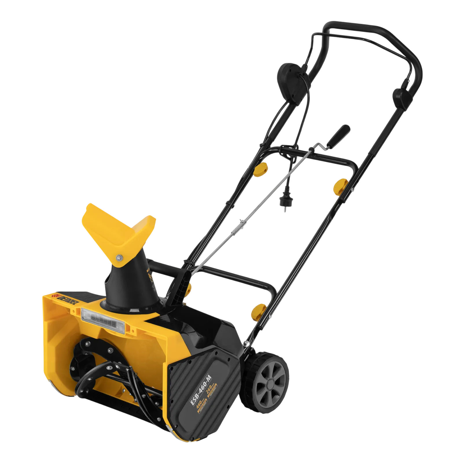- Небольшой вес 17 кг — снегоуборочную машину легко перемещать.