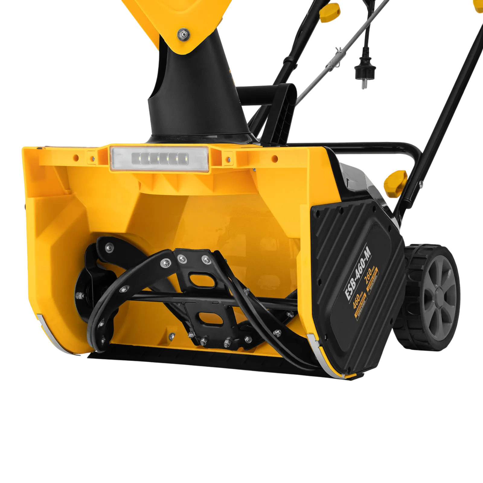 Электрическая снегоуборочная машина Denzel ESB-460-M 97628 мощностью 1,8 кВт, с металлическим шнеком и LED-фарой, предназначена для работы на ровных твердых поверхностях. Ширина захвата составляет 460 мм, что позволяет быстро справиться с работой. С помощью машины можно расчистить от снега небольшую площадку, дорожку, тротуар или автомобильную парковку.
