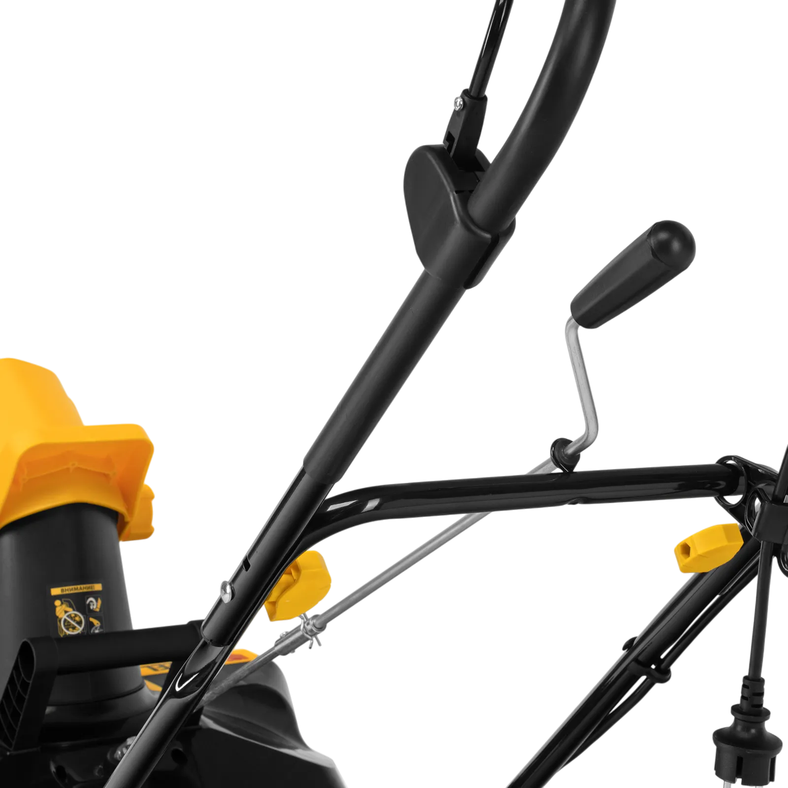 - Простая регулировка направления выброса снега — удобная рукоятка поворота желоба избавляет пользователя от необходимости наклоняться.
