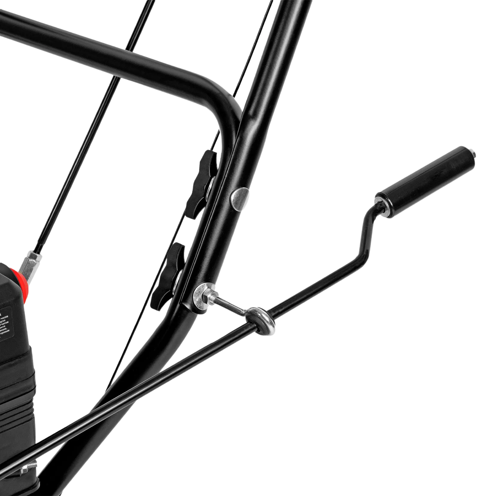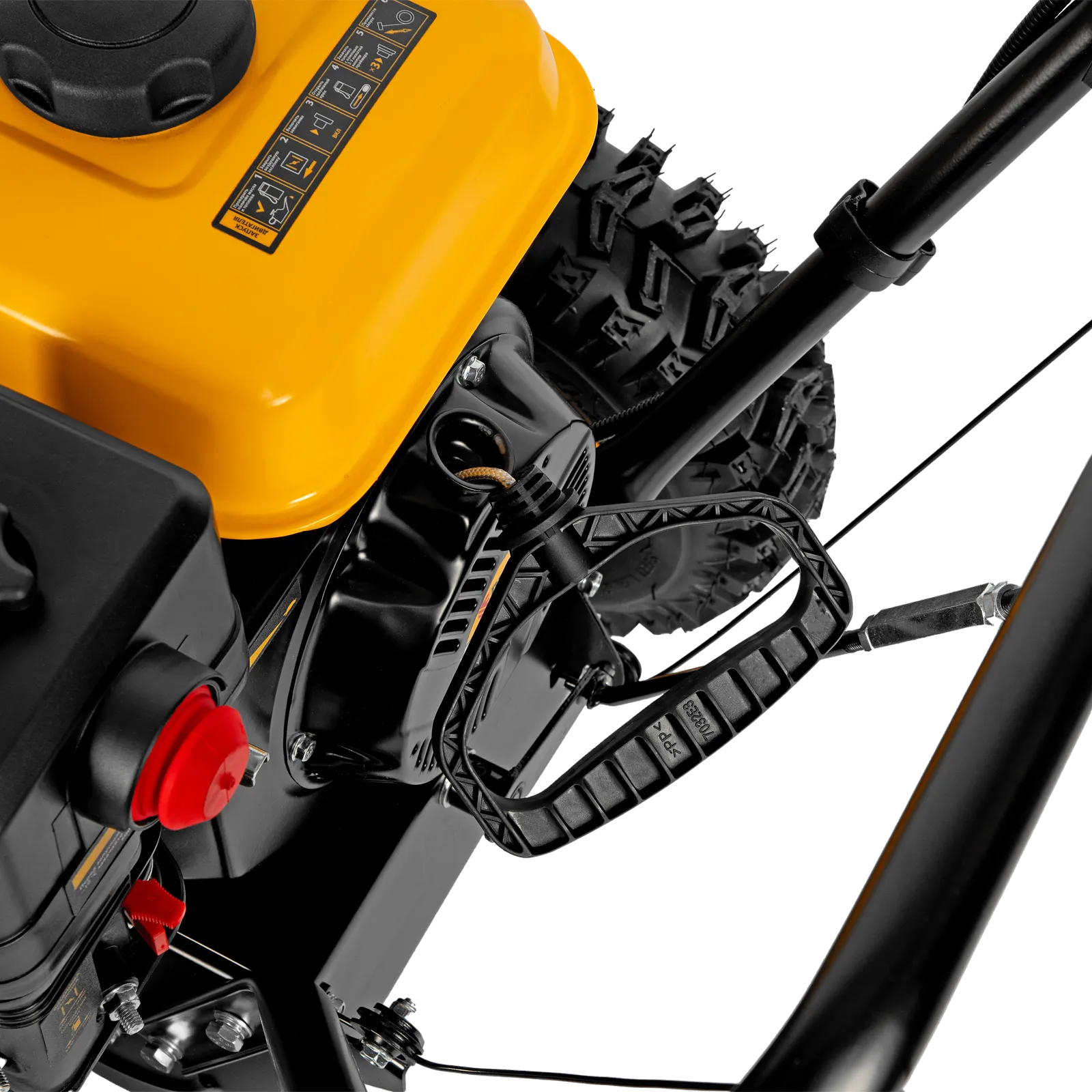 - Надежная конструкция — высокая стальная панель придает жесткость раме и повышает комфорт использования бензинового снегоуборщика.