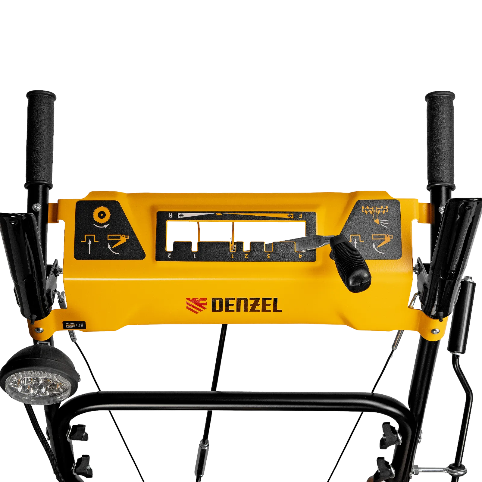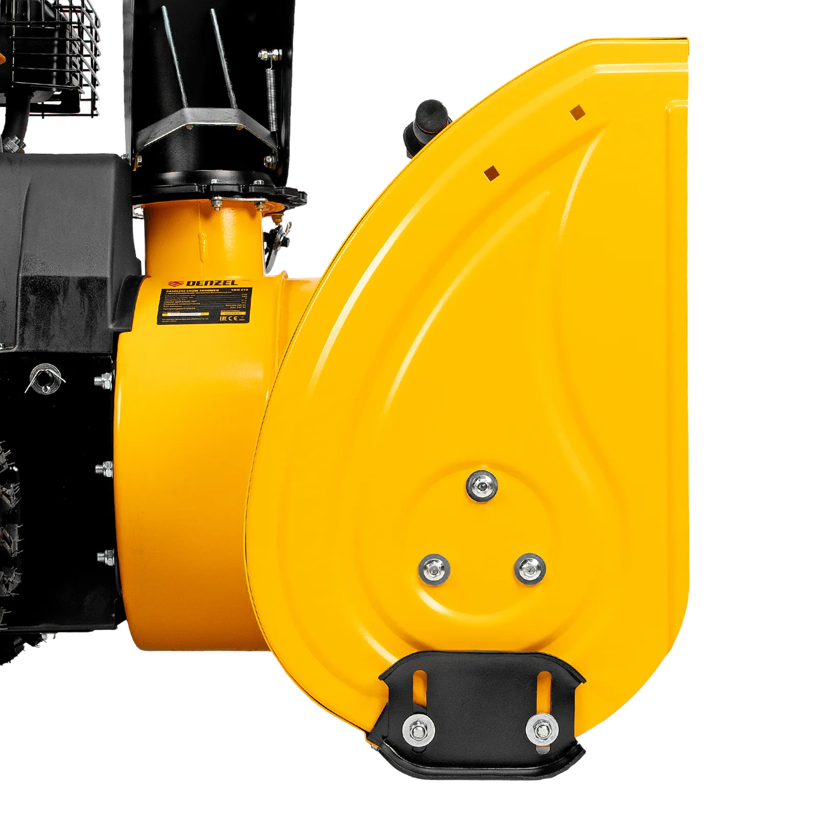- Возможность увеличения ширины захвата до 710 мм — на кожух шнека можно установить подрезатели Denzel 97102 (не входят в комплект поставки).