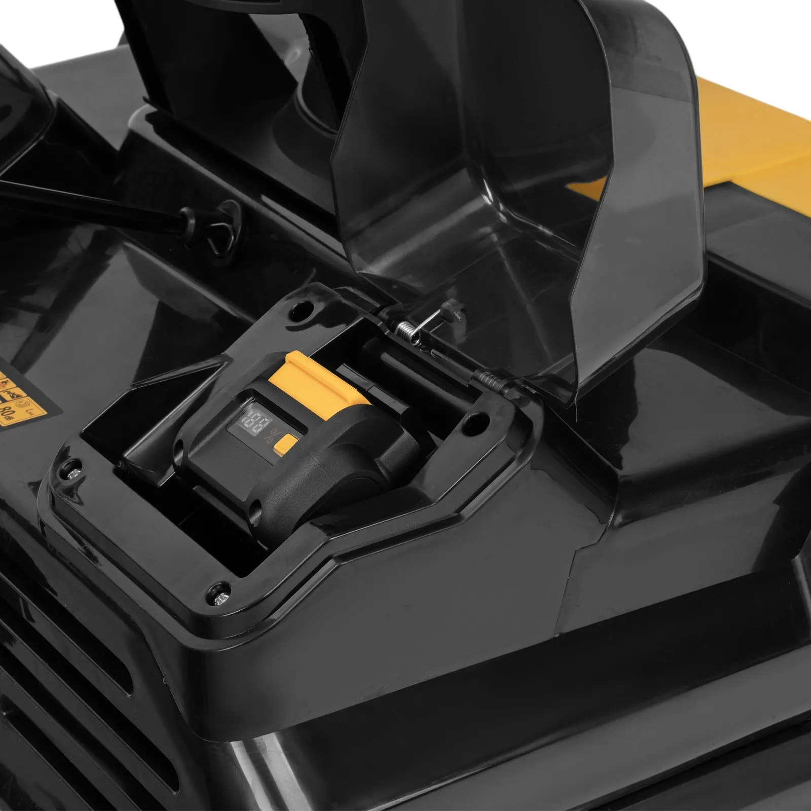 - Бесперебойная работа — снегоуборщик функционирует от аккумуляторов Li-Ion без эффекта памяти, уровень заряда можно оценить при помощи индикатора.