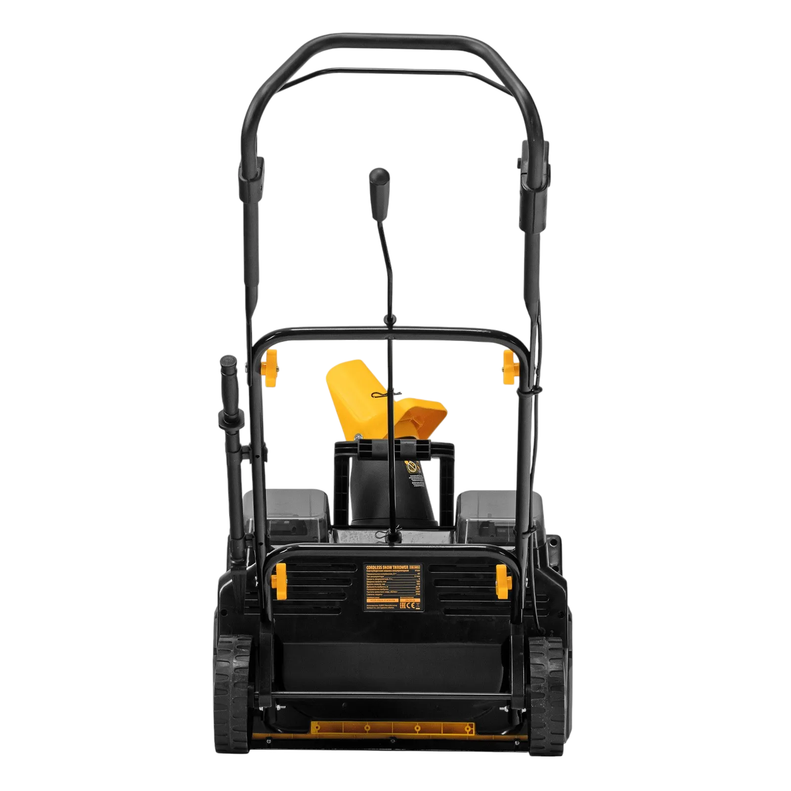 - Полная комплектация — снегоуборщик поставляется с 2 аккумуляторами, зарядным устройством и скребком для очистки желоба.