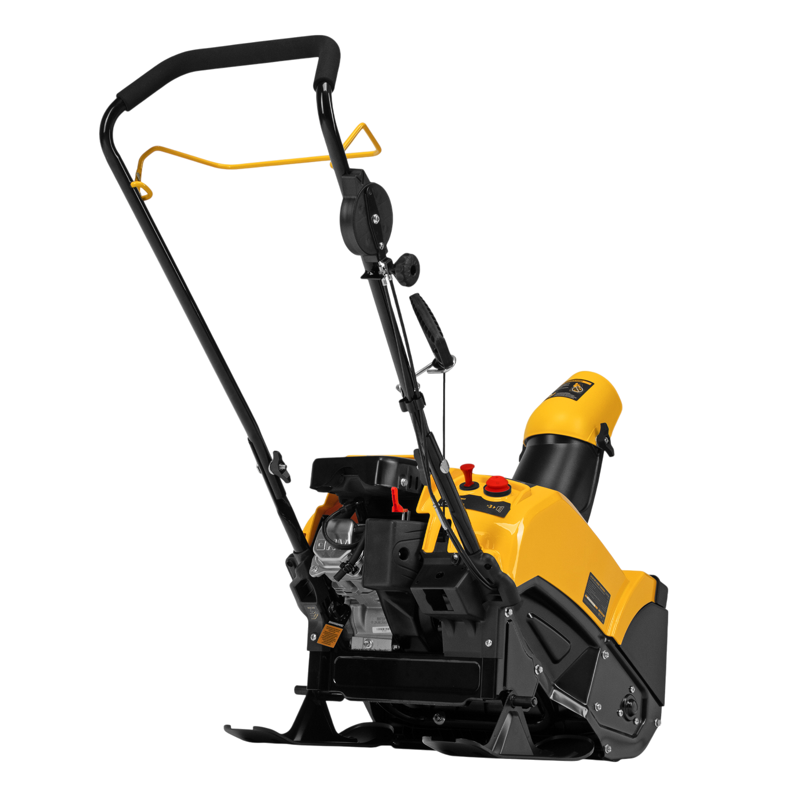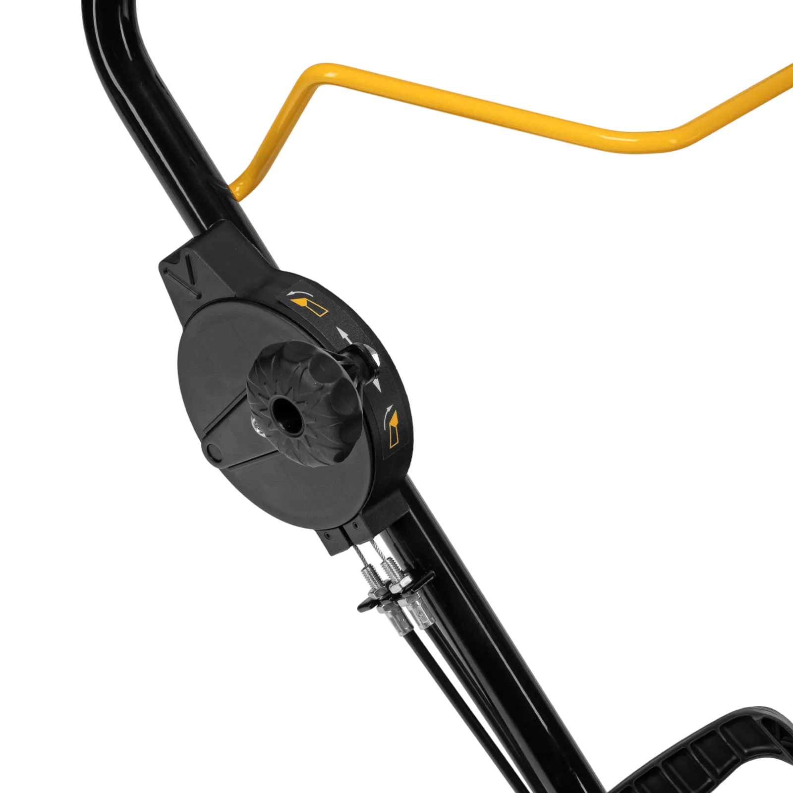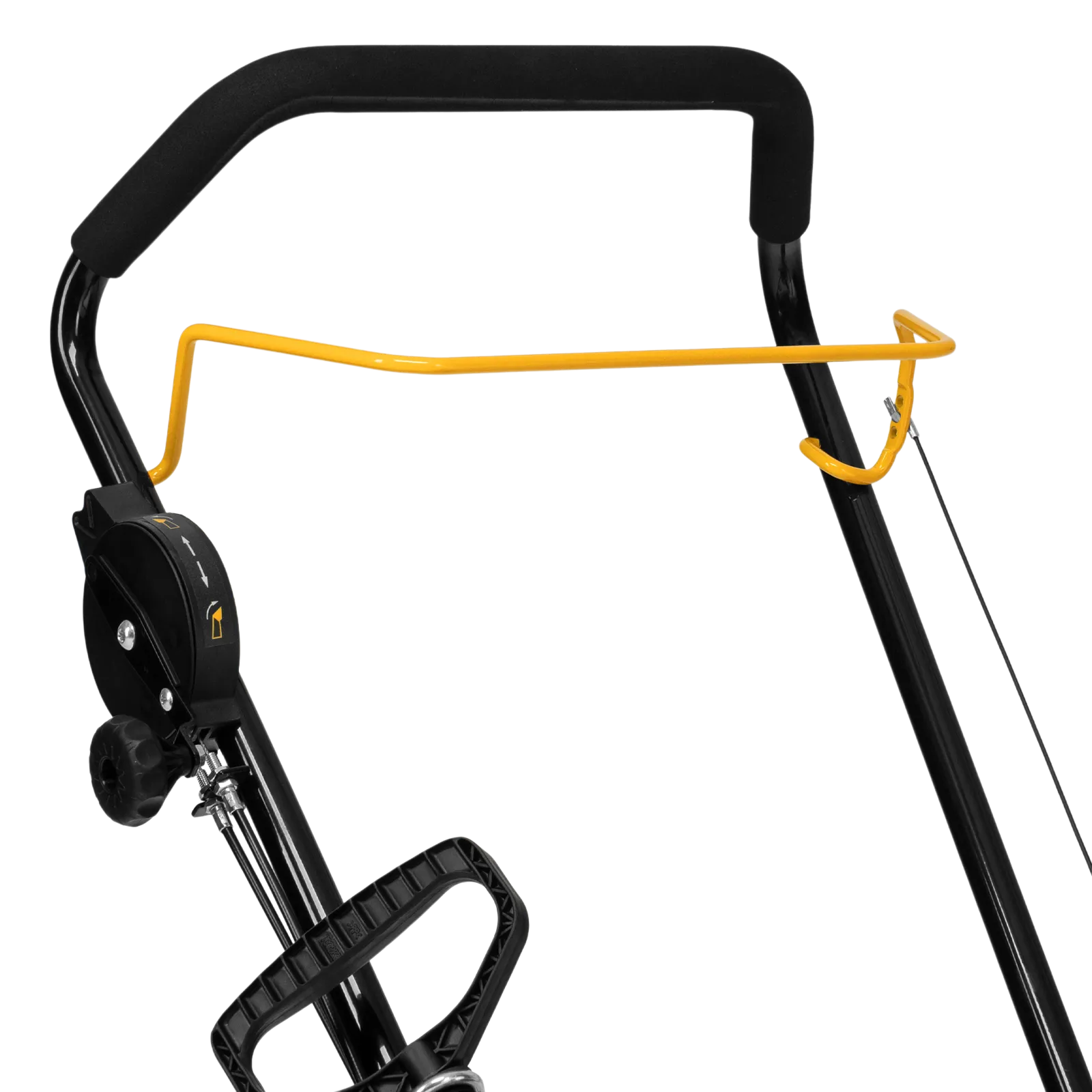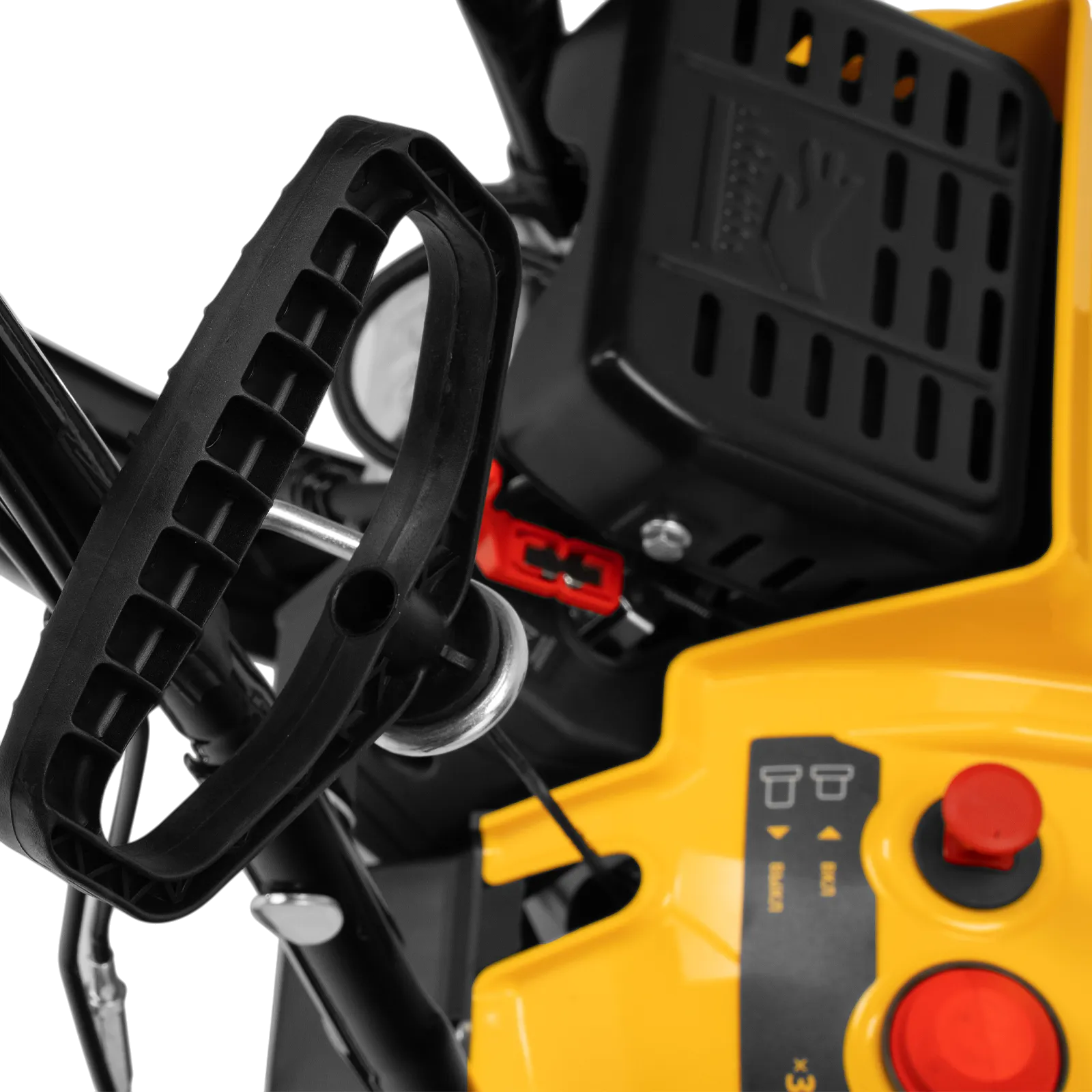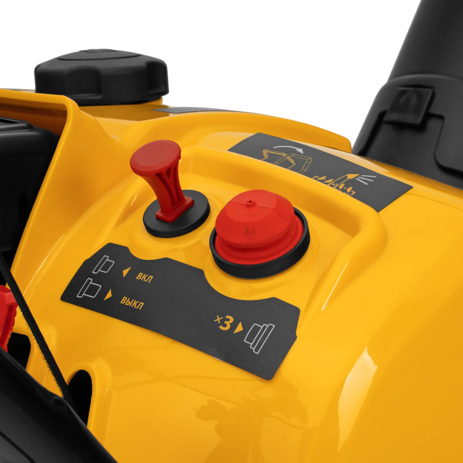 - Эргономичность — широкая рукоятка ручного старта облегчает запуск двигателя, для регулировки угла поворота желоба не нужно наклоняться.