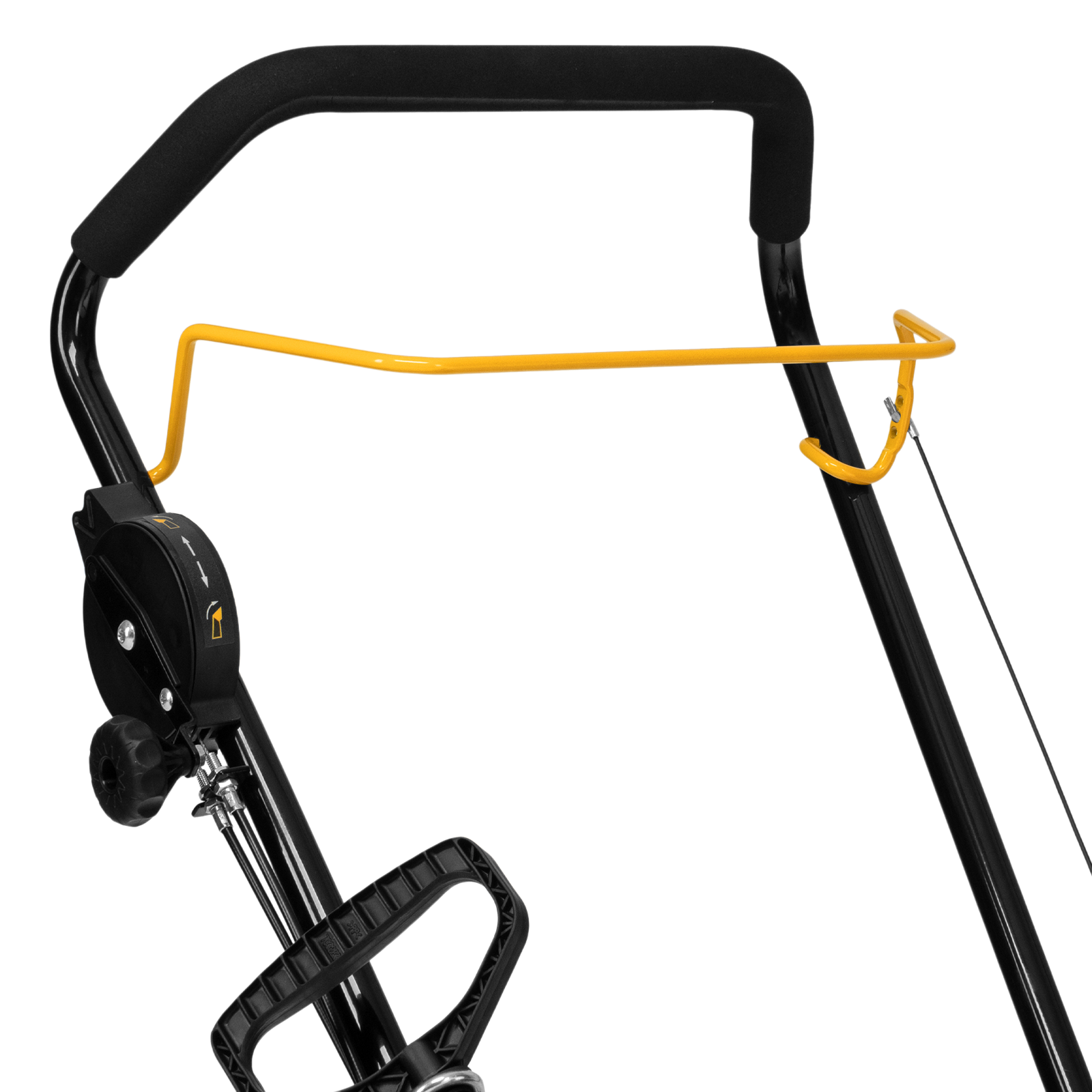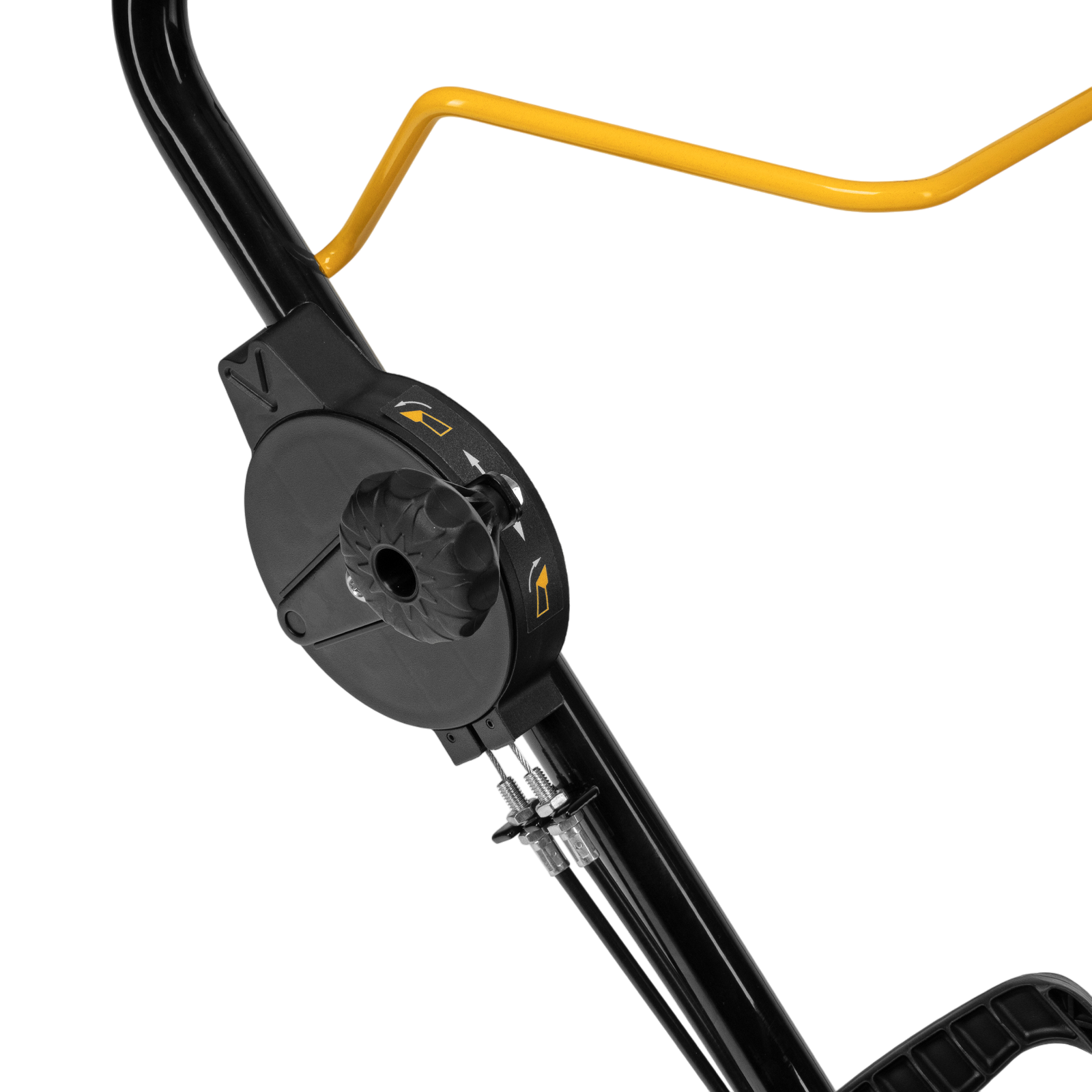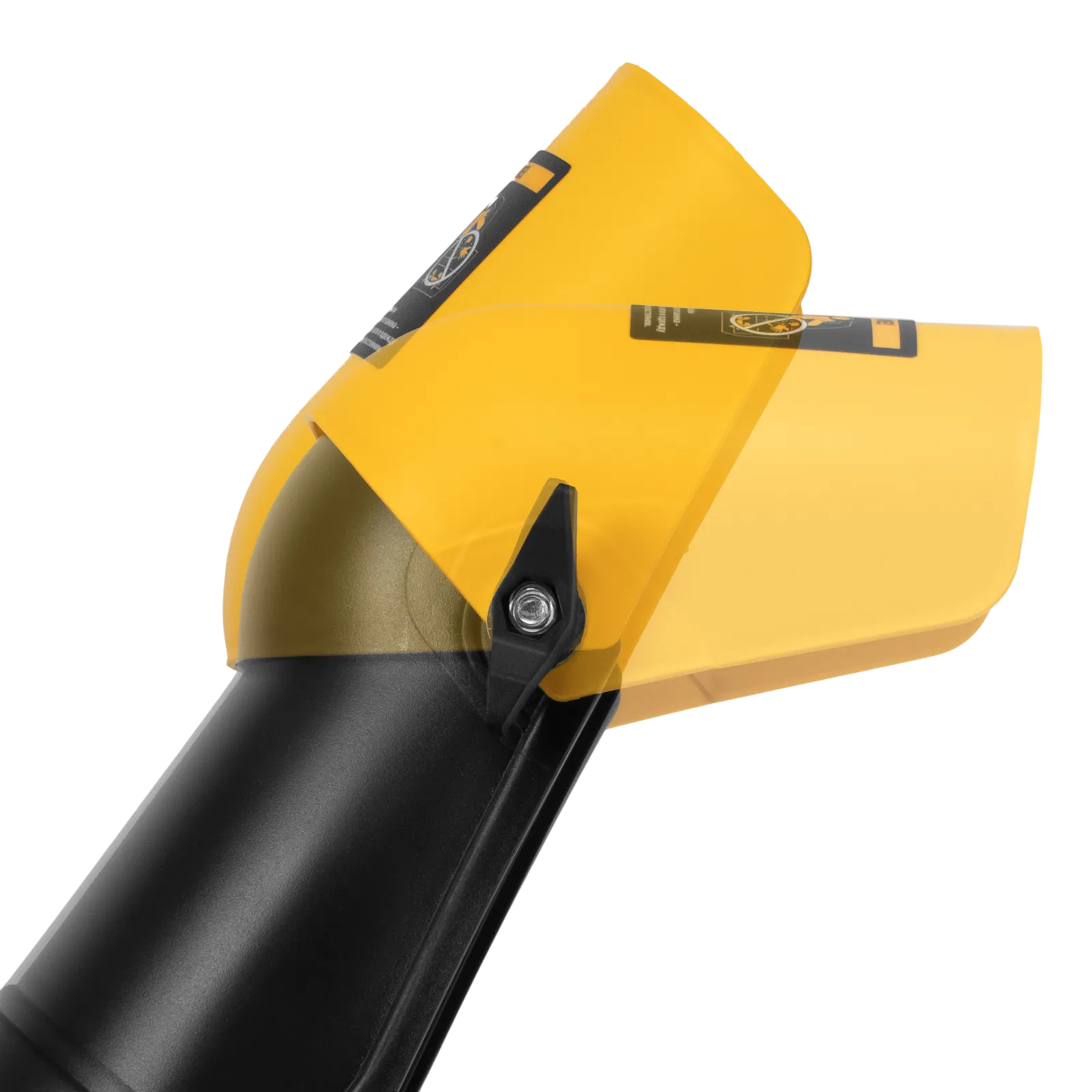 - Удобное управление — поворот желоба осуществляется при помощи тросового механизма, наклон дефлектора регулируется вручную.