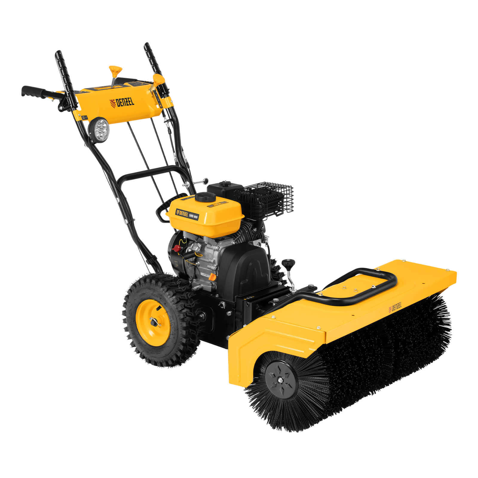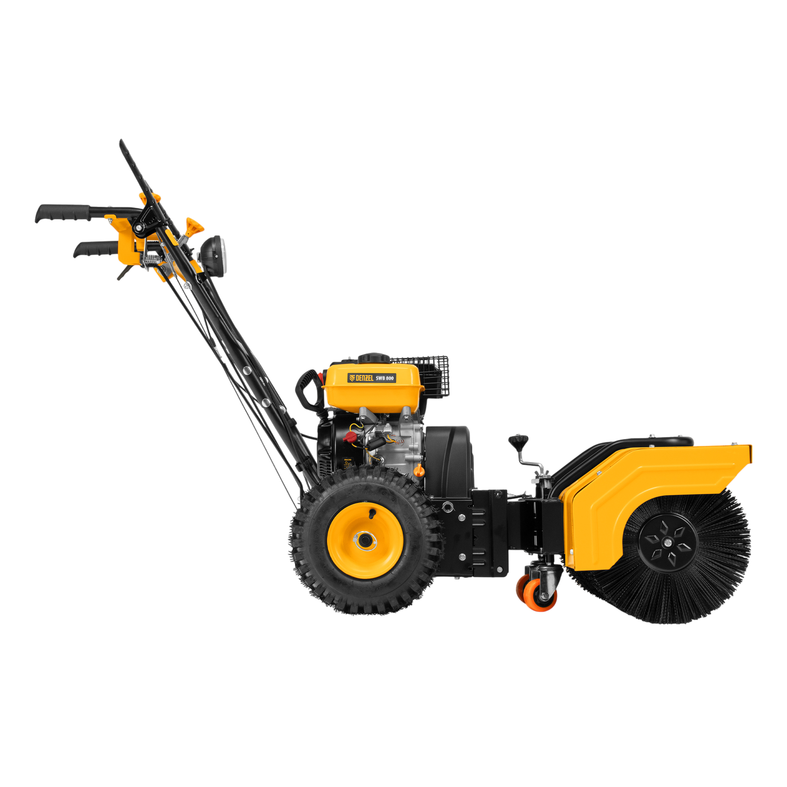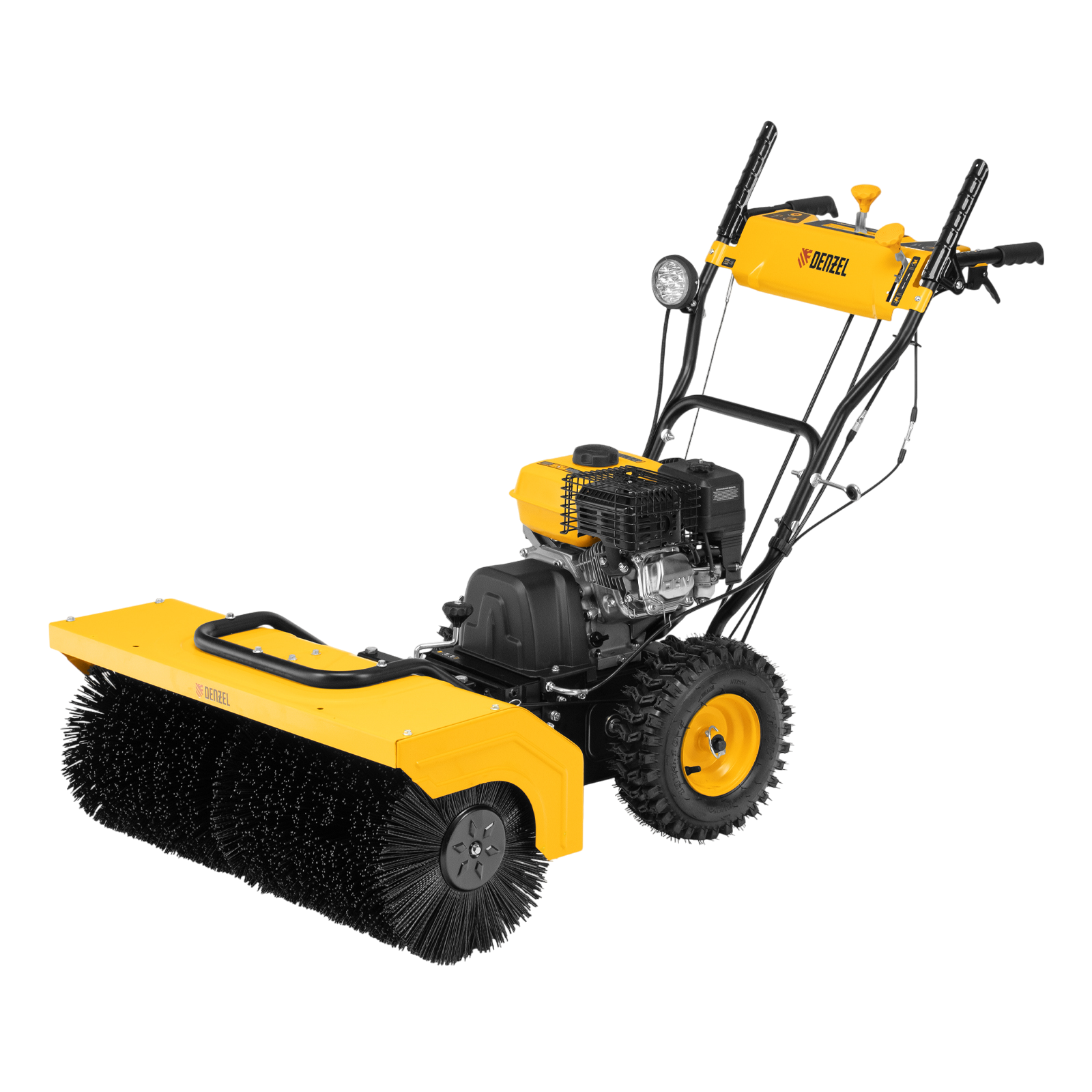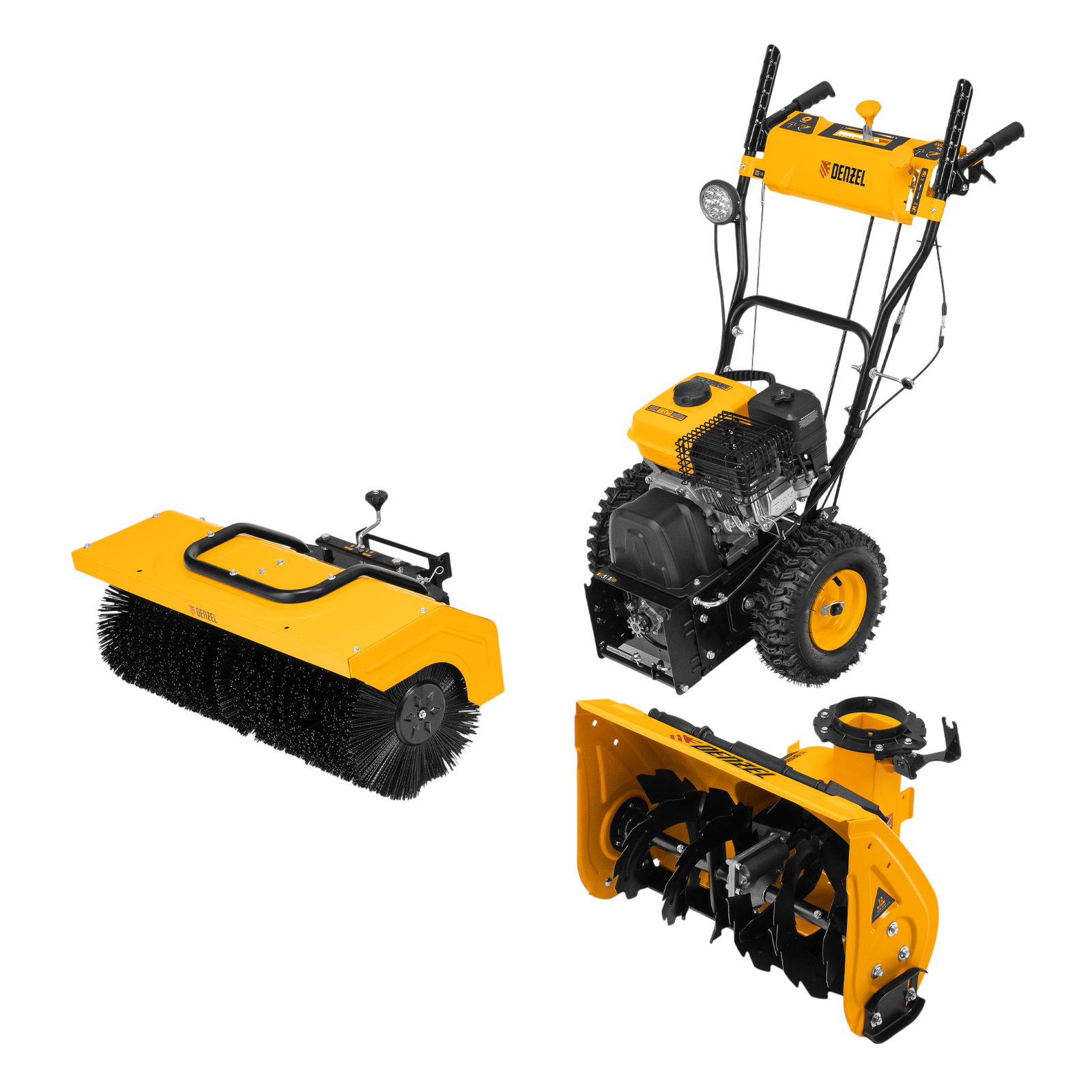 Гибридная снегоуборочная машина Denzel SWB-800 97662 с двигателем объемом 212 см3, ручным стартером и 2 насадками, предназначена для очистки территории от снега, а также может использоваться для уборки листвы, грязи, пыли и мусора. Благодаря приводу на колеса машину не нужно толкать. Ширина обработки щеткой составляет 800 мм, ширина снегоуборочной насадки — 560 мм при высоте захвата 430 мм. Машина позволяет быстро расчистить дорожки, тротуары, территорию парковки и т.д.