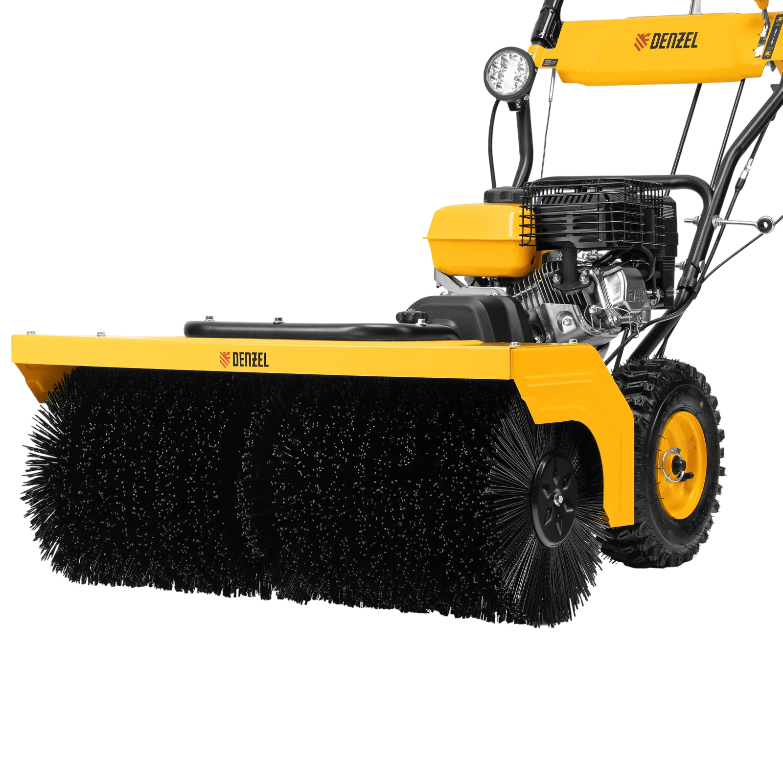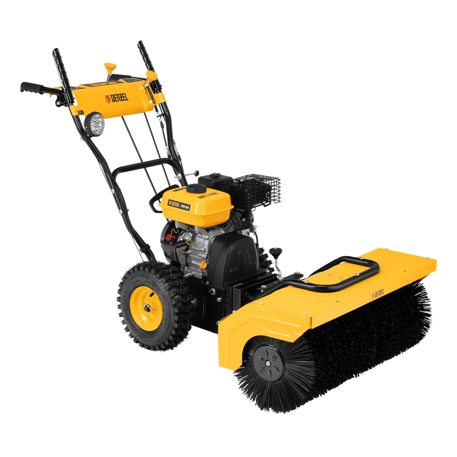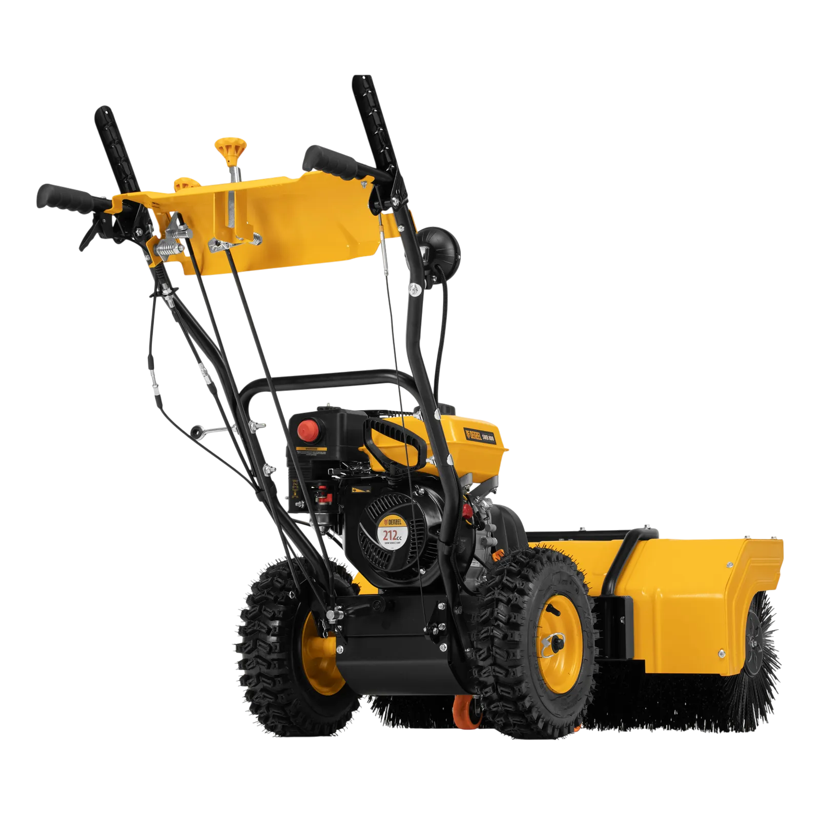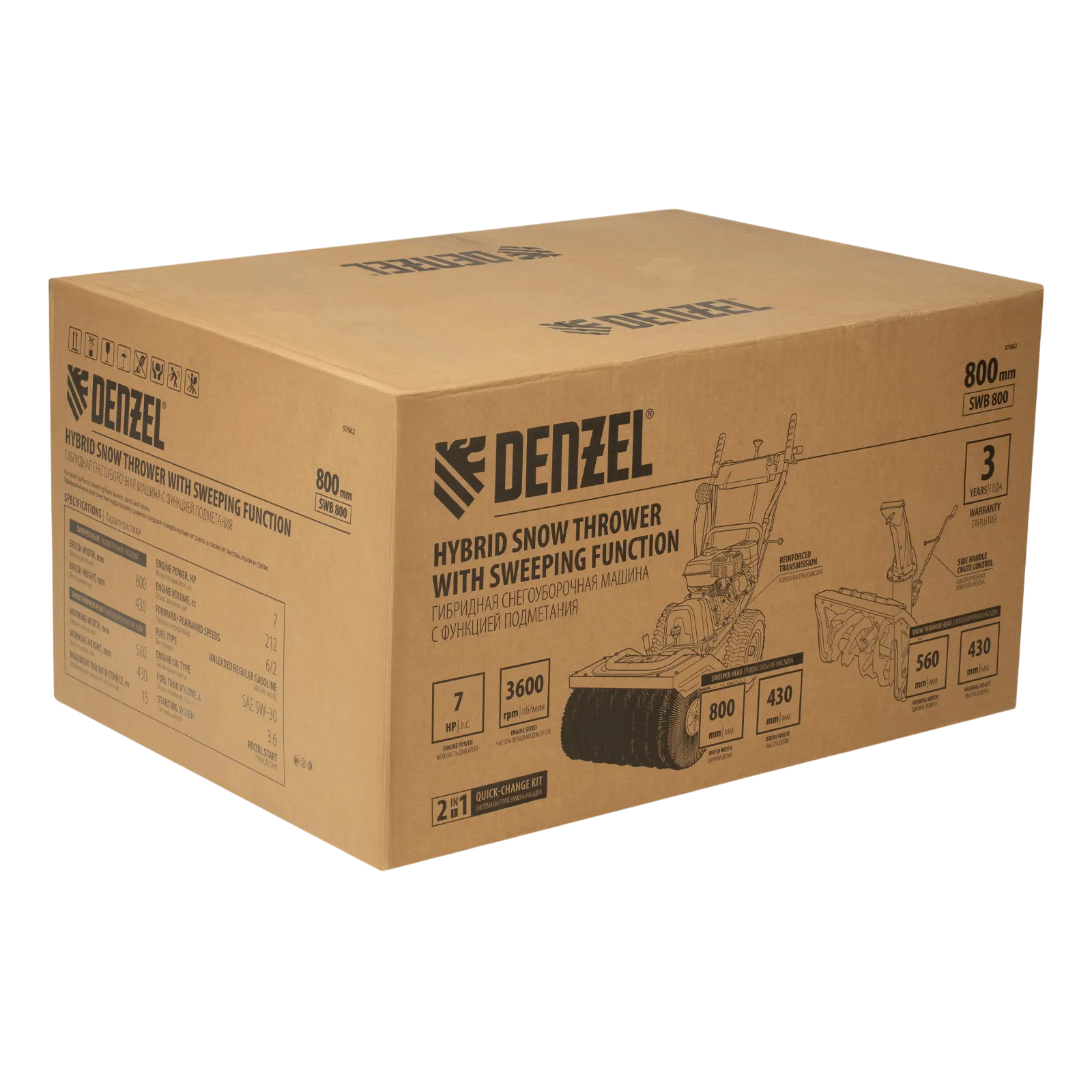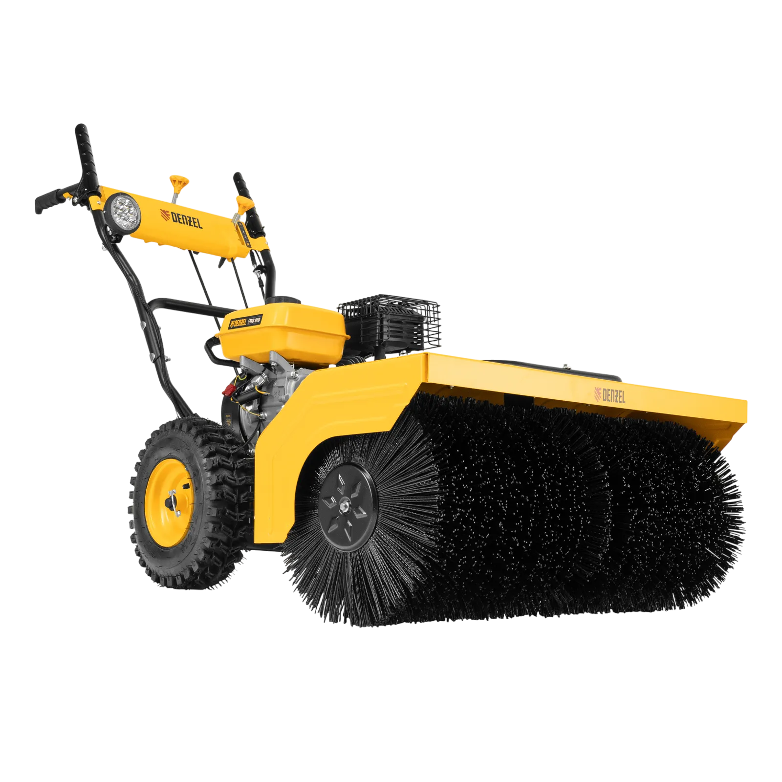 Гибридная снегоуборочная машина Denzel SWB-800 97662 с двигателем объемом 212 см3, ручным стартером и 2 насадками, предназначена для очистки территории от снега, а также может использоваться для уборки листвы, грязи, пыли и мусора. Благодаря приводу на колеса машину не нужно толкать. Ширина обработки щеткой составляет 800 мм, ширина снегоуборочной насадки — 560 мм при высоте захвата 430 мм. Машина позволяет быстро расчистить дорожки, тротуары, территорию парковки и т.д.