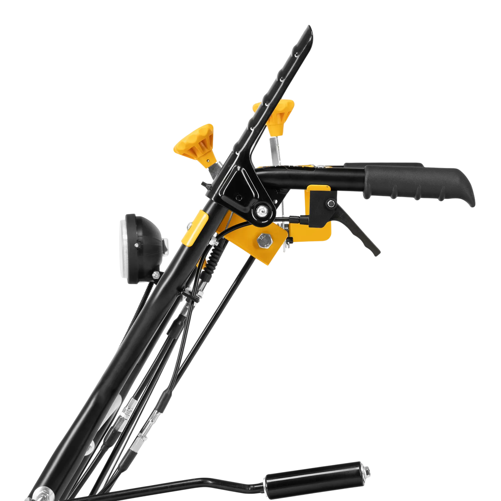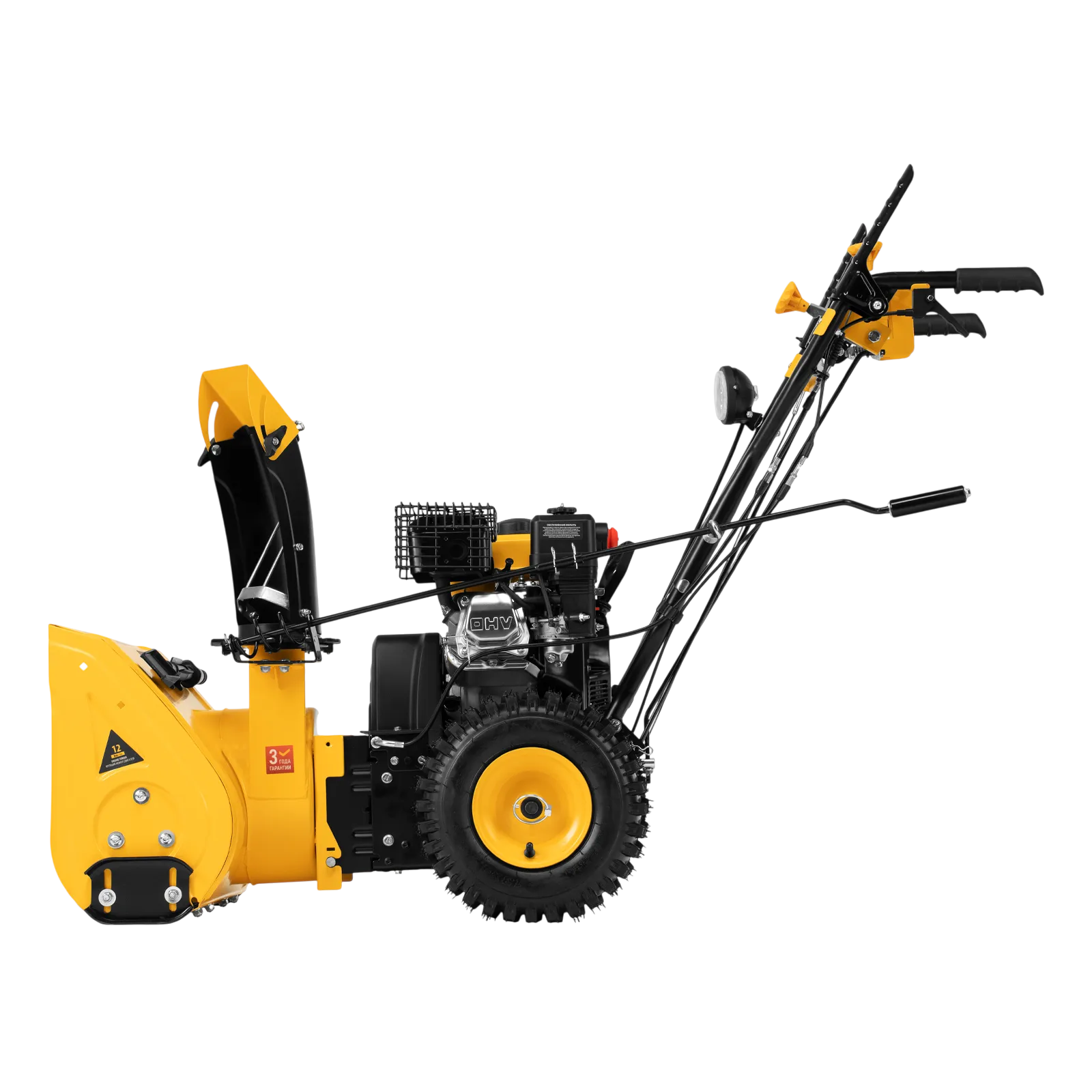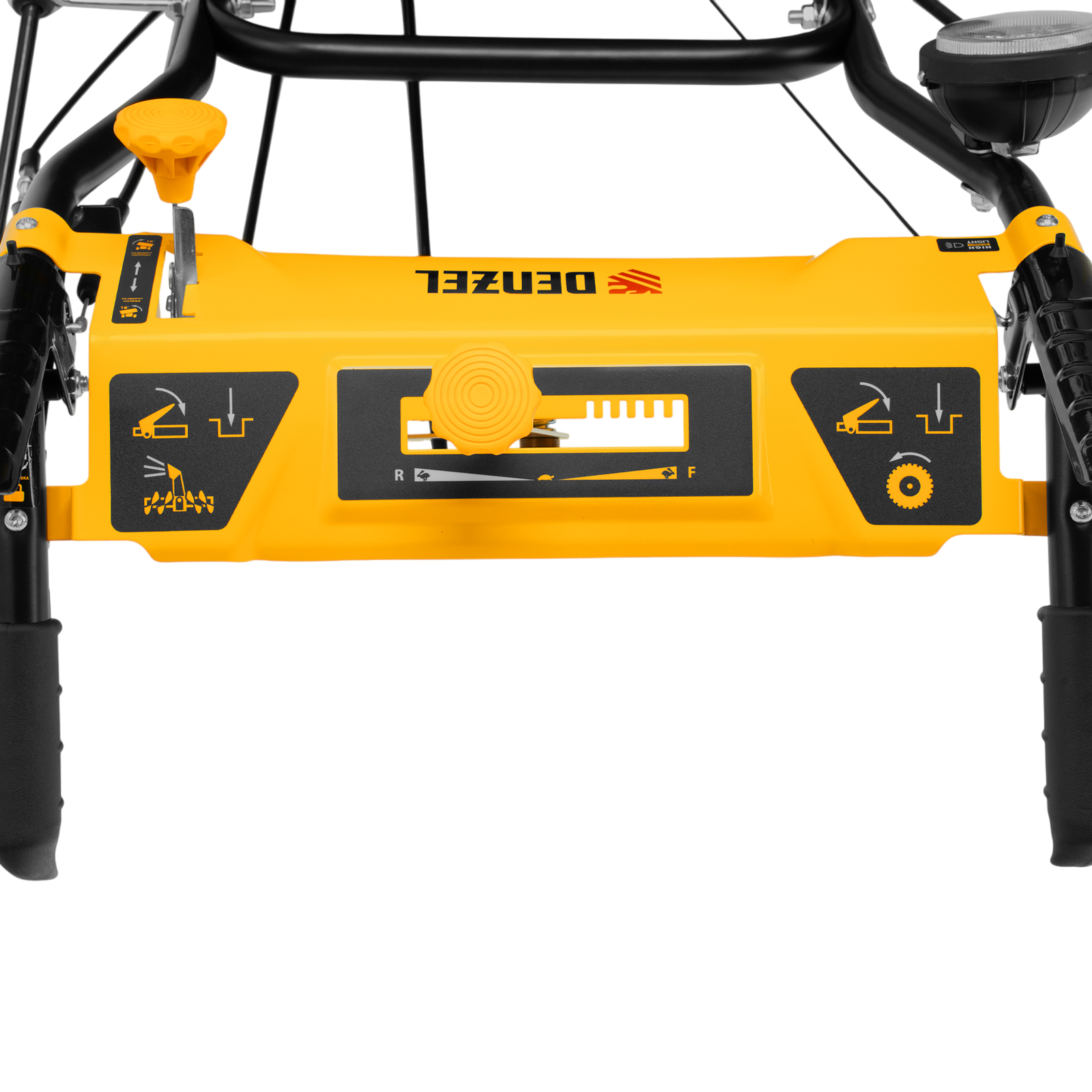 - Эргономичность — для регулировки положения разгрузочного желоба и подметальной насадки не нужно наклоняться.