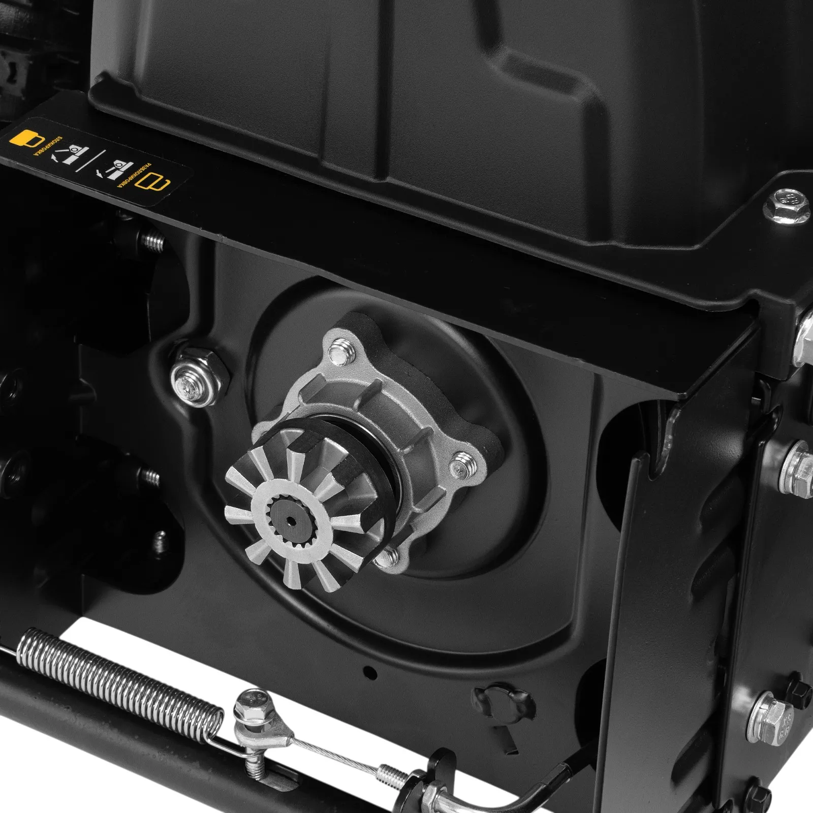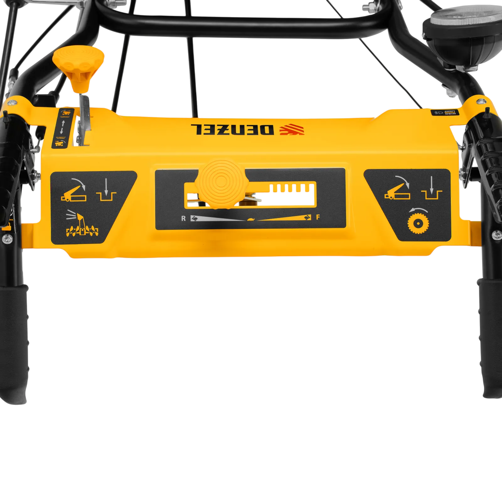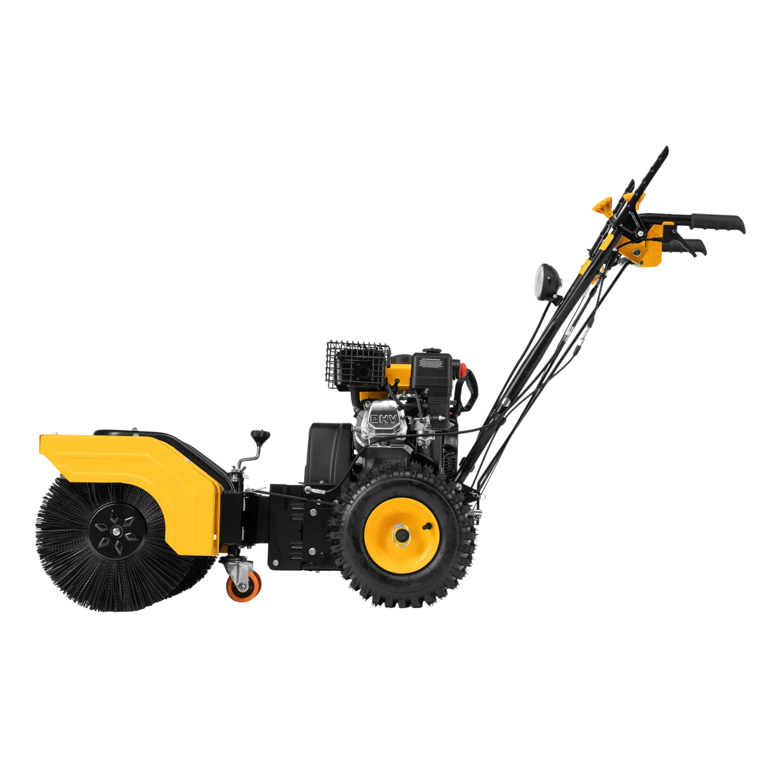 - Эргономичность — для регулировки положения разгрузочного желоба и подметальной насадки не нужно наклоняться.