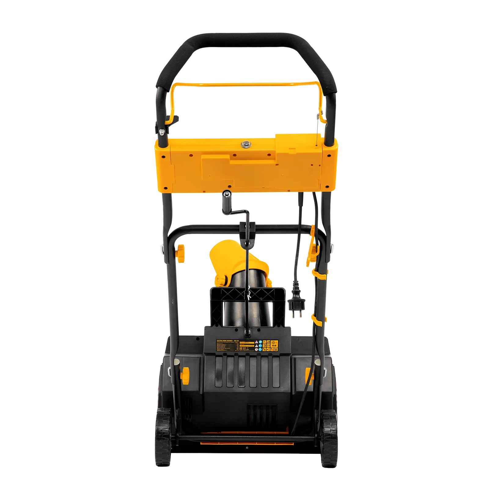 - Удобное управление — регулировка положения выпускного желоба и угла наклона дефлектора позволяет установить желаемое направление выброса снега и его дальность (до 6 м).
