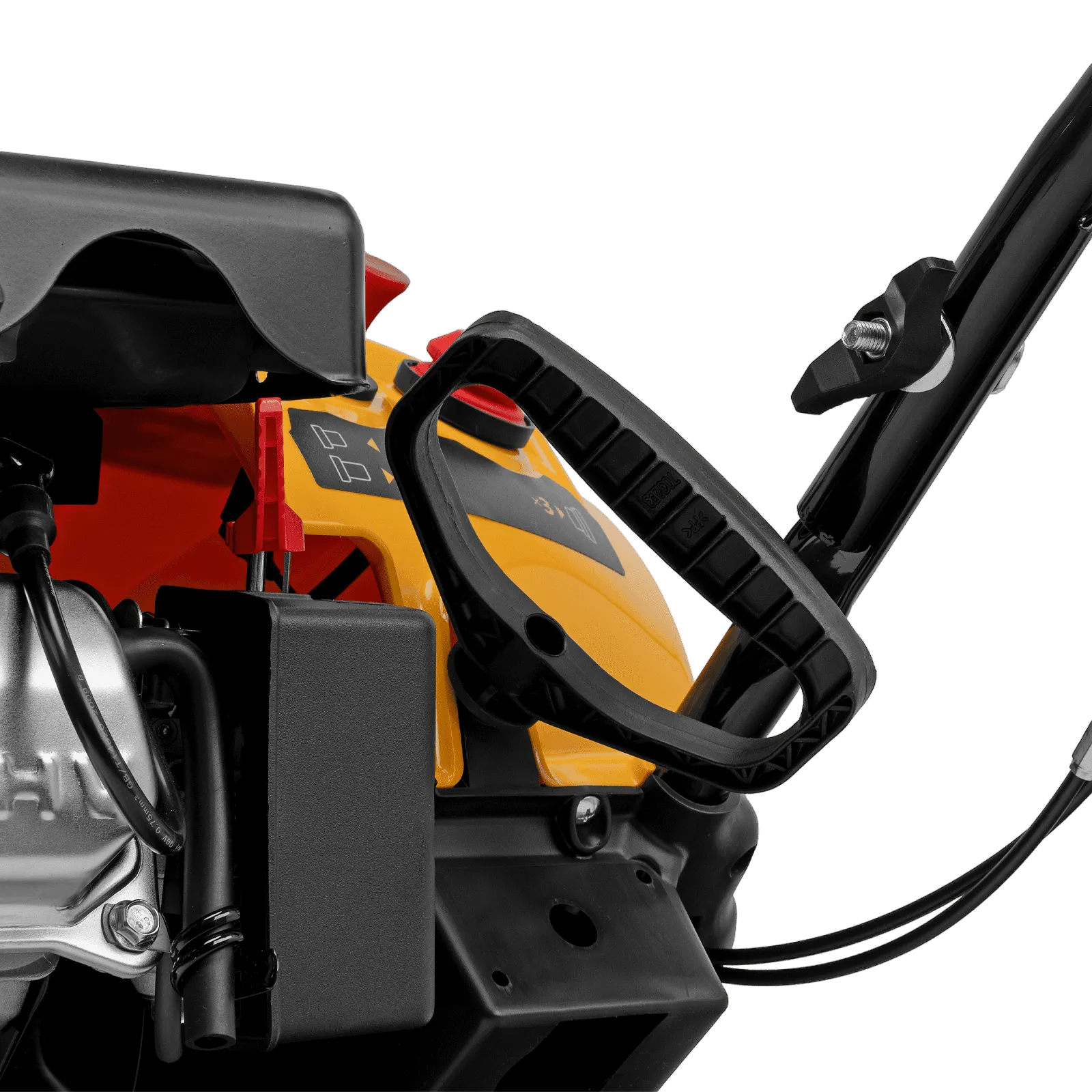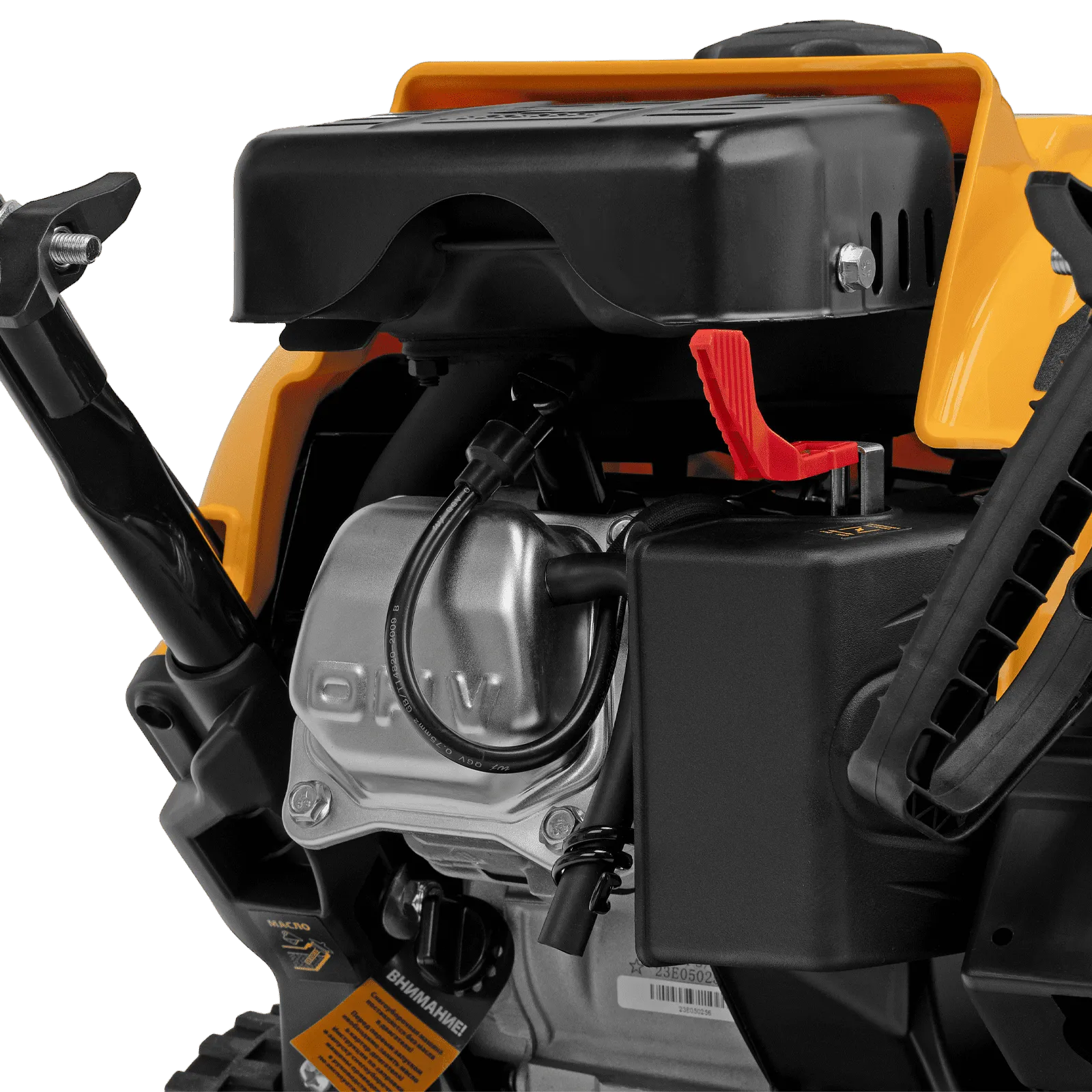 - Удобное управление — широкая рукоятка ручного старта облегчает запуск двигателя, для регулировки угла поворота желоба не нужно наклоняться.