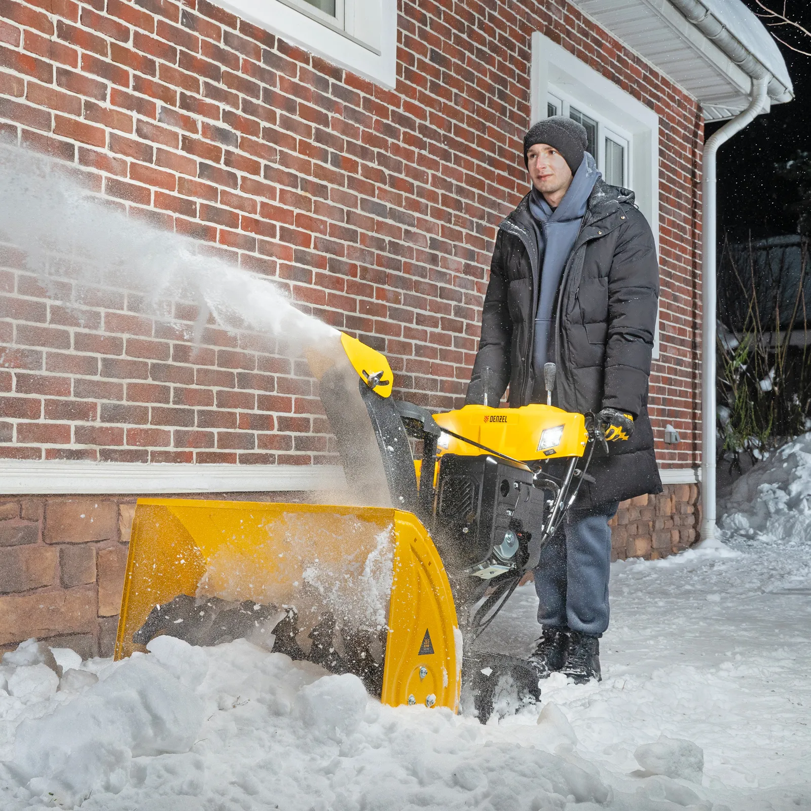 - Комфортная работа в темное время суток — снегоуборочная машина оснащена яркой двойной LED-фарой.