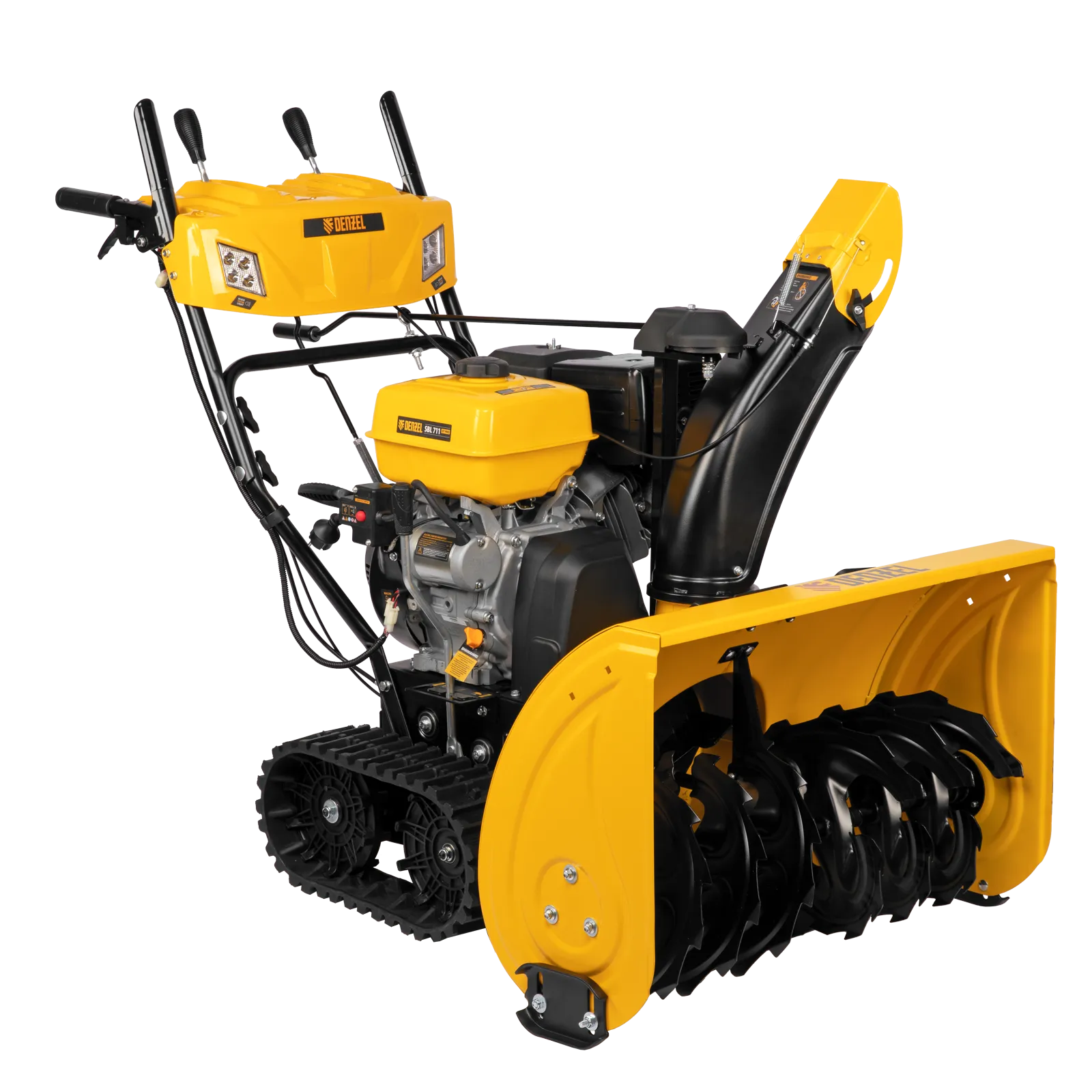 Бензиновая снегоуборочная машина Denzel SBL 711DT PRO 97656 на гусеничном приводе, с двигателем объемом 420 см3, электрическим стартером и разблокировкой дифференциала, предназначена для уборки снега на загородном участке, придомовой территории, подъездных дорогах и улицах СНТ, автомобильных парковках. Мощный двигатель обеспечивает наибольший крутящий момент 28,5 Нм и позволяет работать с любым типом снега в самых сложных погодных условиях.