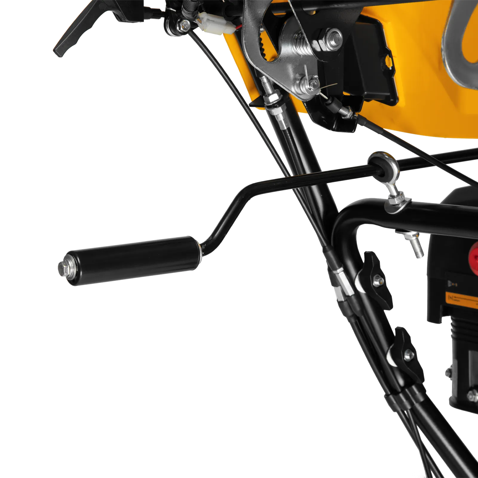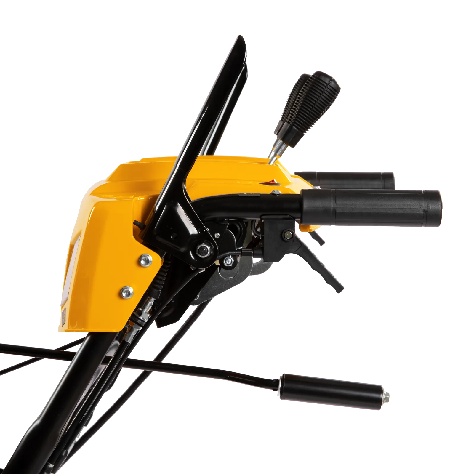 - Управление одной рукой — специальная система позволяет зафиксировать рычаг запуска шнека, пока нажат рычаг привода колес.