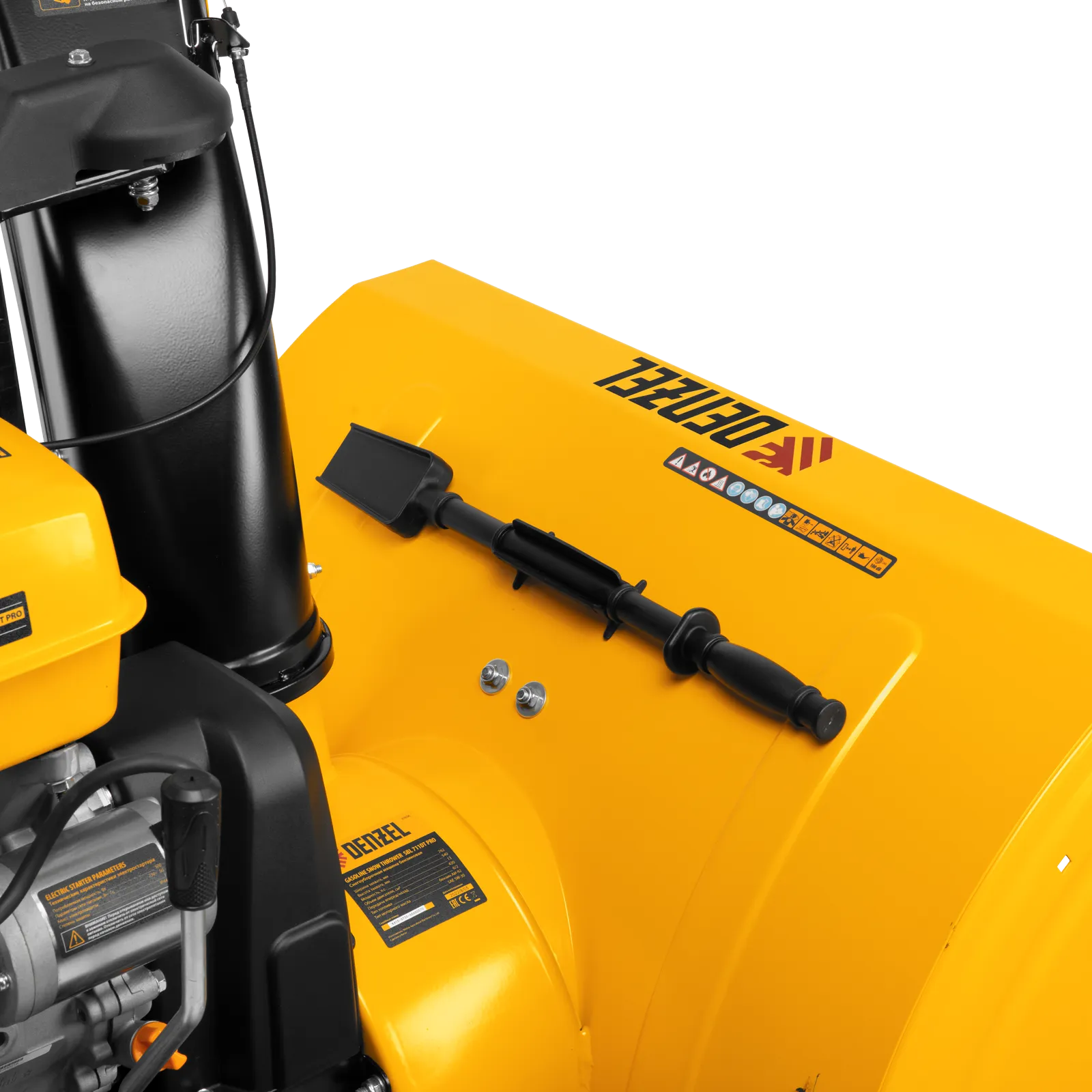 - Увеличенные возможности — дополнительно на снегоуборщик можно установить расширители захвата, подрезатели сугроба Denzel 2 в 1 (арт. 97102).