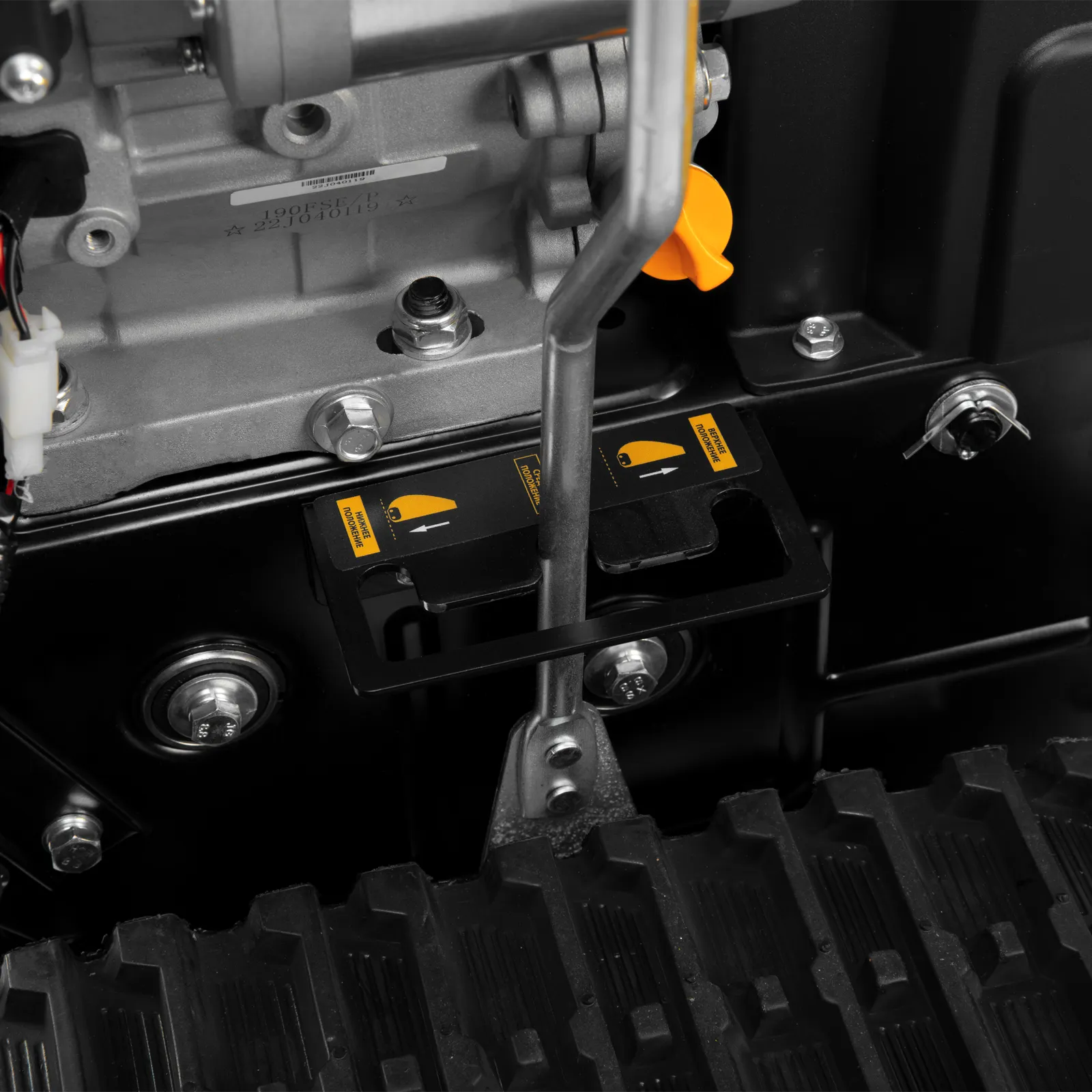 - Гусеничная ходовая часть — снегоуборщик уверенно преодолевает неровные участки, передвигается по глубокому снегу, может работать в условиях холмистой местности и на горнолыжном склоне.