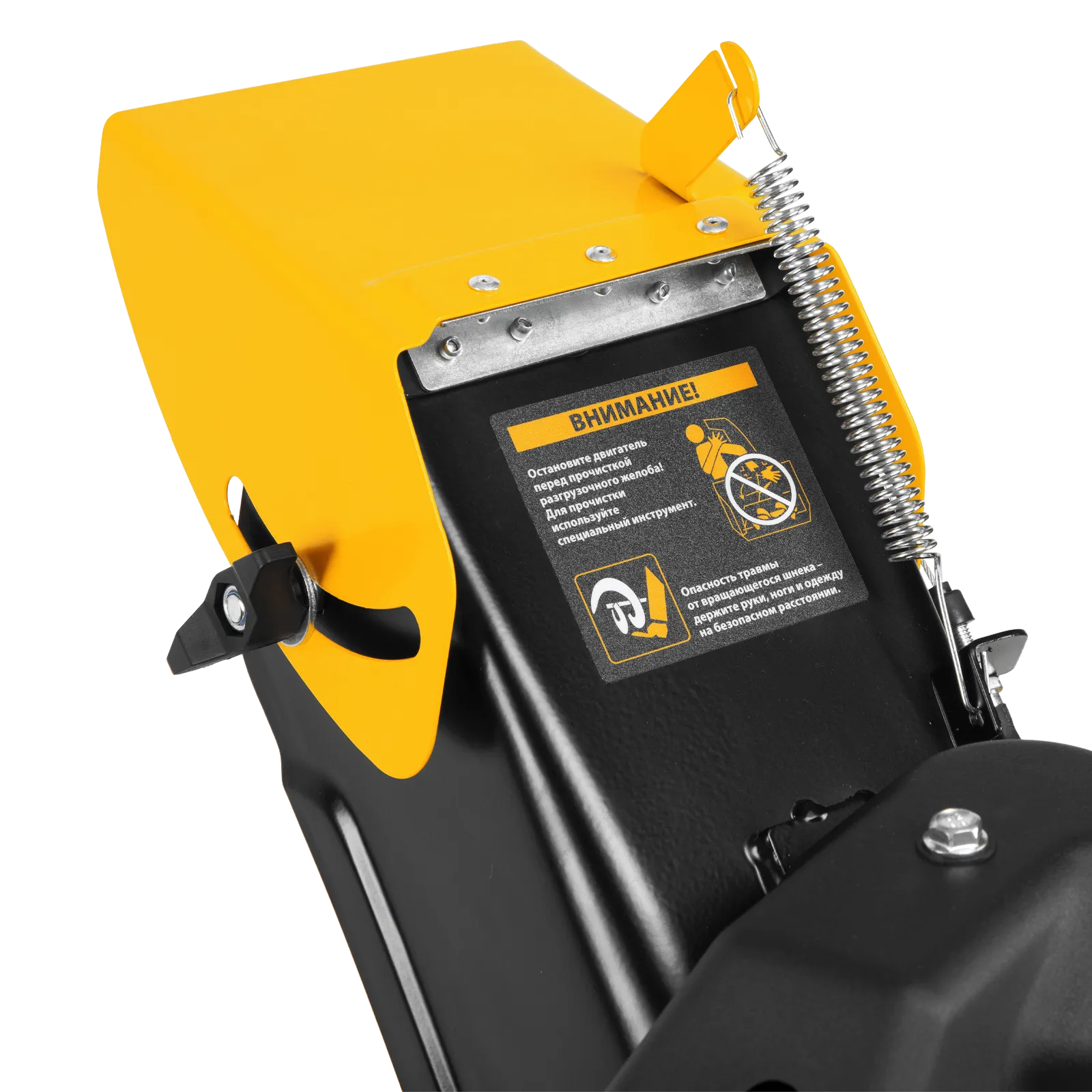 - Простой уход — в комплект входит лопатка для очистки разгрузочного желоба от снега и льда.