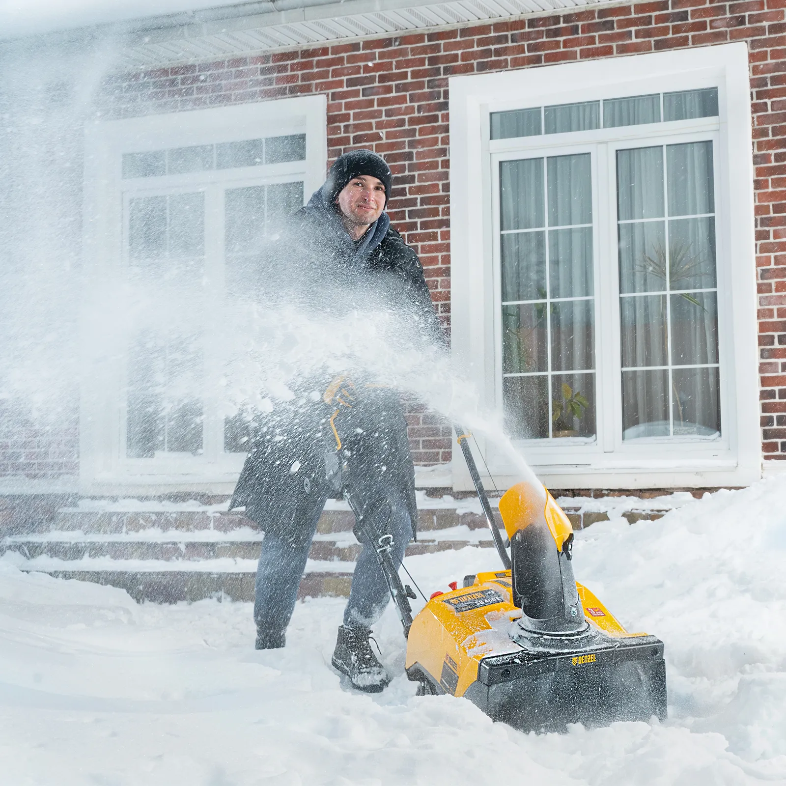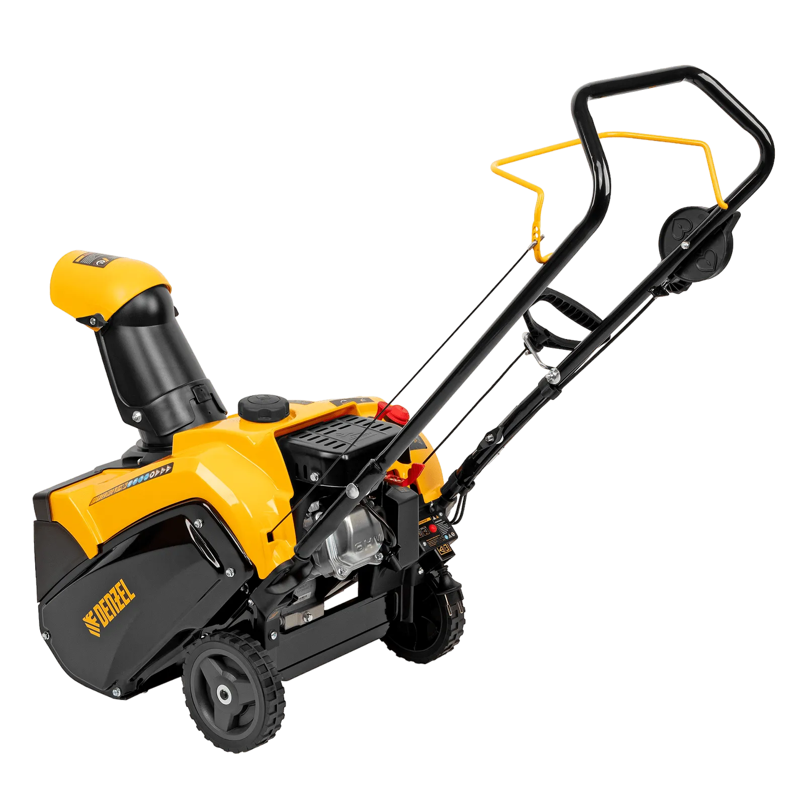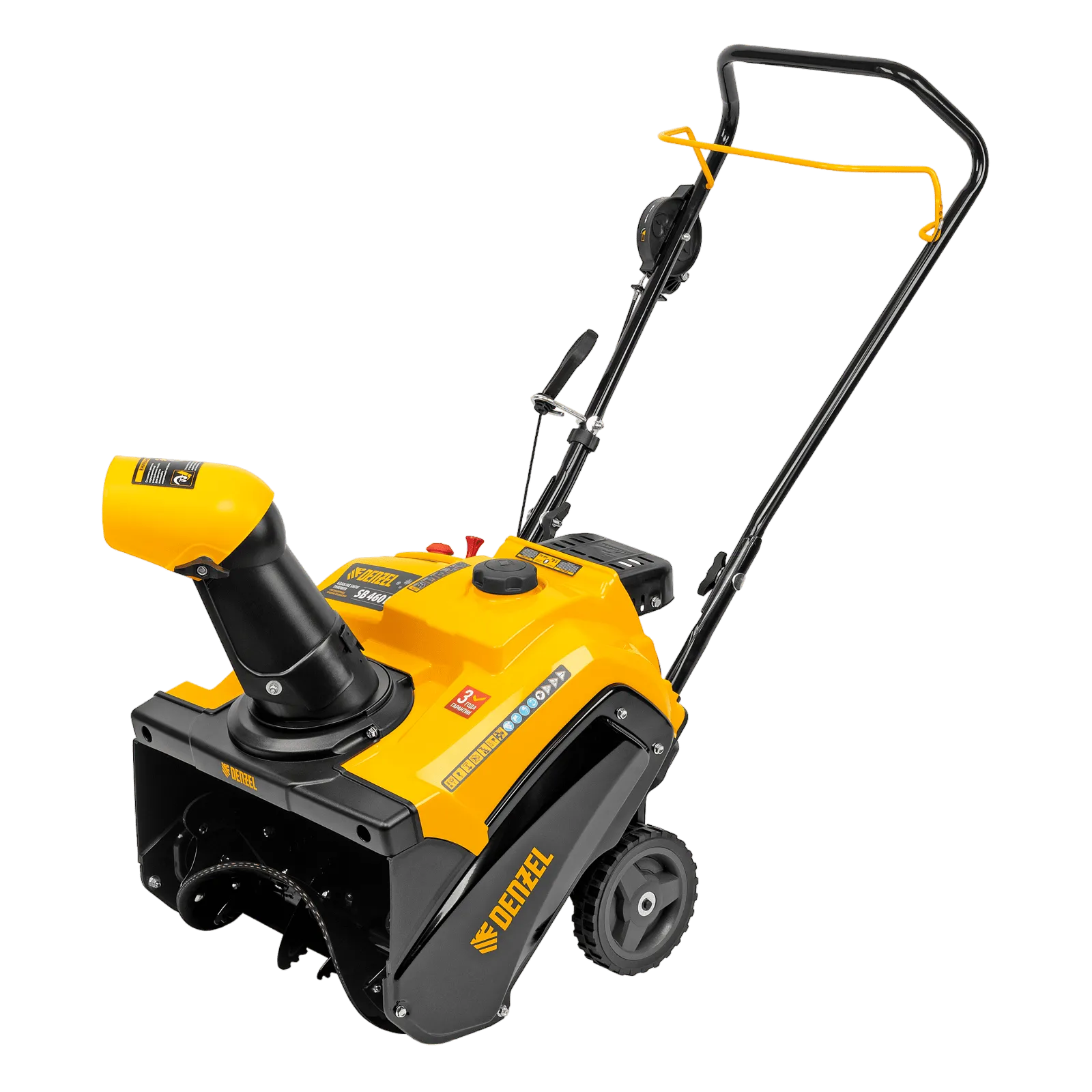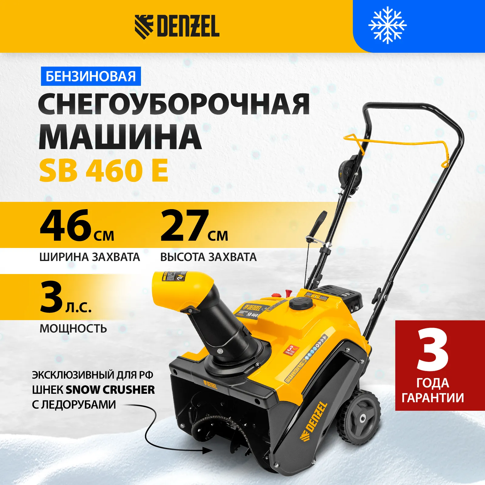 Бензиновая снегоуборочная машина Denzel SB 460 E 97649 с двигателем объемом 99 см3, электрическим стартом и эксклюзивным шнеком Snow Crusher, предназначена для очищения от снега открытых ровных поверхностей: придомовой территории, дорожек, тротуаров, автомобильных парковок. Высота захвата составляет 27 см, ширина — 46 см, дальность выброса снега достигает 10 м. Машина значительно превосходит в производительности электрические модели, оставаясь компактной и мобильной.